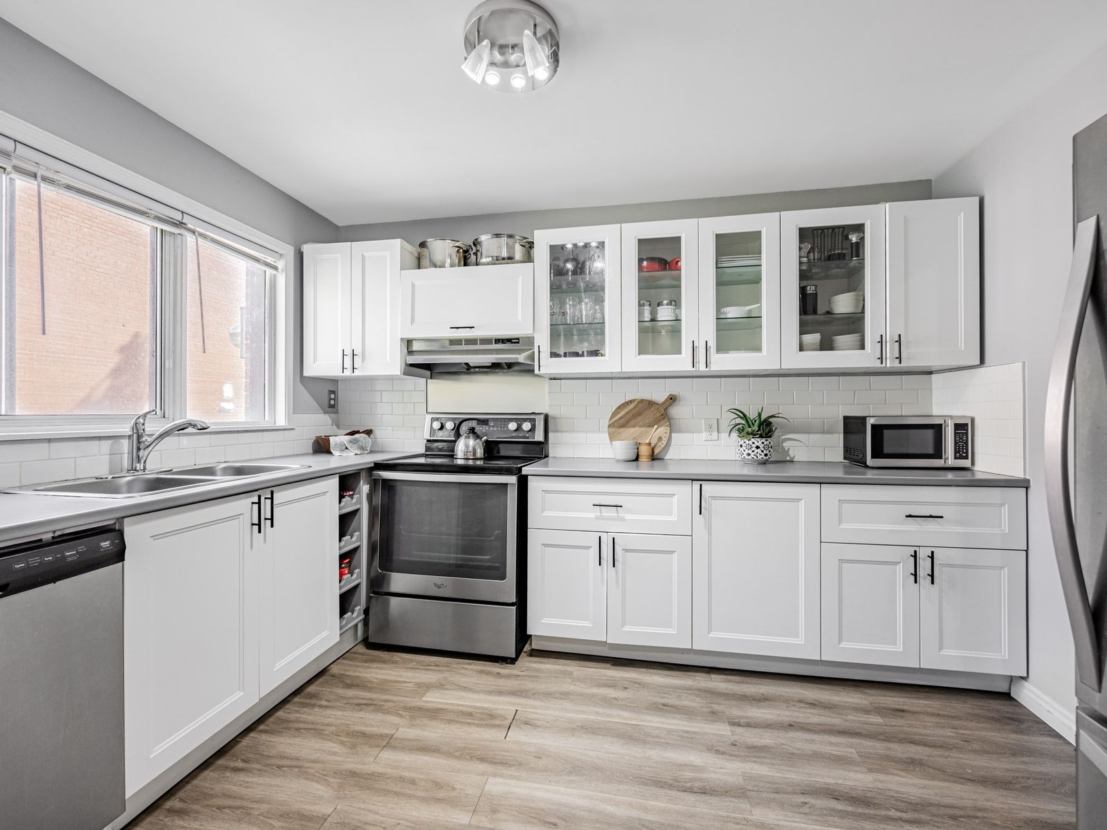 • Modern kitchen features stainless steel appliances and ample storage.