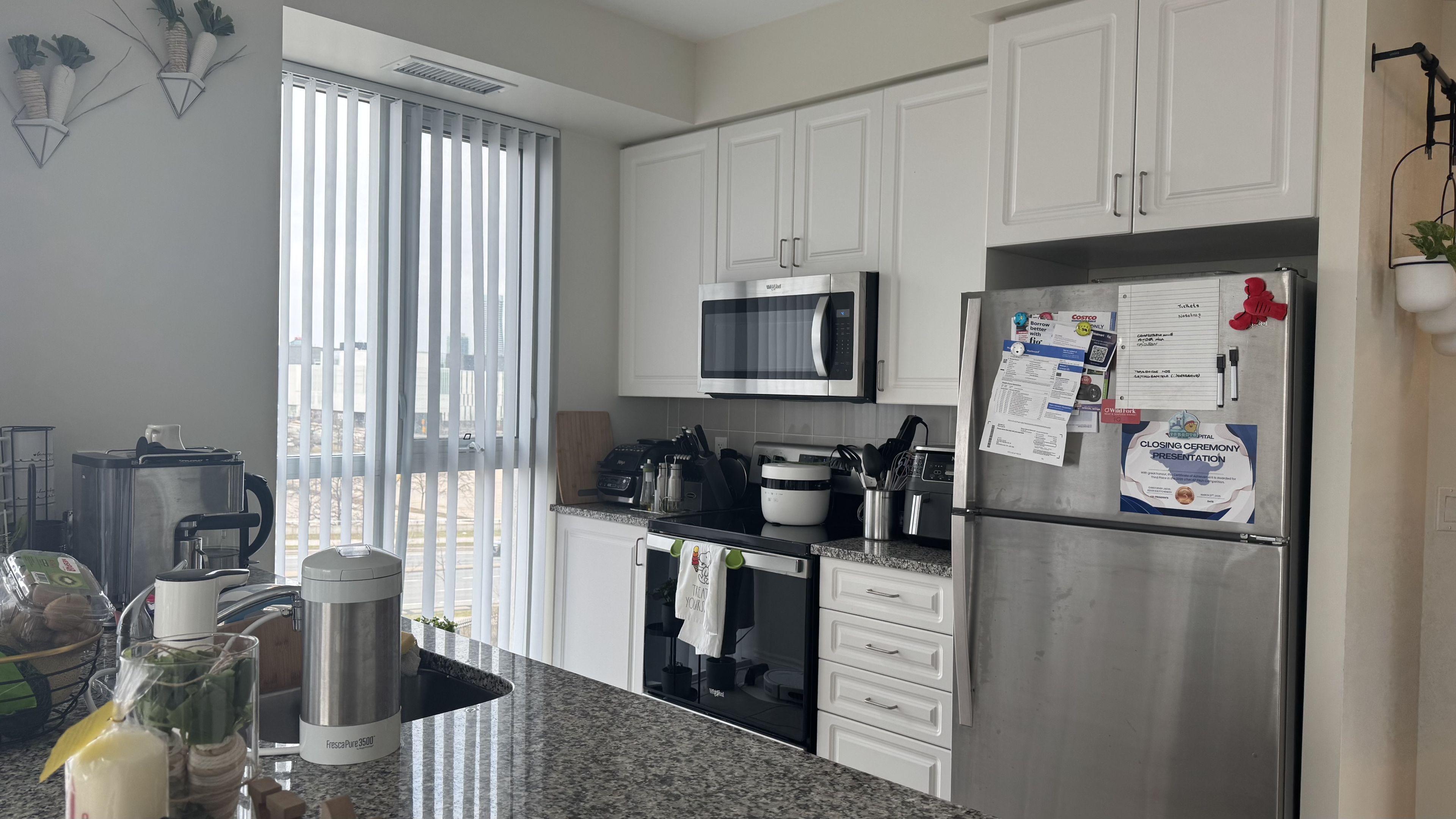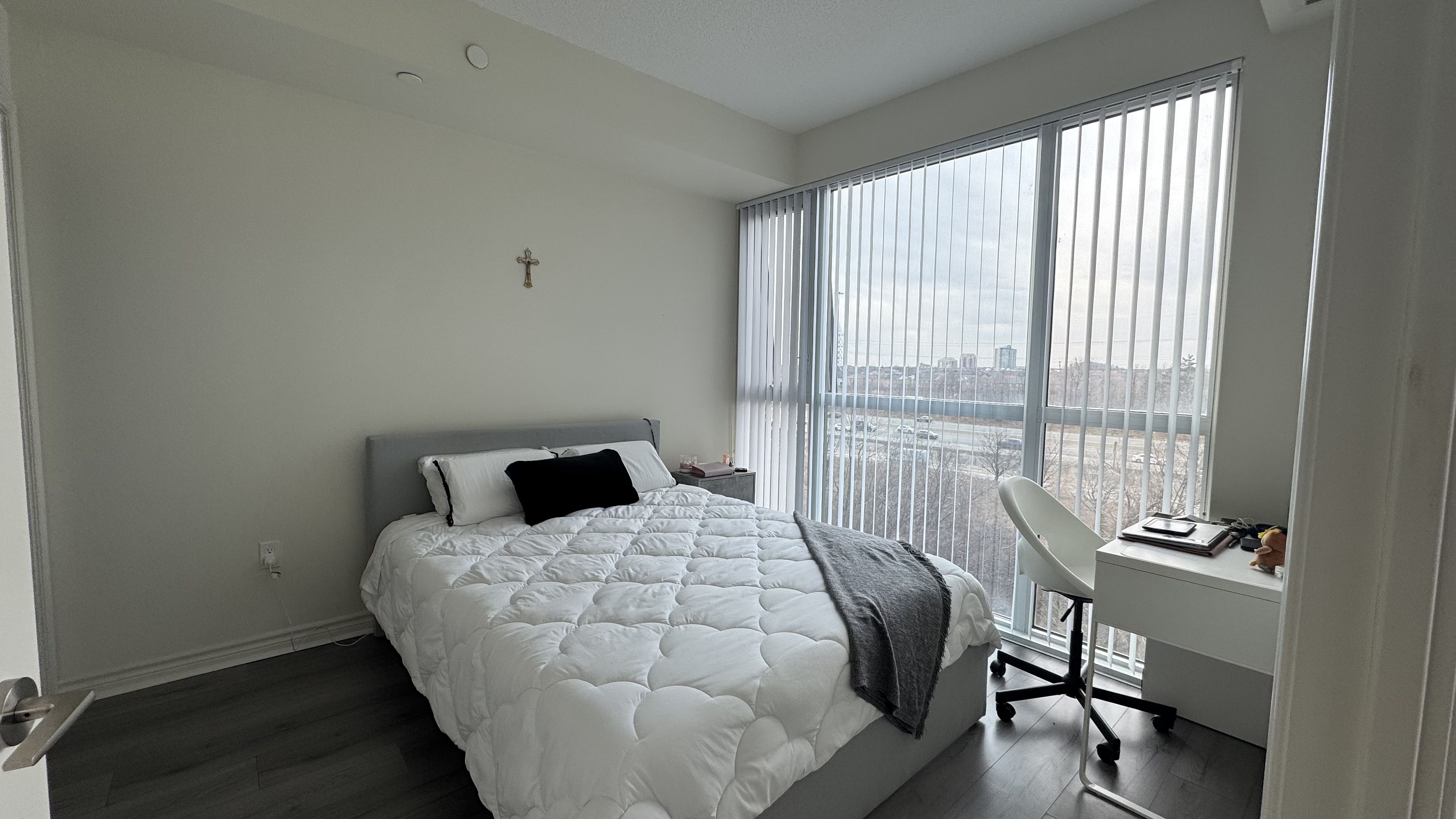 One parking and one locker. This thoughtfully designed split 2-bedroom, 2-bathroom suite offers790 sq ft of functional, elevated living. The open-concept layout creates a seamless flow between the living and dining areas, complemented by a modern kitchen with a breakfast bar-perfect for both everyday living and hosting. Step out onto your private balcony and enjoy a quiet moment above the city. The primary bedroom features a walk-in closet and private ensuite. A second full bathroom and in-suite laundry add to the overall ease of living. Well-suited for professionals or couples seeking a clean, well-designed space in a connected location-just moments to transit, shopping, and everyday essentials. A refined rental opportunity in one of mississauga's most convenient communities.