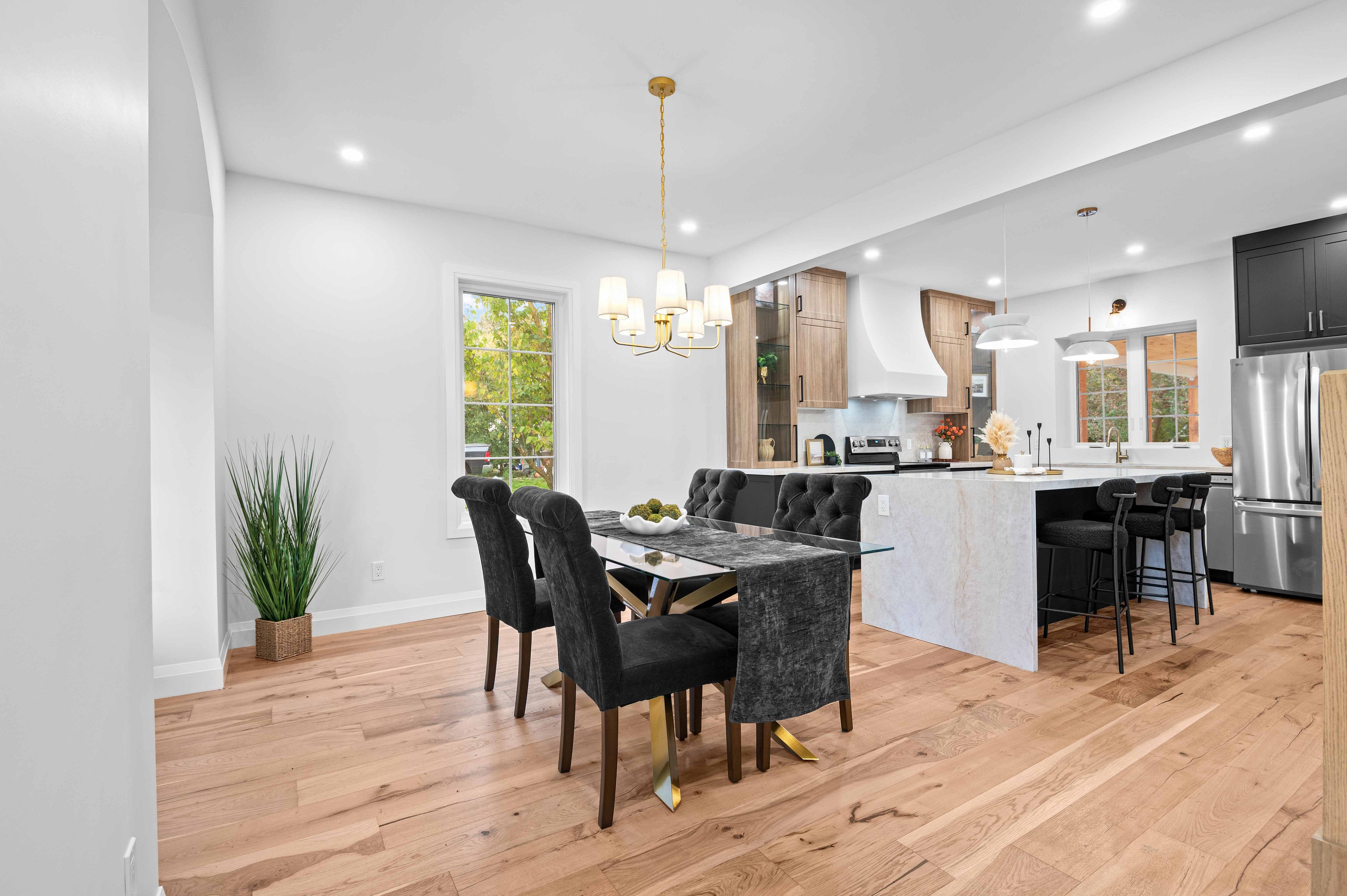 Located in the heart of downtown arthur, this fully renovated 4 bedroom, 3 bathroom home offers a rare blend of timeless character & modern refinement, set on a generous in town lot. Thoughtfully reimagined from top to bottom, every detail reflects quality craftsmanship, considered design, & a layout that supports everyday living. The main level unfolds with wide plank hardwood flooring & a bright, welcoming living space anchored by a gas fireplace finished in taj mahal quartz. Large windows & a coffered ceiling enhance the sense of light & scale. The kitchen & dining area connect seamlessly, centred around a striking island with waterfall quartz, custom plaster range hood, pendant lighting, & full height taj mahal quartz surfaces that carry a cohesive, elevated finish throughout. Arched windows add warmth & architectural character. At the rear, a well designed mudroom with built in storage & herringbone brick tile adds both style & function. A flexible main floor room offers space for a family room, home office, or guest area, complemented by a 4 piece bathroom & convenient main floor laundry. Upstairs, the primary suite offers a calm, private retreat with a walk through closet & a thoughtfully finished 5 piece ensuite featuring a curbless glass shower, soaker tub, & double vanity. Three additional bedrooms are well proportioned & share a modern 4 piece bathroom. Outdoor living extends to a covered wraparound back deck overlooking the spacious, private yard, ideal for relaxing or entertaining. A newly built 1. 5 car detached garage adds everyday convenience. Set within one of arthur's established neighbourhoods, close to local shops, schools, & parks, this is a turnkey home that balances character, quality, & modern comfort in a growing community.