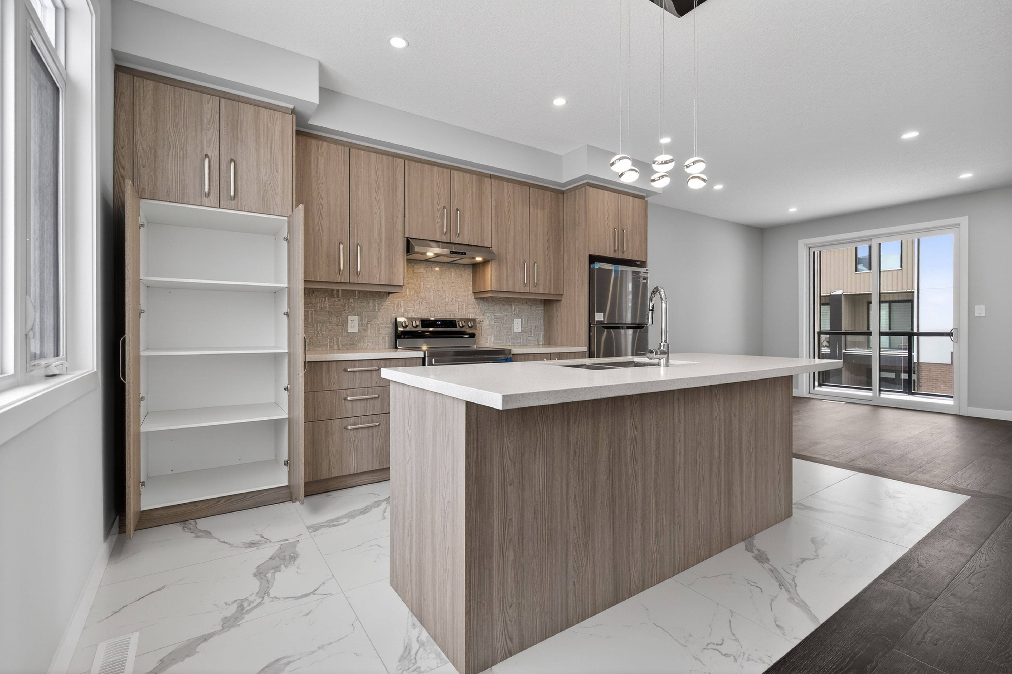 • Open-concept living space with modern kitchen and outdoor entertaining options.