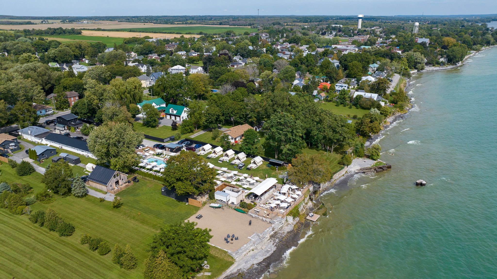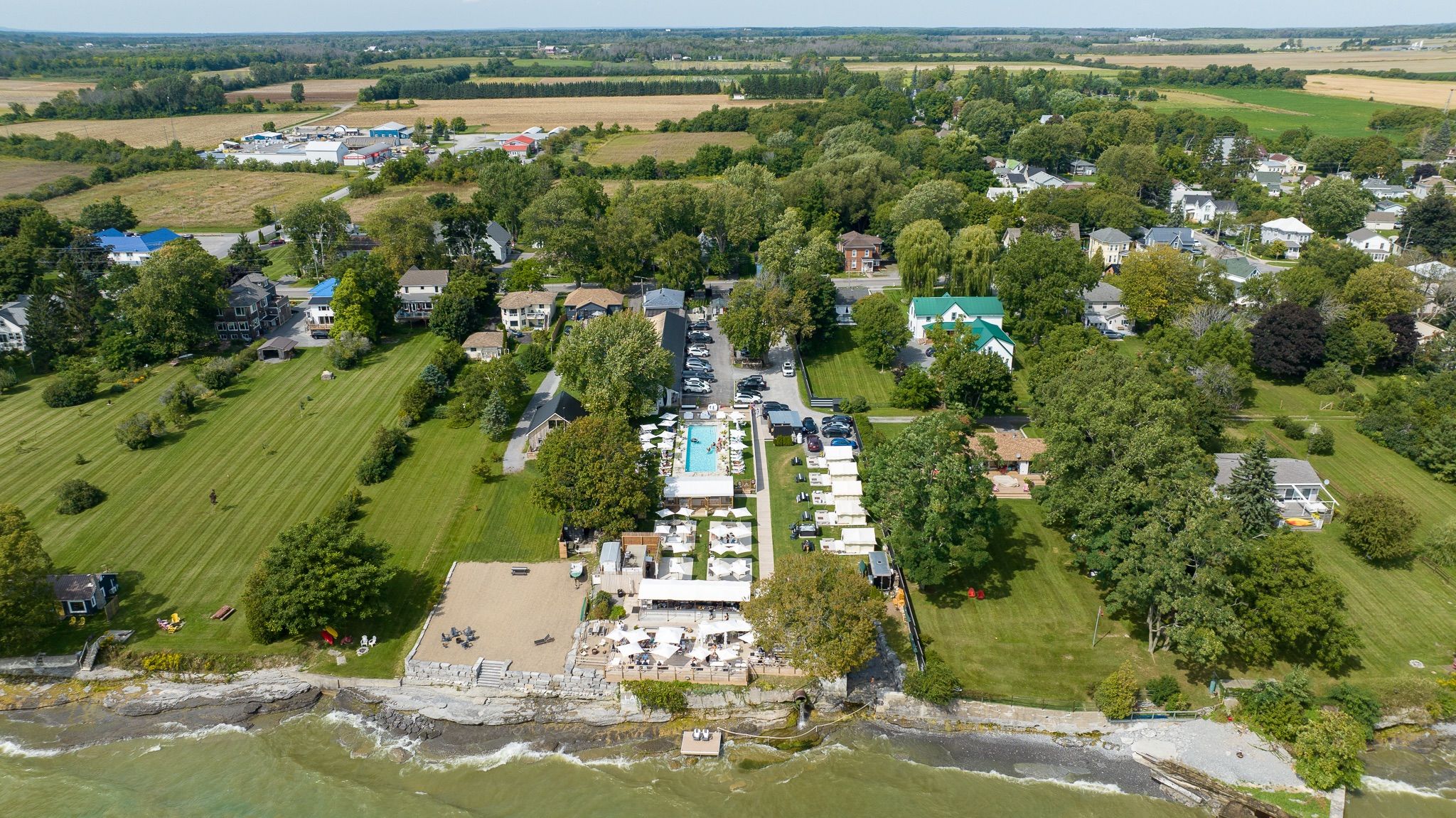 Invest in one of ontario's fastest growing tourist summer destinations. The lakeside motel is a beautifully renovated and boutique hotel located on the shores of lake ontario in prince edward county. Licensed for up to 437 guests, this turn-key destination features 13 thoughtfully designed accommodations, including 11 guest rooms and 2 private cottages, along with 5 newly constructed solid cabanas. Ample parking supports peak-season demand, making it ready for immediate continued success. The property is home to pec's largest waterfront patio and bar, offering seating for up to 160 guests with breathtaking views of the lake. A 70-foot outdoor pool with its own bar, as well as hot tub, sauna, and fire pits create an elevated guest experience, complemented by a fully equipped outdoor kitchen, service bar, prep kitchen, and dish area. In inclement weather, the enclosed seasonal pool bar and cabana dining area provide functional alternatives. Additional on-site amenities include a food truck, liquor store, giftshop, and rentals for bicycles, kayaks, and canoes. The shoreline has been restored with added water access and dock. Recent upgrades include a new generator, an outdoor sound system, and porsche ev chargers. Only two hours from toronto and four hours from montreal, this is one of pec's most unique hospitality properties. Financials available upon request. Opportunity to acquire two adjacent properties with potential to expand operations. Includes adjacent property at 351 wellington main st, prince edward county, k0k 3l0, sold together with 349 wellington main st, offering combined frontage of 172. 55 ft, total site area of 2. 23 acres, and parking of 40 + 12 spaces. Each property is held under separate ownership (see schedule b), with separate zoning designations (349 wellington main st c2, 351 wellington main st r1) and combined 2024 taxes of $20,030 (separate assessments). Please visit virtual tours for video content!