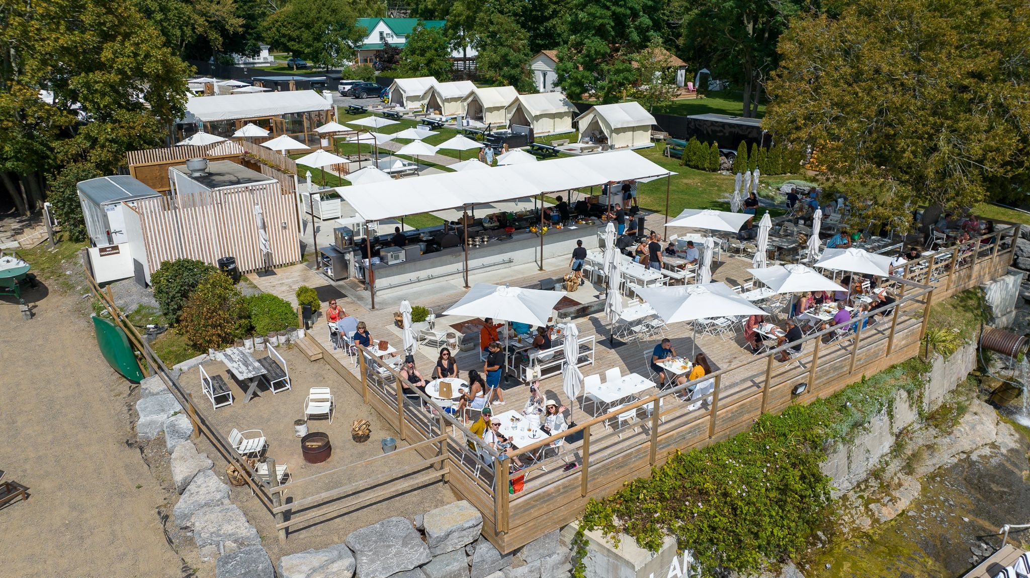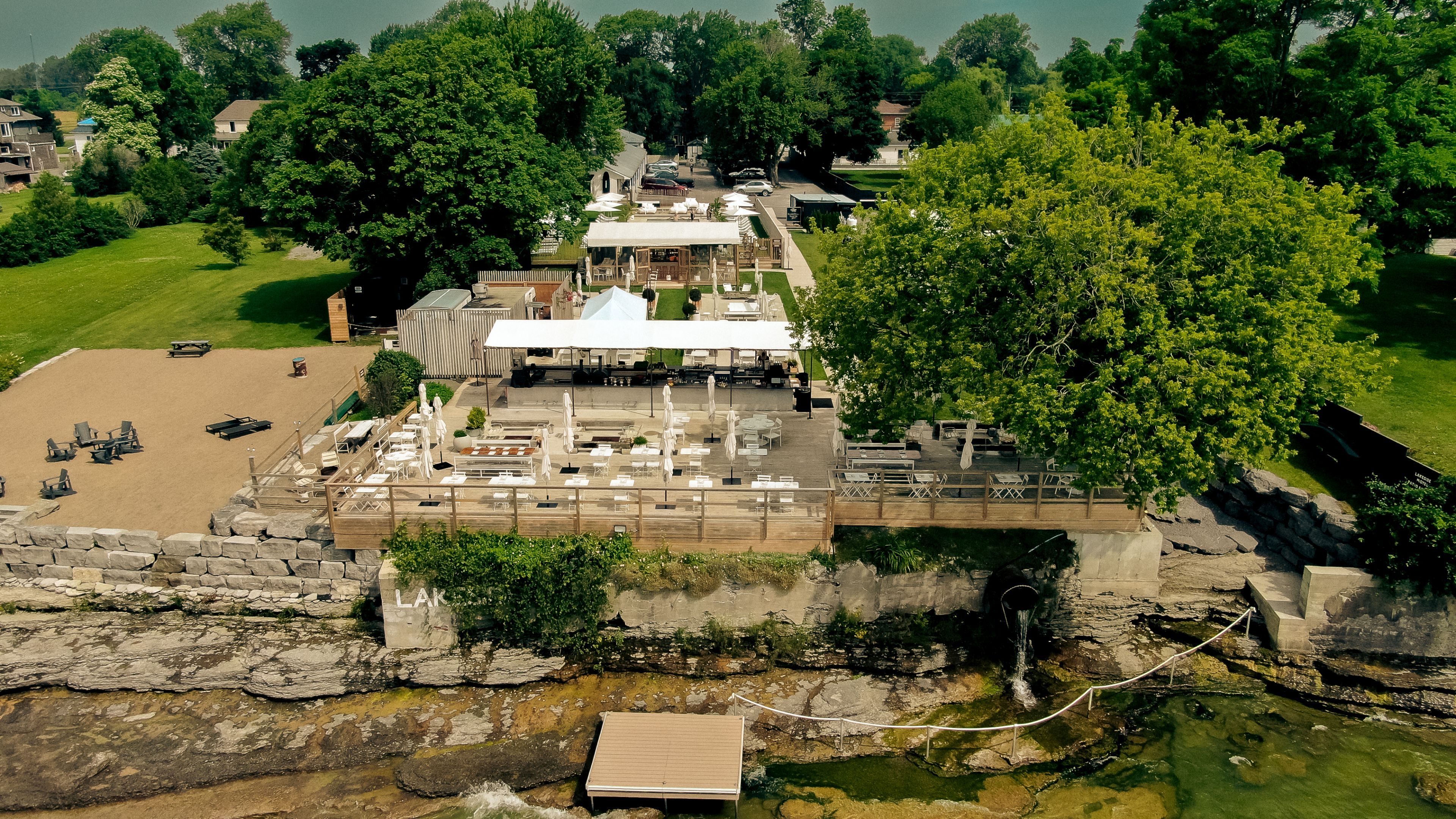 • Beautiful waterfront patio and bar with stunning lake views for 160 guests.