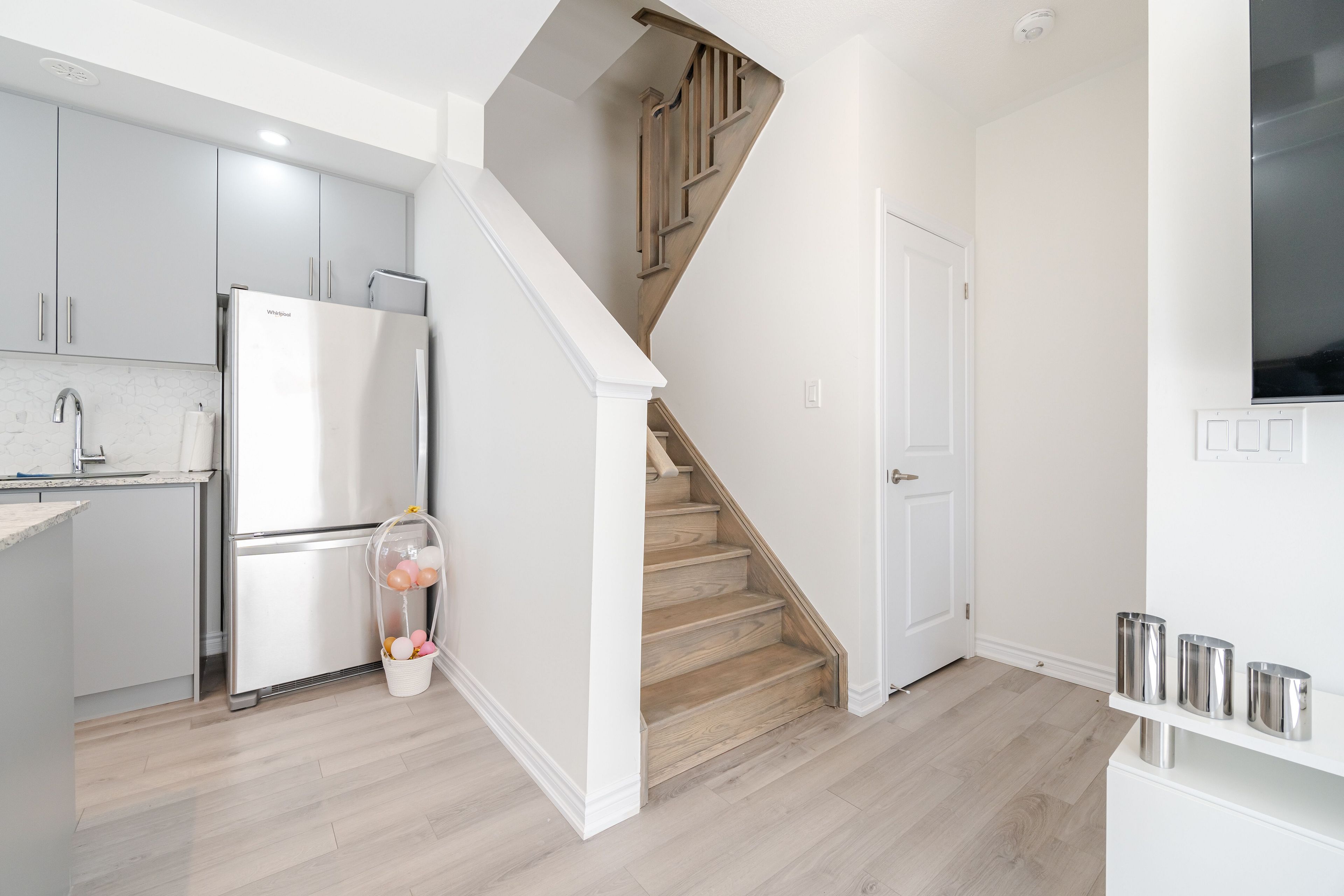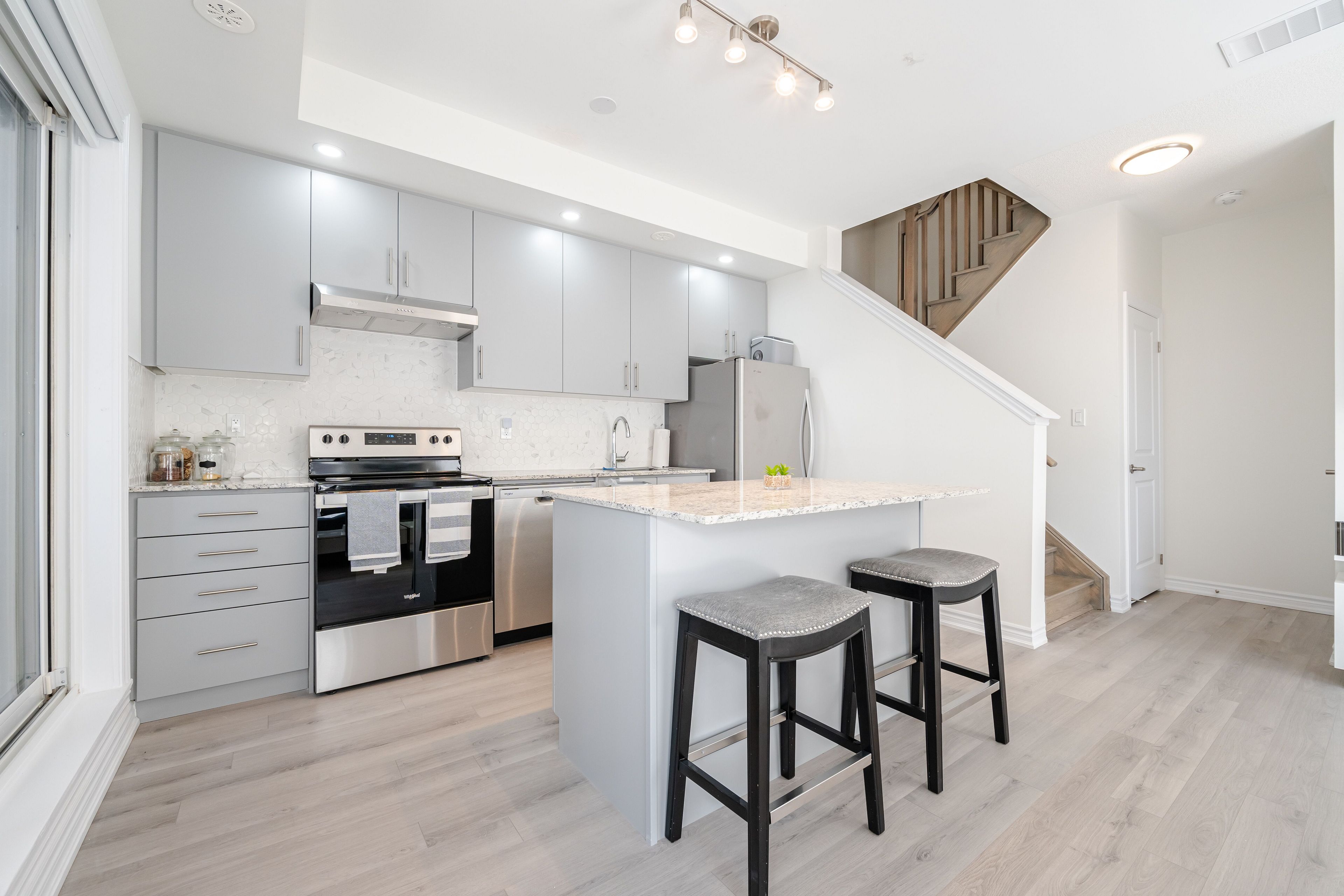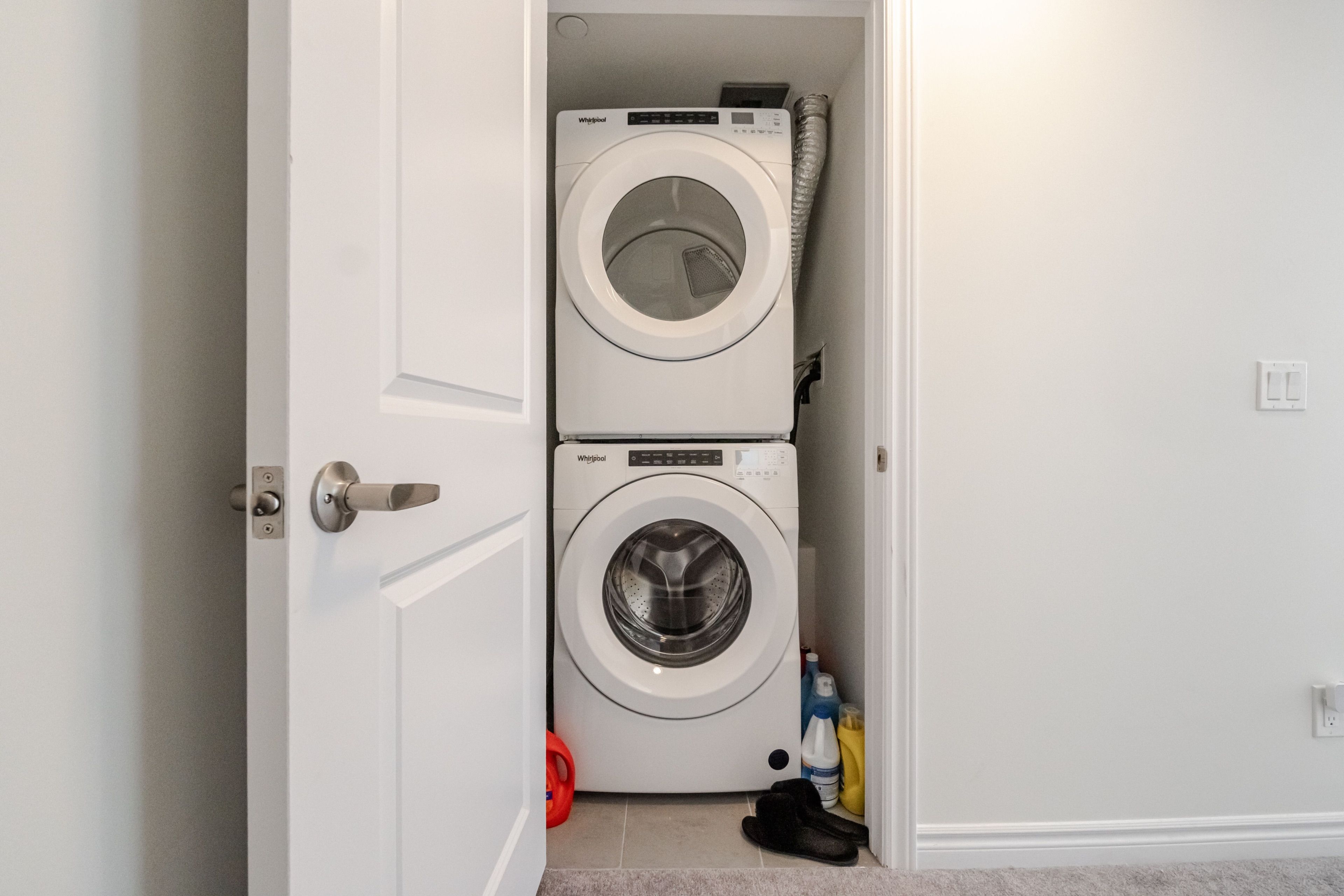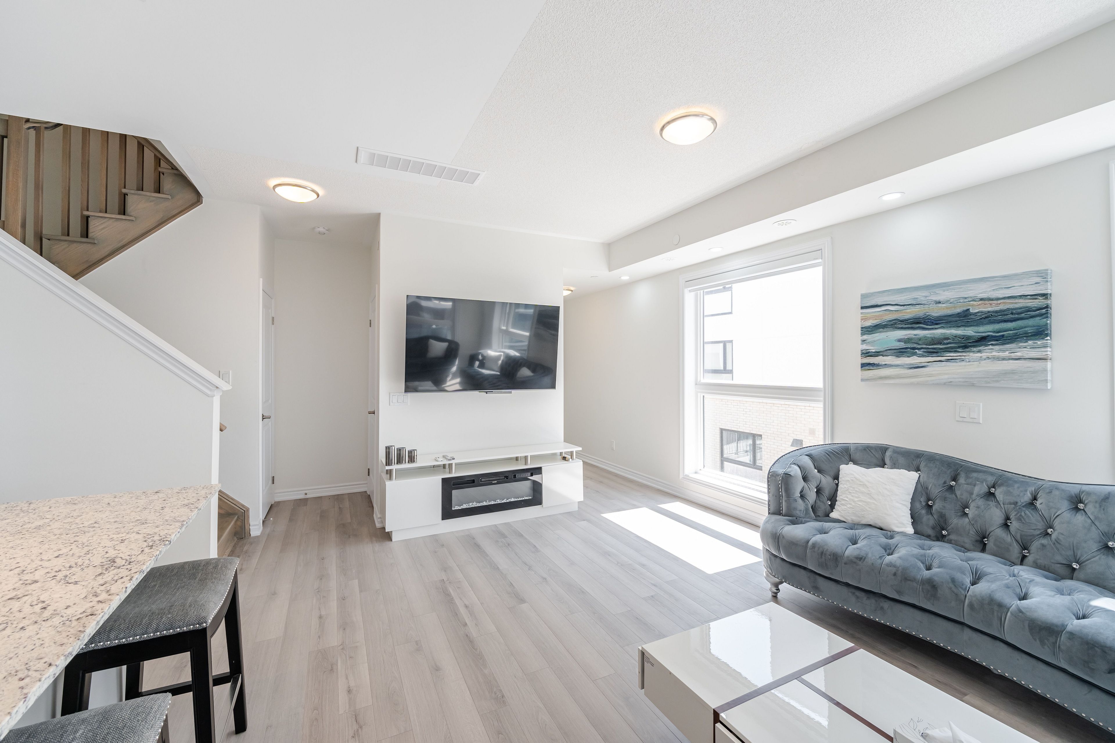 *please view tour* minto built 1425 sqft executive stacked townhouse (oakvillage) end unit* 2 bedrooms 3 washrooms in the beautiful rural oakville neighbourhood in the city of oakville* laminate flooring & 9 ft ceilings on the main floor including a w/o to the balcony* upgraded kitchen w/quartz countertop. Good size primary bedroom with 4pc ensuite & w/i closet!! Laundry on 2nd level! Bonus 318 sqft rooftop terrace. Fully furnished w/ short term available. All inclusive w/ high speed internet.