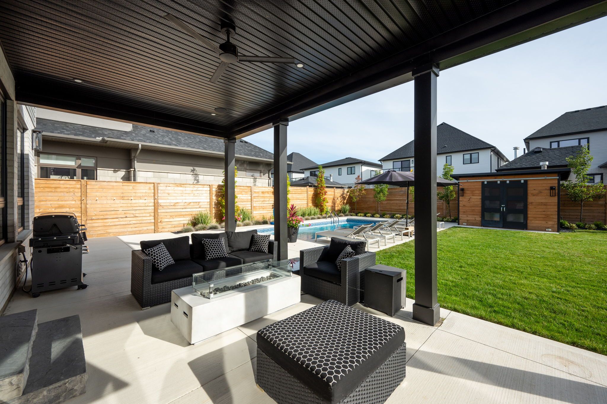 • Private backyard oasis featuring a heated in-ground saltwater pool.