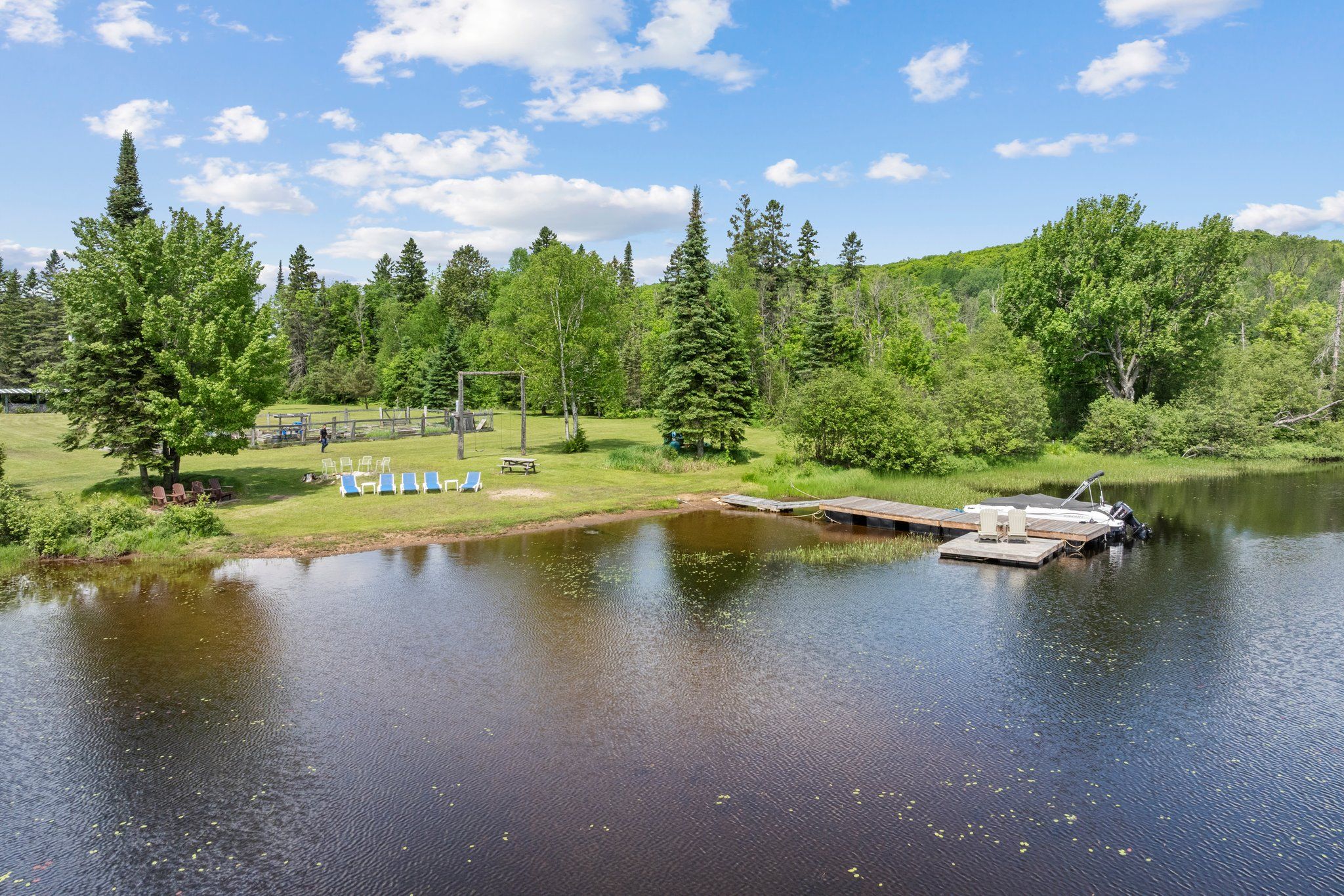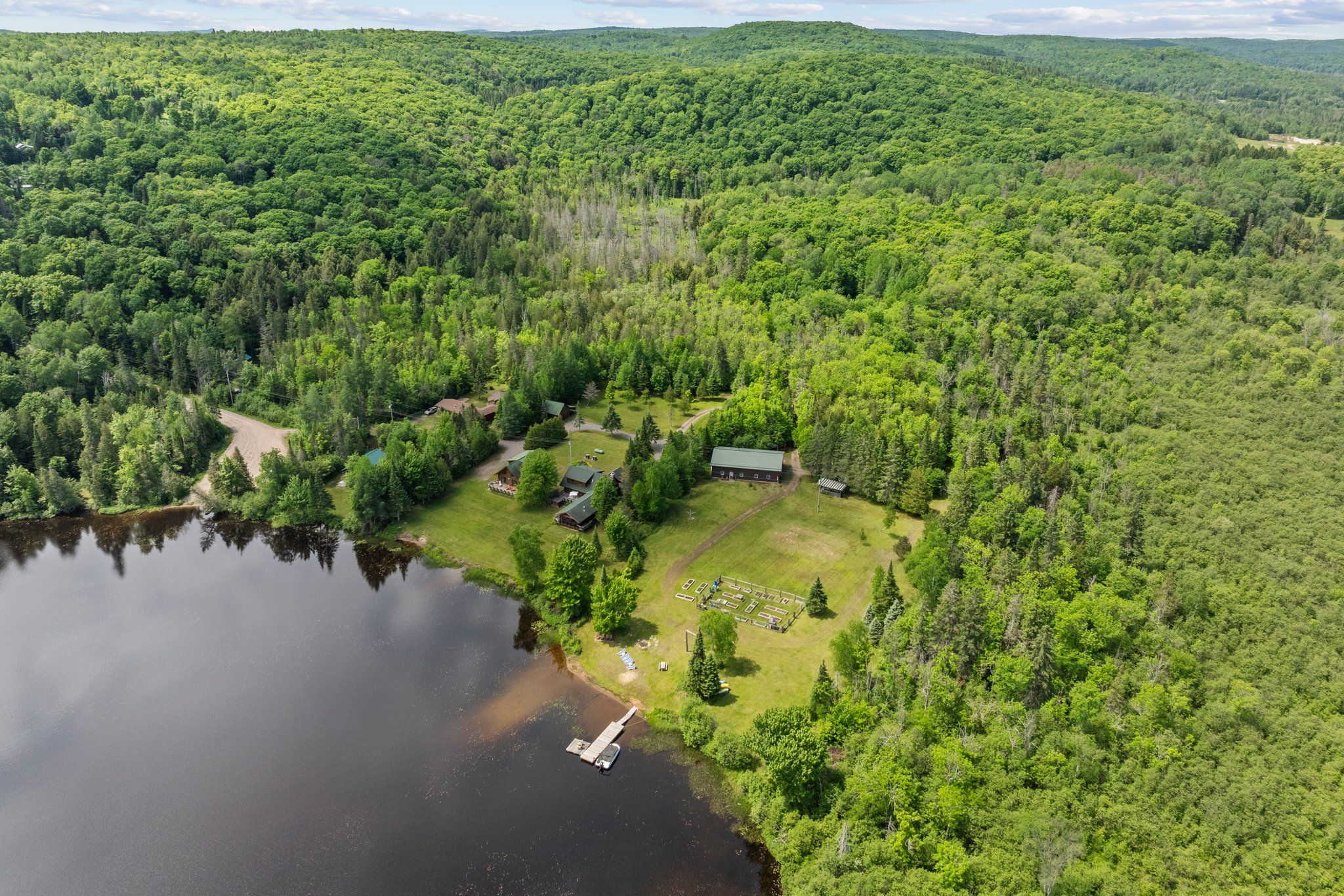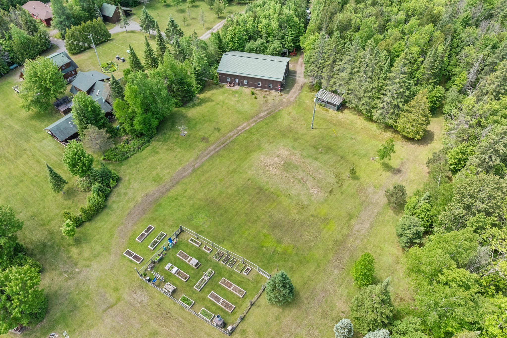 Everything you have been searching for is right here! Beautiful 38 acre waterfront property with a well constructed year round home! This barndominium style home features an impressive 777 feet of waterfront on jordan lake and 38. 16 private acres with partial commercial tourism zoning! The mixed shoreline creates a beautiful, natural setting-complete with a private dock, great fishing, and a beach area for easy summer days. The incredible raised garden beds are fully fenced with a gravity watering system for self sufficient living and provide very prosperous vegetable harvest each year. Set at the end of a long private driveway alongside a flowing creek. The home was lovingly constructed in 2004, offering 2,241 sq ft of space with soaring 12-foot ceilings and an open, airy feel throughout. With 2 bedrooms and 1 bathroom, it's comfortable with plenty of room to make it your own. A true highlight of the property is the expansive attached workspace. Featuring a 25 x 23 ft woodworking shop and a generous 36 x 17 ft tractor bay accommodating up to two vehicles, this setup is ideal for hobbyists, trades, or those seeking exceptional storage and versatility. The large level, grassy yard takes you directly to the lake but the well forested back yard leads you to wooded trails and mixed hardwood forest. Accessed year-round via a township-maintained road, the property offers both seclusion and convenience. A drilled well, septic system, and durable metal roof (approximately 16 years old) add to the home's ease of ownership. With mixed shoreline and commercial tourism zoning, the property also presents exciting potential for future use beyond residential such as a campground and tourism opportunities. With current property taxes of just $1,888 this is a truly unique opportunity to own a private waterfront retreat with exceptional space, flexibility, and long-term potential.