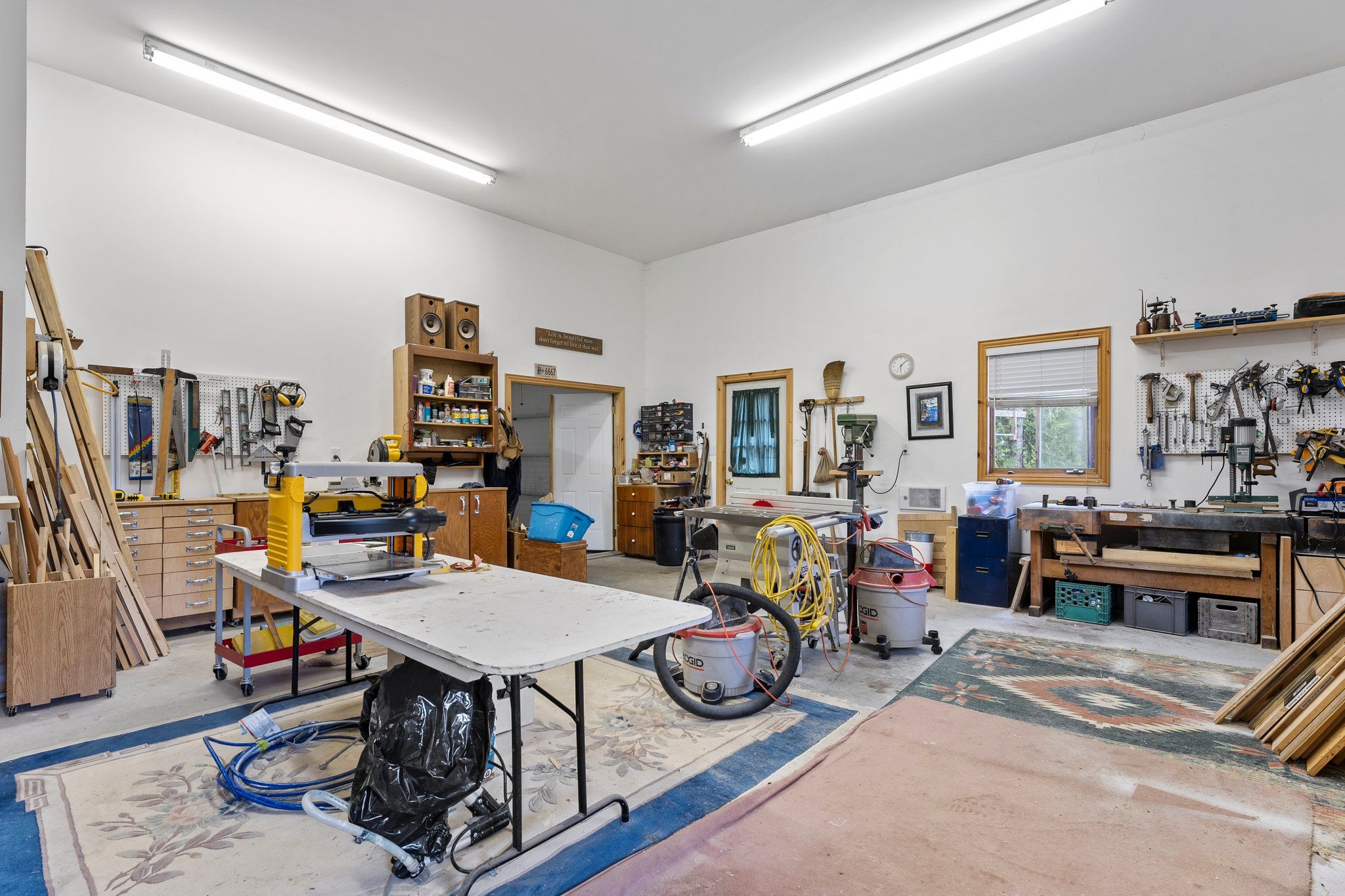 • Expansive workspace with woodworking shop and tractor bay for various projects.