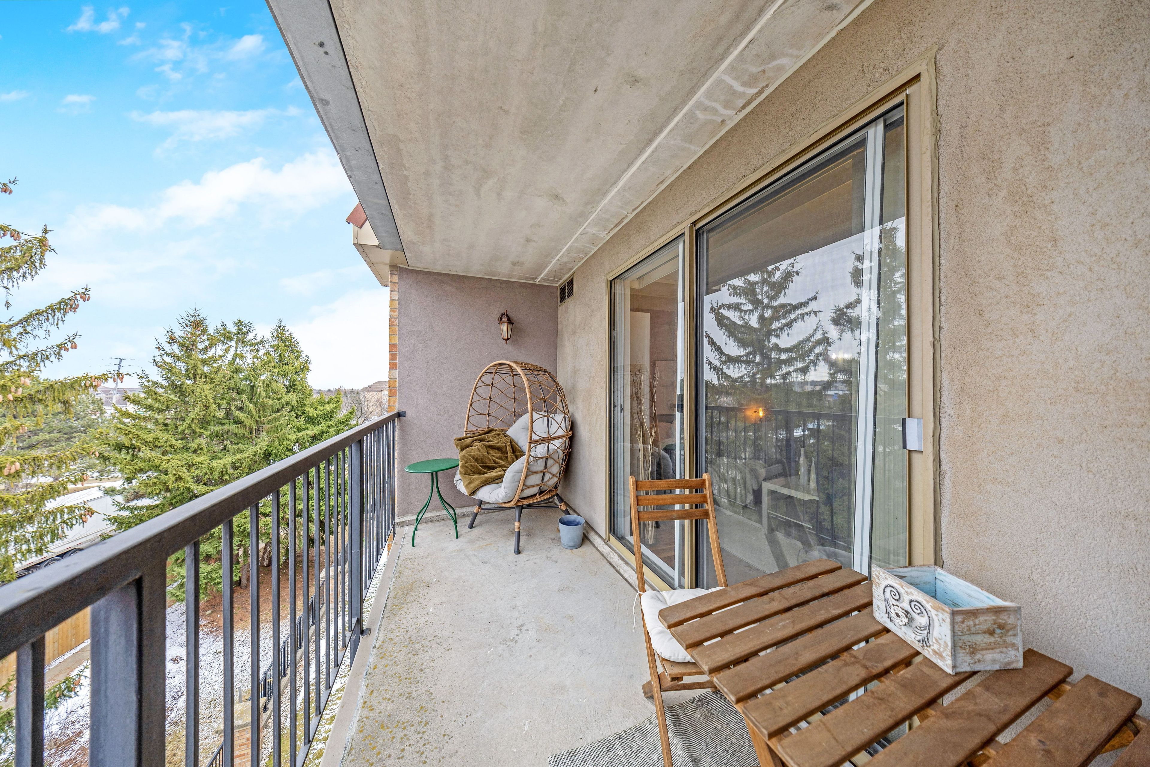 • Private balcony with views of beautifully landscaped grounds.