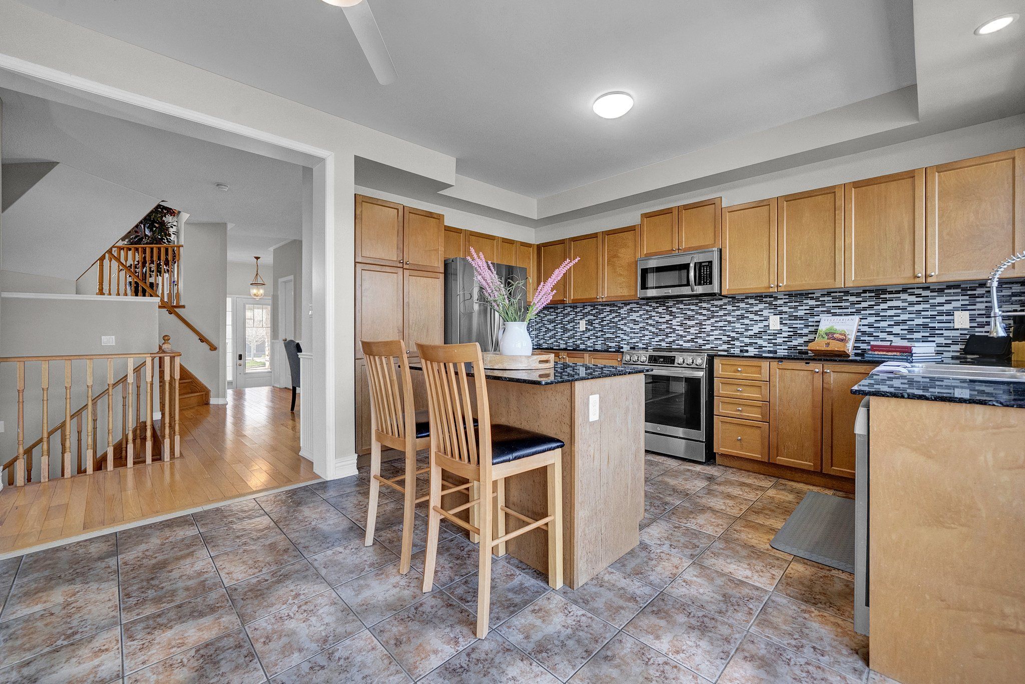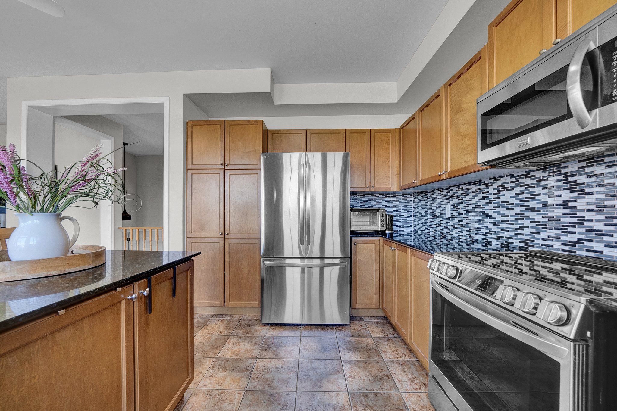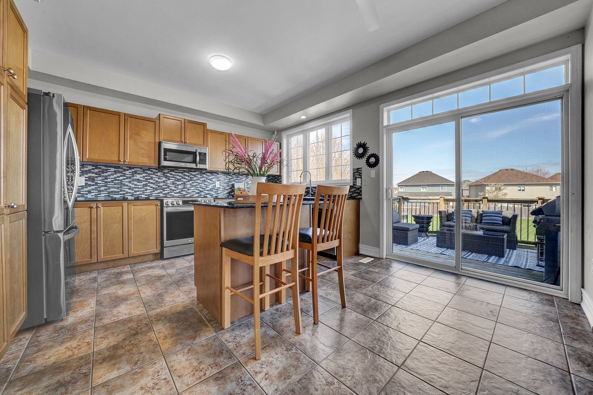 • Spacious kitchen with granite counters and seamless flow to outdoor living.