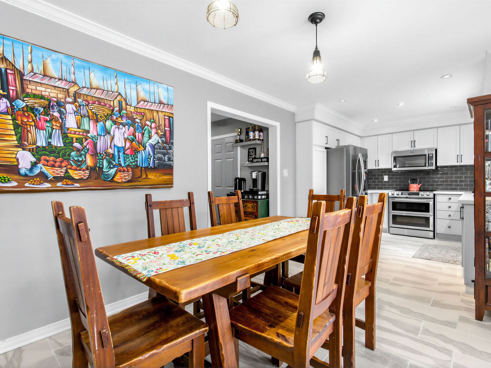 • Spacious dining area with walkout to a sunlit backyard.
