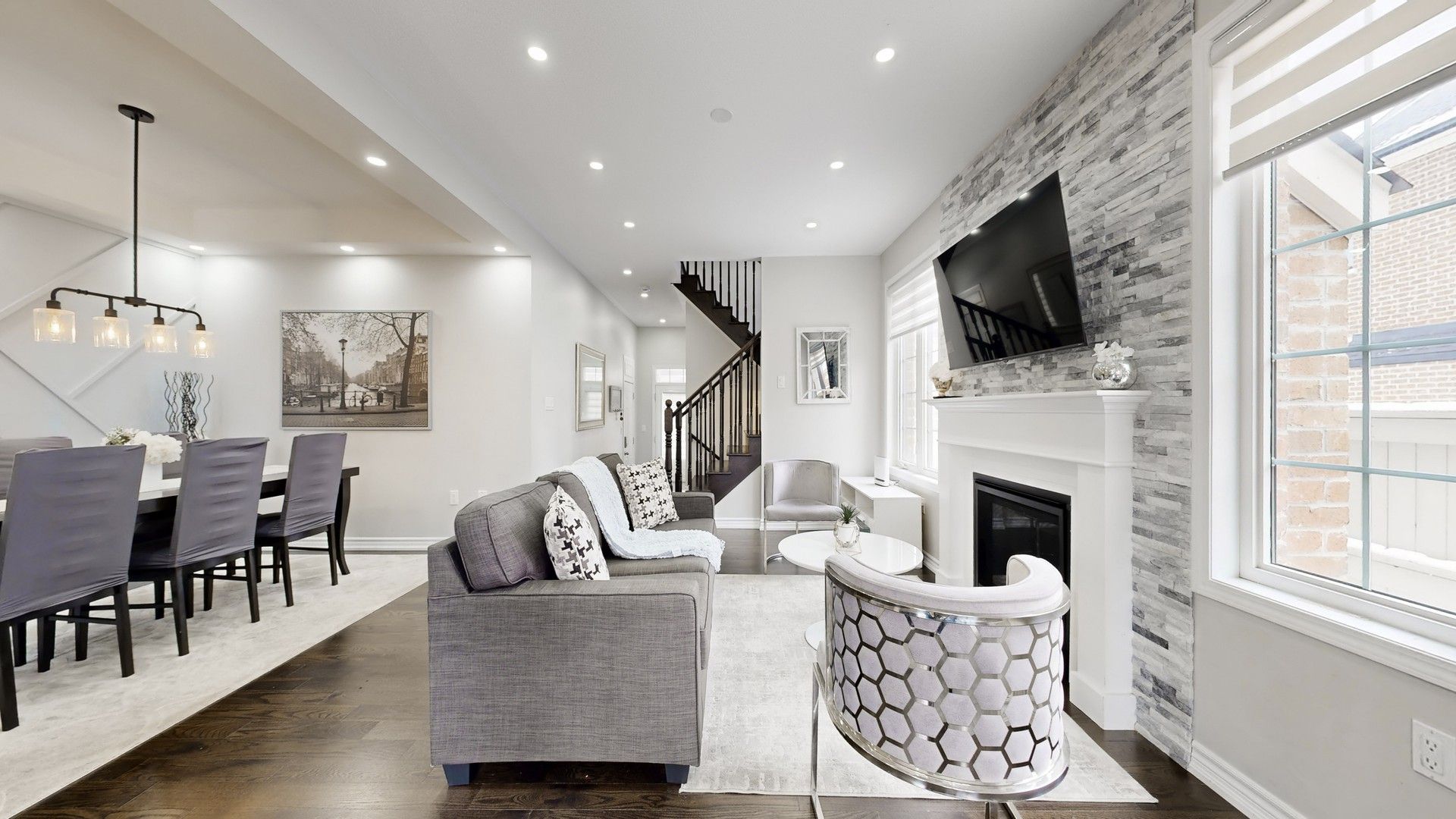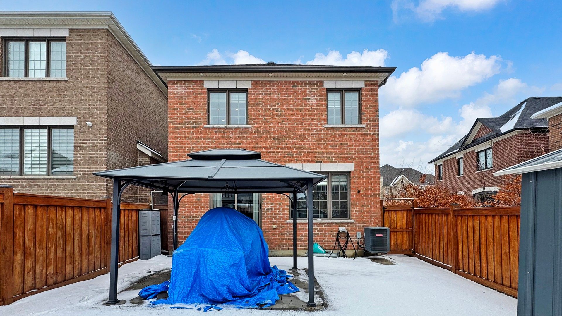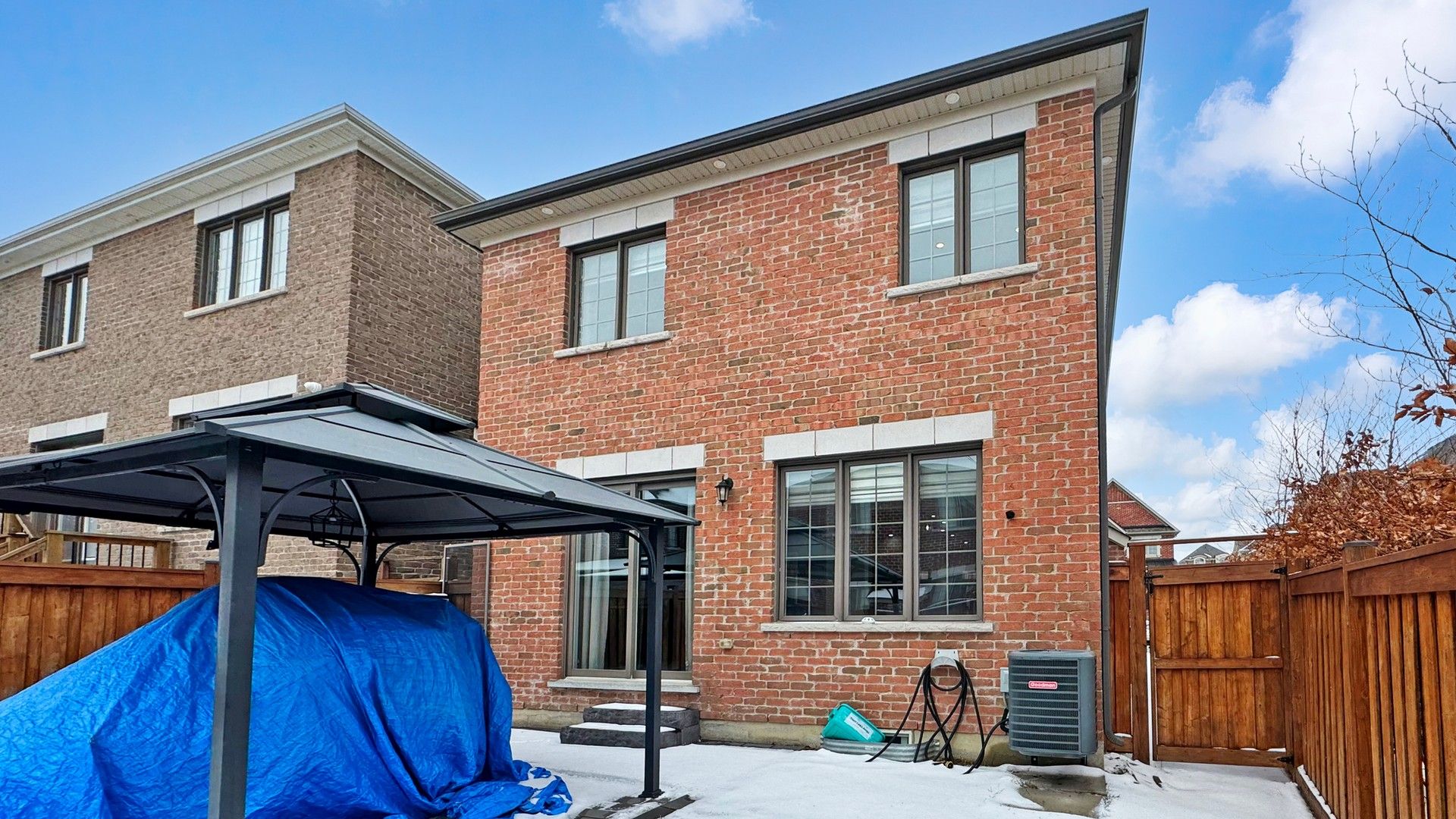 This stunning, approximately 2,000 sq. Ft. Home offers the perfect blend of elegance, comfort, and modern upgrades. Featuring 4 spacious bedrooms and 3 well-appointed washrooms, this beautifully maintained property is designed for both everyday living and entertaining. Step inside to discover 9-foot ceilings on both the main and second floors, complemented by 8-foot doors, elegant hardwood flooring, and modern pot lights that create a bright and inviting atmosphere throughout. The upgraded eat-in kitchen is ideal for family meals and hosting guests, while the cozy gas fireplace in the living area adds warmth and charm. Enjoy the convenience of second-floor laundry and retreat to a spacious primary bedroom featuring a luxurious 5-piece ensuite and a large walk-in closet. The exterior is equally impressive, boasting an extended interlock driveway with no sidewalk in front, providing extra parking space, and a beautifully designed interlock patio in the backyard - perfect for outdoor entertaining and relaxation. Additional highlights include a 200 amp electrical panel and a large cold cellar for extra storage. Located in a highly desirable, safe, and family-friendly neighbourhood, this exceptional home offers unmatched comfort, style, and convenience.