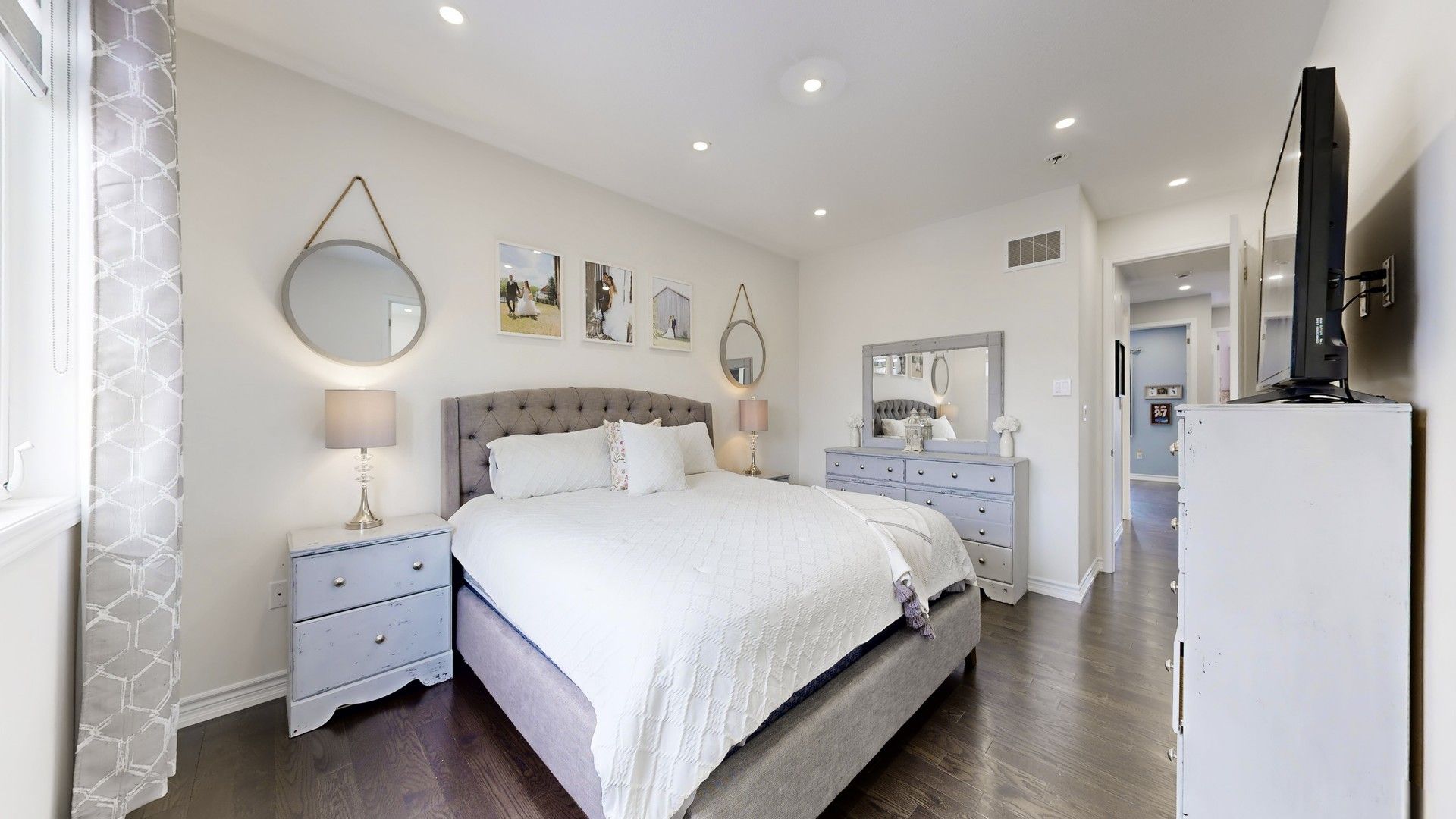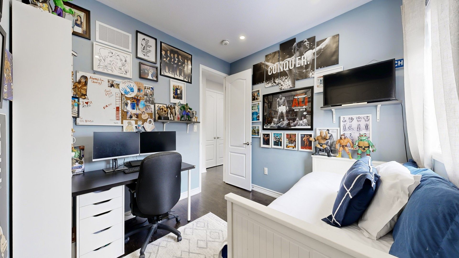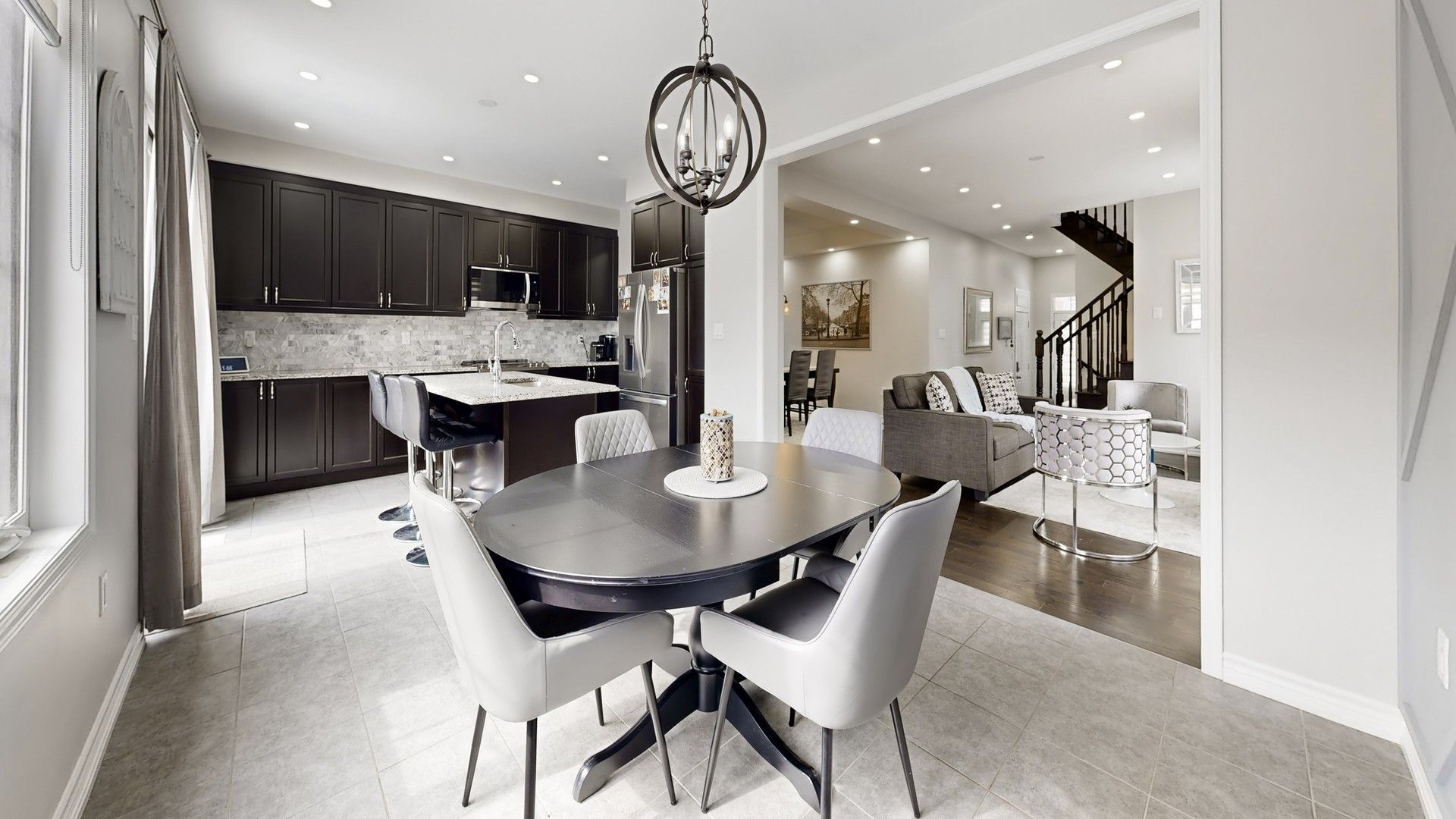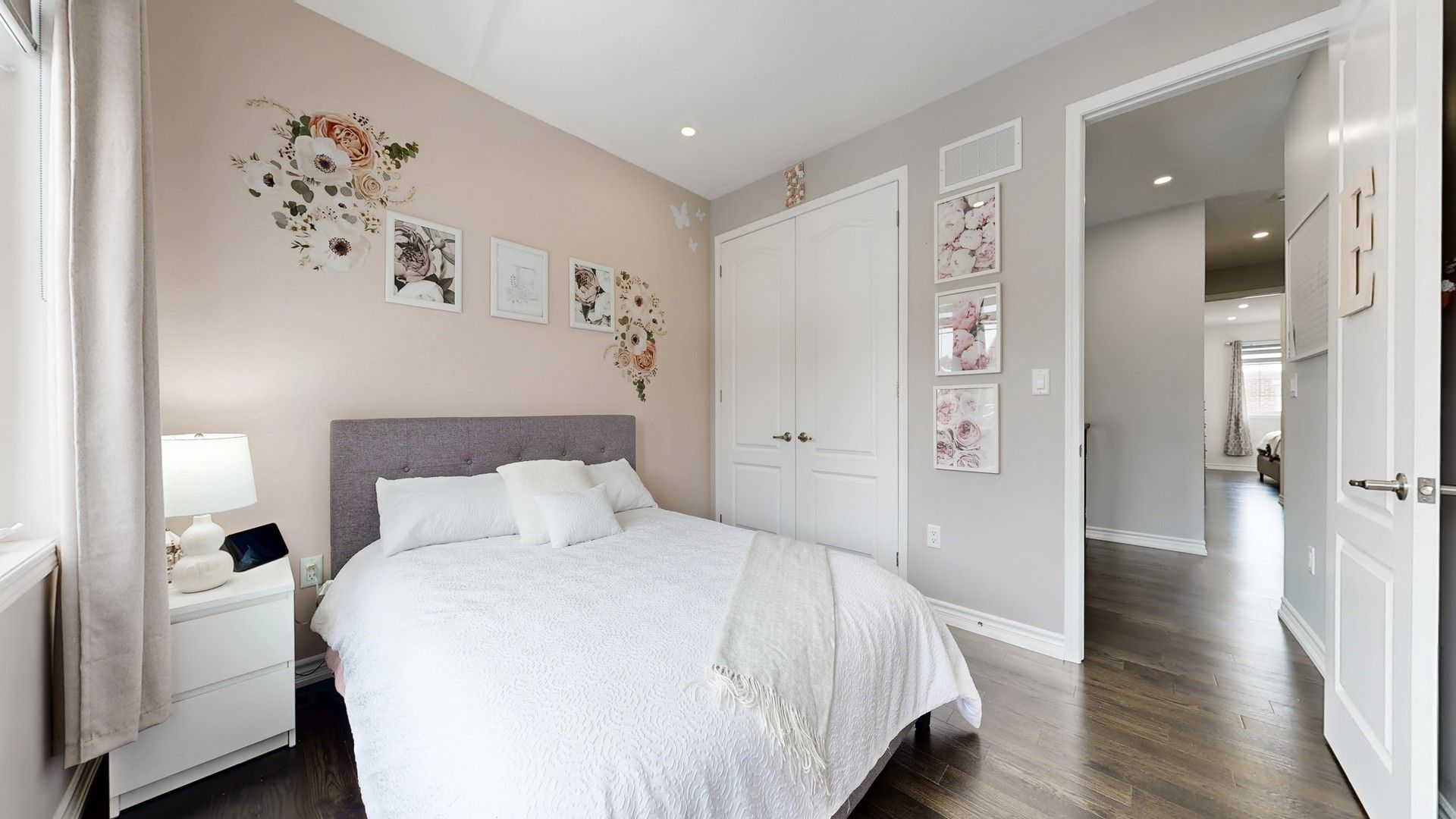 This stunning, approximately 2,000 sq. Ft. Home offers the perfect blend of elegance, comfort, and modern upgrades. Featuring 4 spacious bedrooms and 3 well-appointed washrooms, this beautifully maintained property is designed for both everyday living and entertaining. Step inside to discover 9-foot ceilings on both the main and second floors, complemented by 8-foot doors, elegant hardwood flooring, and modern pot lights that create a bright and inviting atmosphere throughout. The upgraded eat-in kitchen is ideal for family meals and hosting guests, while the cozy gas fireplace in the living area adds warmth and charm. Enjoy the convenience of second-floor laundry and retreat to a spacious primary bedroom featuring a luxurious 5-piece ensuite and a large walk-in closet. The exterior is equally impressive, boasting an extended interlock driveway with no sidewalk in front, providing extra parking space, and a beautifully designed interlock patio in the backyard - perfect for outdoor entertaining and relaxation. Additional highlights include a 200 amp electrical panel and a large cold cellar for extra storage. Located in a highly desirable, safe, and family-friendly neighbourhood, this exceptional home offers unmatched comfort, style, and convenience.