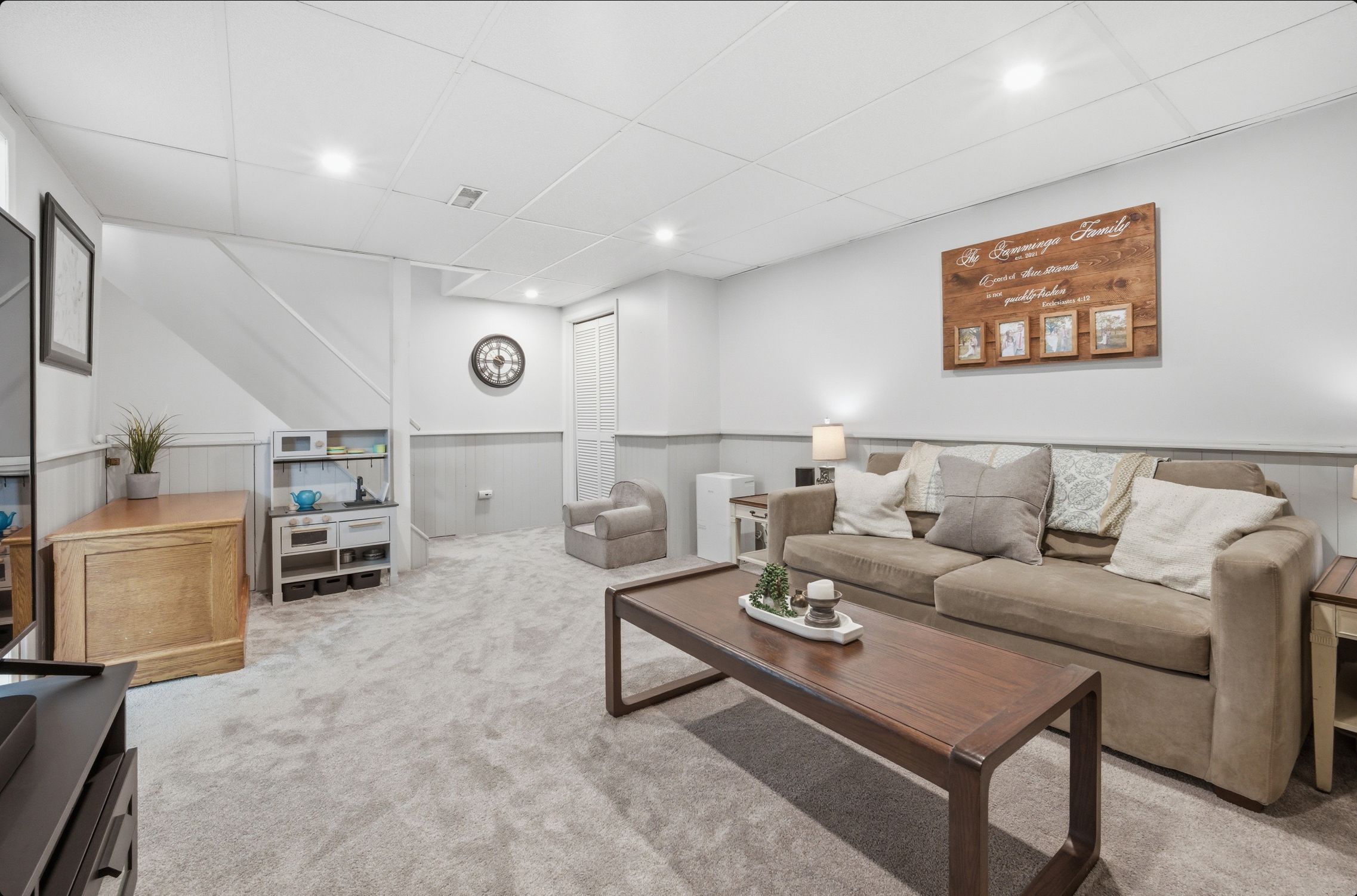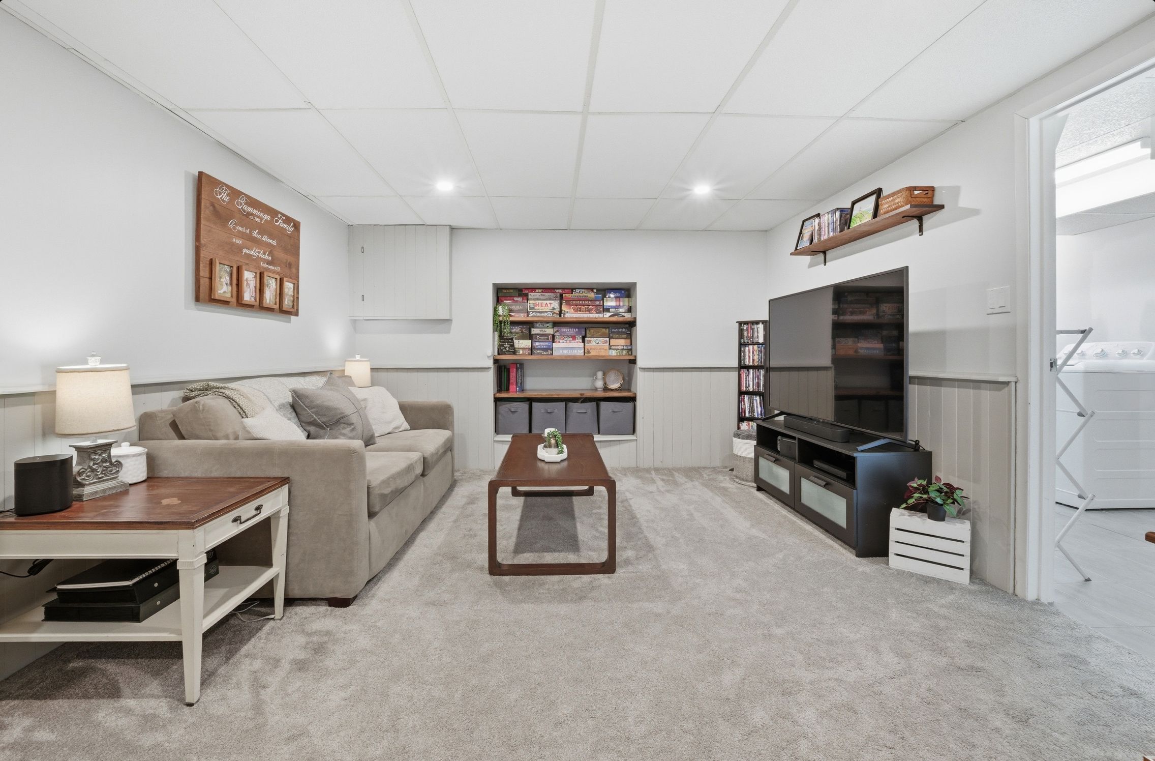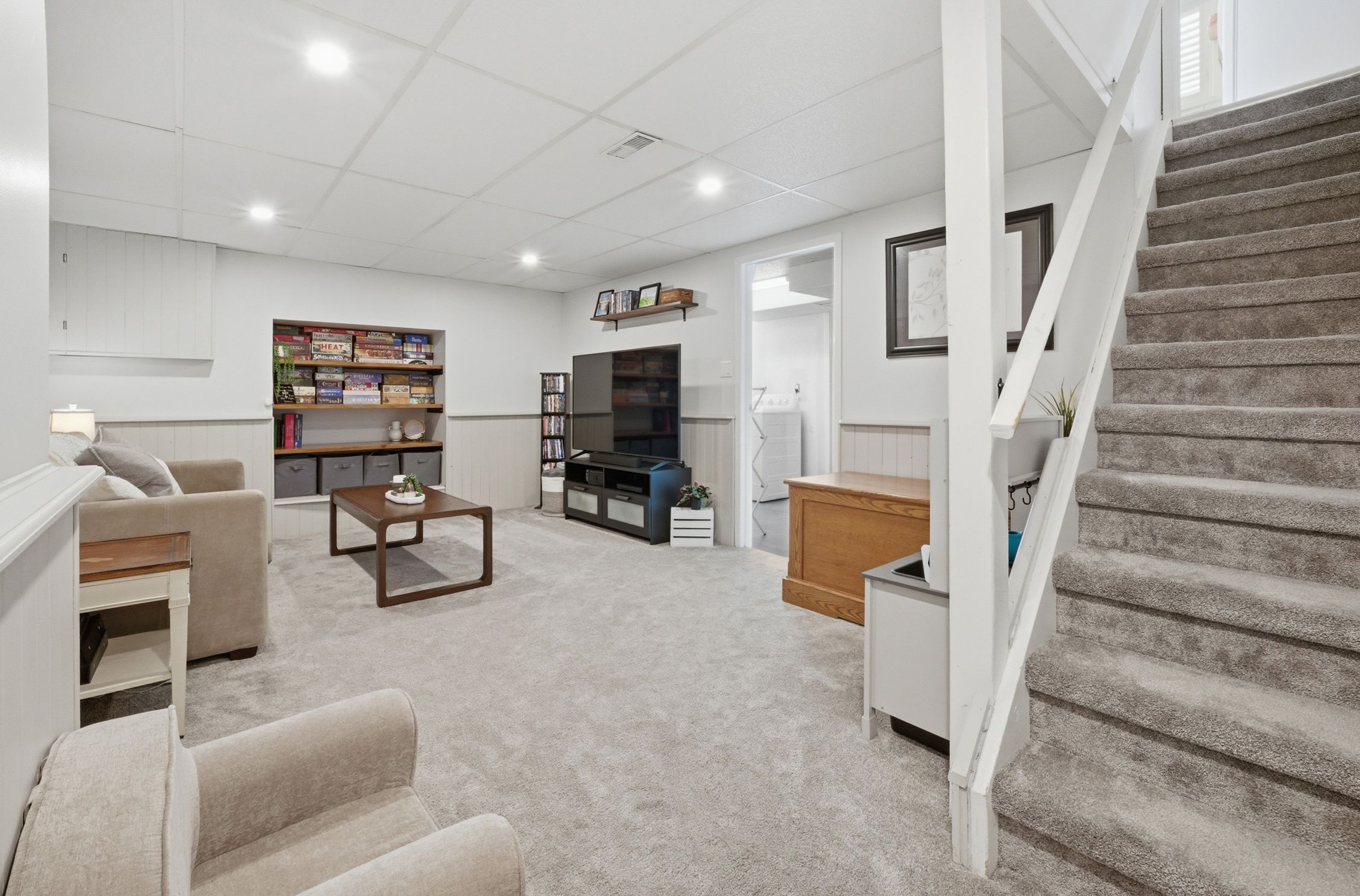 • Finished basement includes a sitting area, laundry, and extra full bathroom.