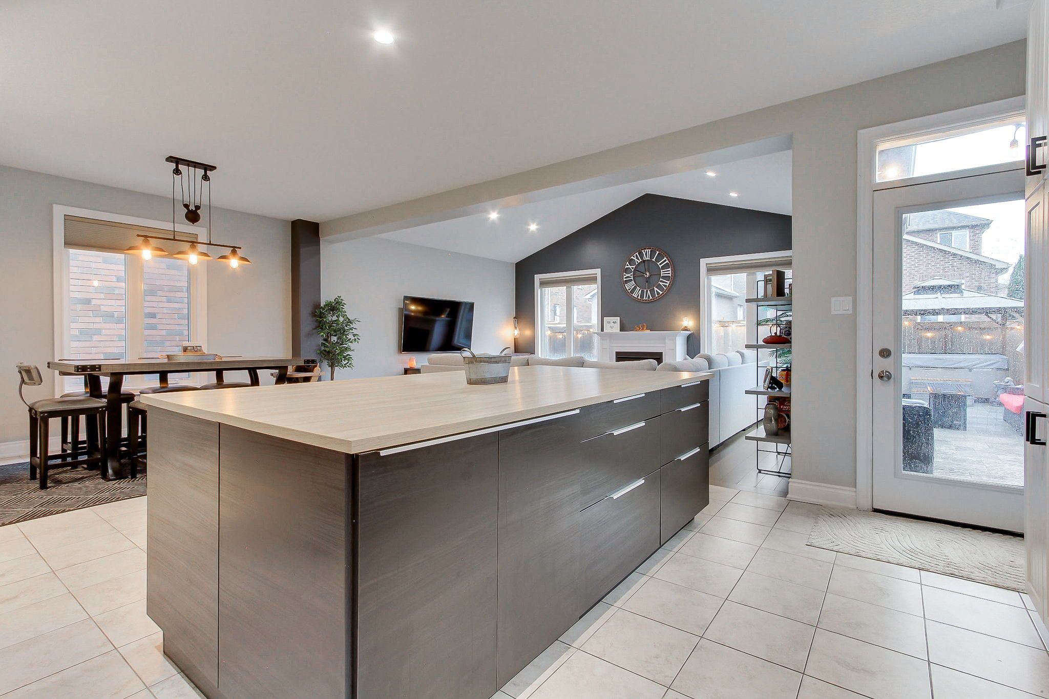 • Bright open-concept main floor with spacious eat-in kitchen and large island.