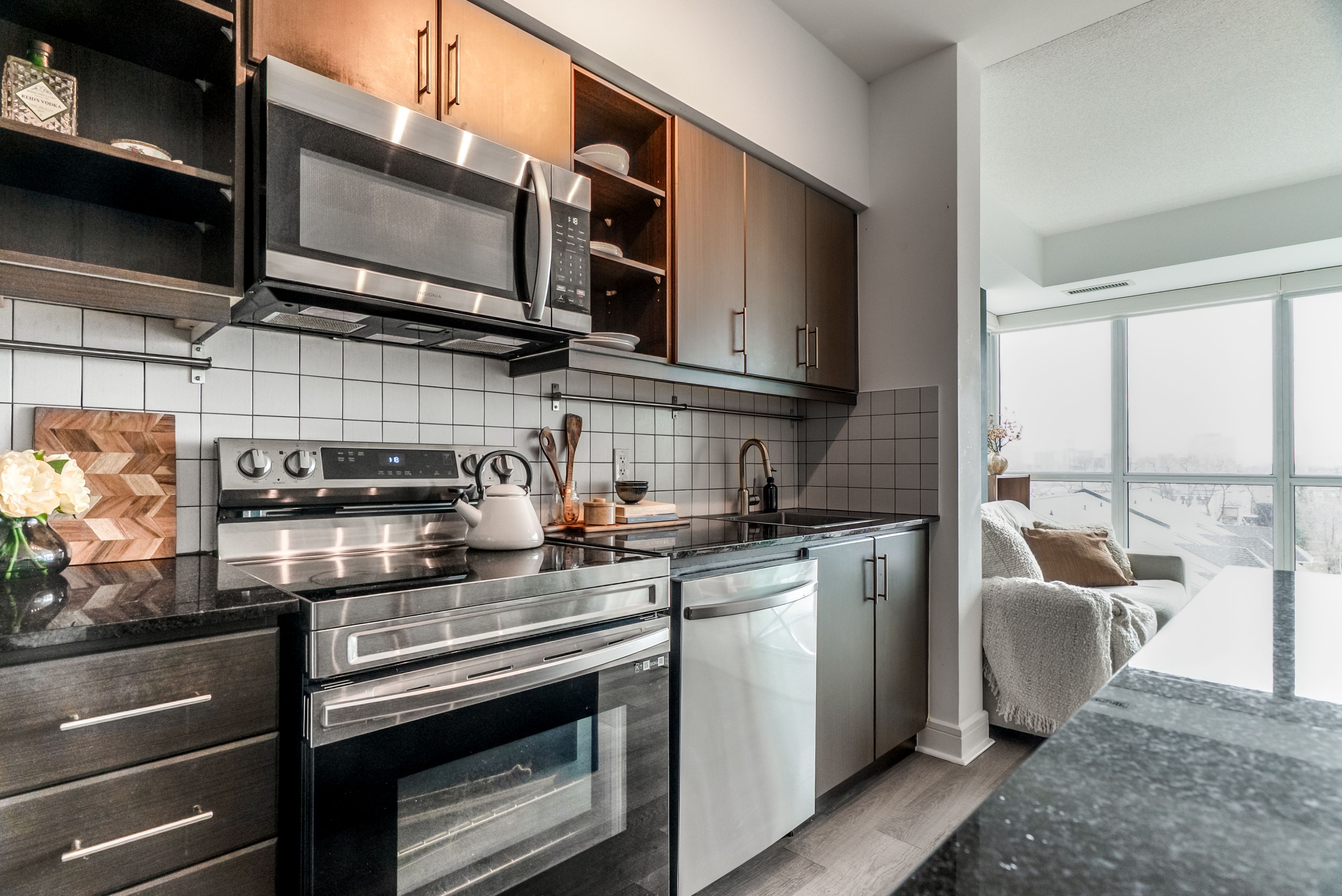Space, style & location - the complete 1+1 at scenic on eglinton at 662 sq ft, this 1+den offers one of the most functional layouts in the building-- thoughtfully designed to make every square foot count. South-facing exposure floods the bright, open-concept living area with natural light all day long, creating a space that feels effortless for both everyday living and entertaining. The generously sized bedroom features a large window, while the versatile den adapts to your lifestyle - second bedroom, home office, or dedicated dining space. That kind of flexibility is rare at this price point. The kitchen comes equipped with brand-new appliances (2025), and the upgraded 4-piece bathroom (2025) delivers clean, contemporary finishes throughout. A well-managed, pet-friendly building with a genuine sense of community. This suite includes parking and a locker, plus access to premium amenities: 24-hour concierge, indoor lap pool, gym, sauna, and more. Situated in prestigious leaside within a highly sought-after school district, you're steps from the eglinton crosstown lrt, sunnybrook park, the don valley trails, and everyday conveniences including farm boy, longo's, costco, and lcbo.