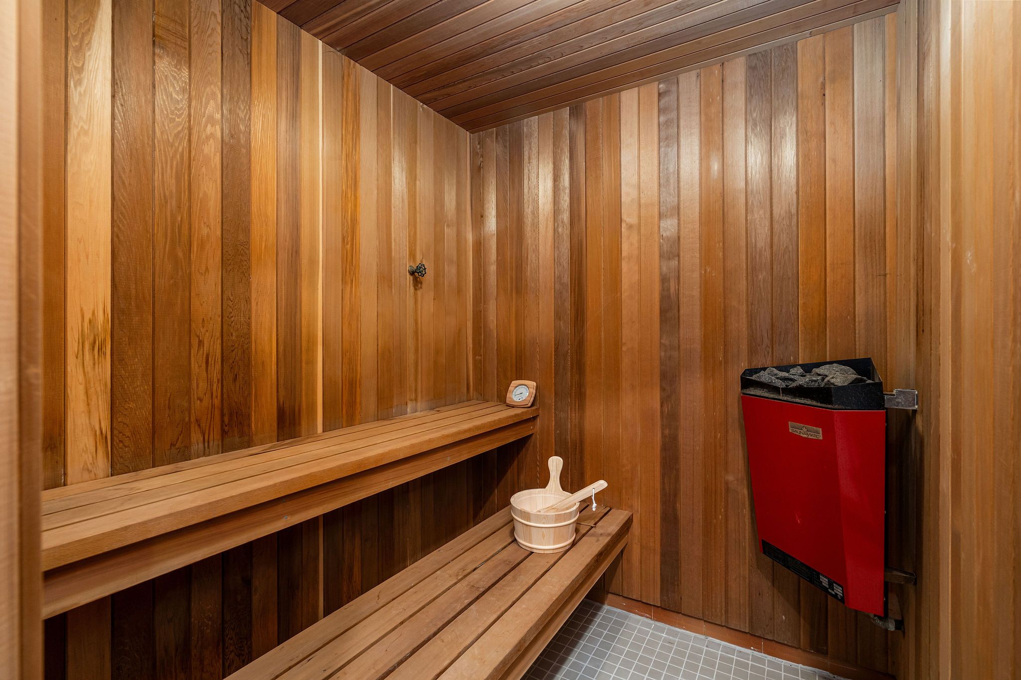 • Finished lower level with wet bar, sauna, and additional living space for guests.