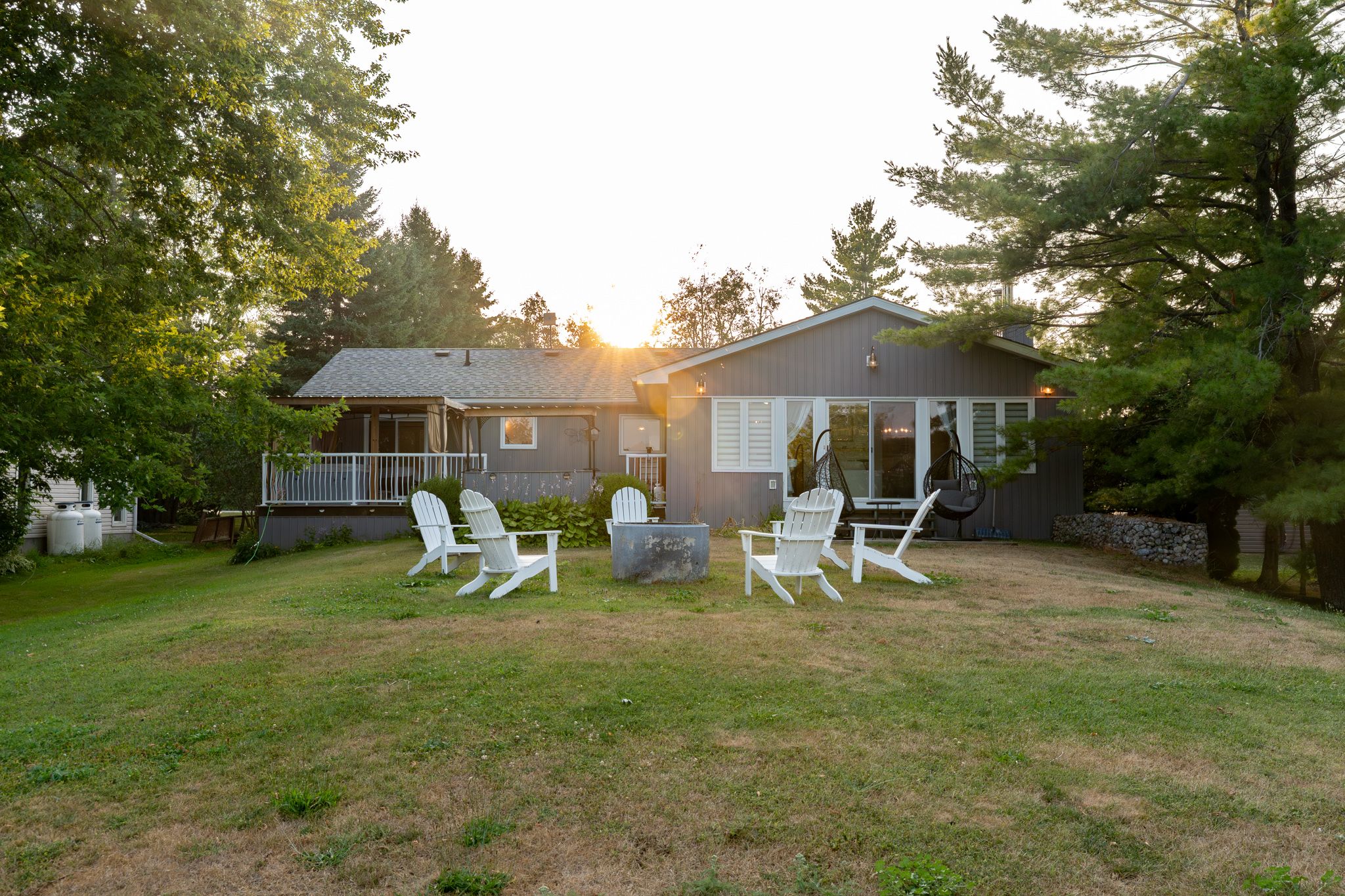 Tucked away on a quiet street and right on the school bus route, this warm and welcoming 3+1 bedroom, 3-bath waterfront home offers everything you need for comfortable, year-round lakeside living with 103 feet of water frontage and a beautiful dock extending onto canal lake, part of the renowned trent-severn waterway. Inside you will find a bright, open-concept layout, freshly painted throughout. The main floor includes three generous bedrooms, a large dining room, spacious living room, main floor laundry, and a primary suite with a 4-piece ensuite and a walkout to the back deck the perfect spot to catch gorgeous sunrises. The kitchen is updated with sleek quartz counters (2021) and top-of-the-line samsung appliances, including a smart fridge (2022) . Downstairs, the newly renovated basement (2025) offers plenty of extra living space, featuring a 4th bedroom, dedicated office, home gym, and a large family/ rec room with a cozy wood-burning stove. Outside, theres room for everyone with a driveway that fits 8-10 cars, plus an attached 2-car garage converted into a comfortable bonus space with new flooring and a heat pump. You will also find a detached shop for extra storage or a workshop. Additional highlights include a generac generator(2022) for peace of mind this home is ready for whatever life brings. Whether you're looking for a full-time residence or a weekend retreat, this property has the space, the views, and all the extras to make every day feel like a getaway.