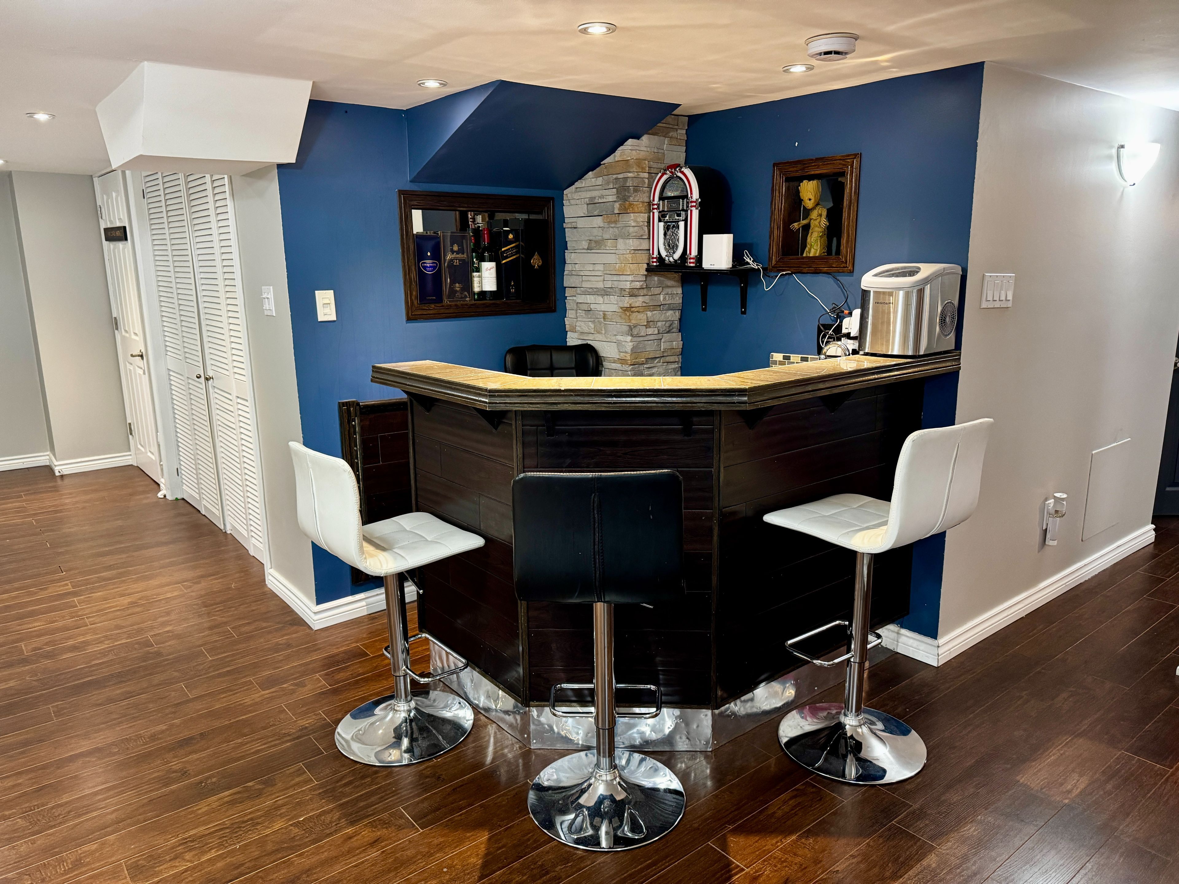 • Finished basement featuring a custom bar and a theatre room.