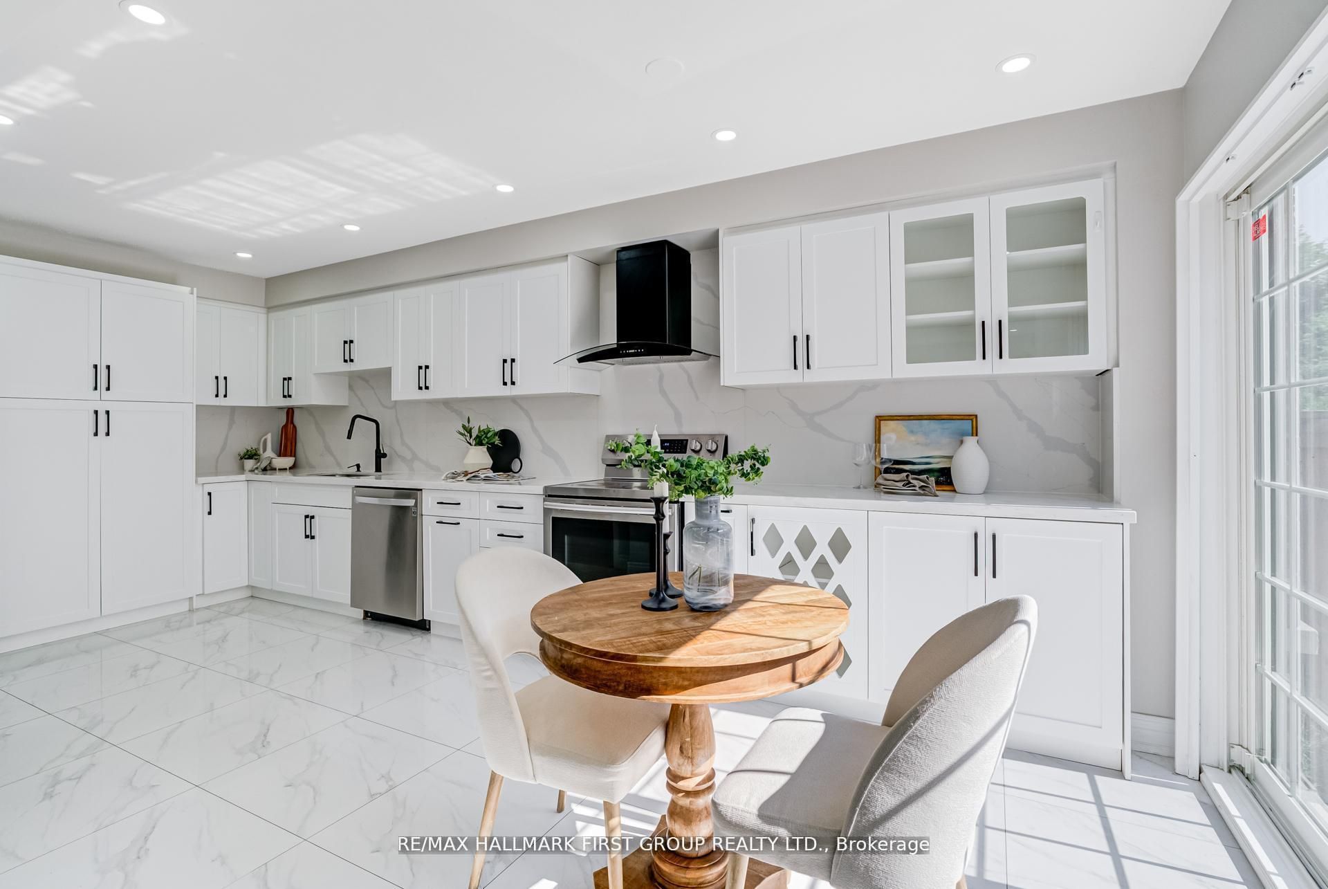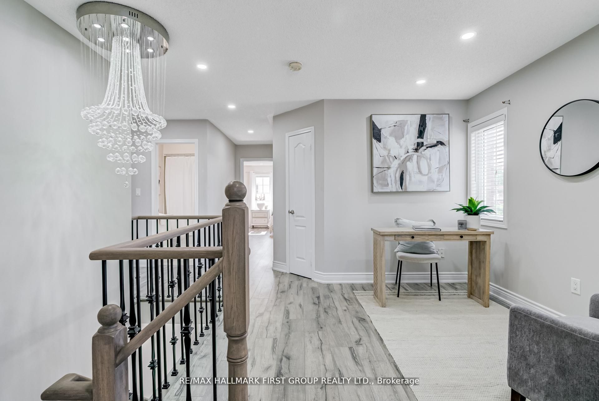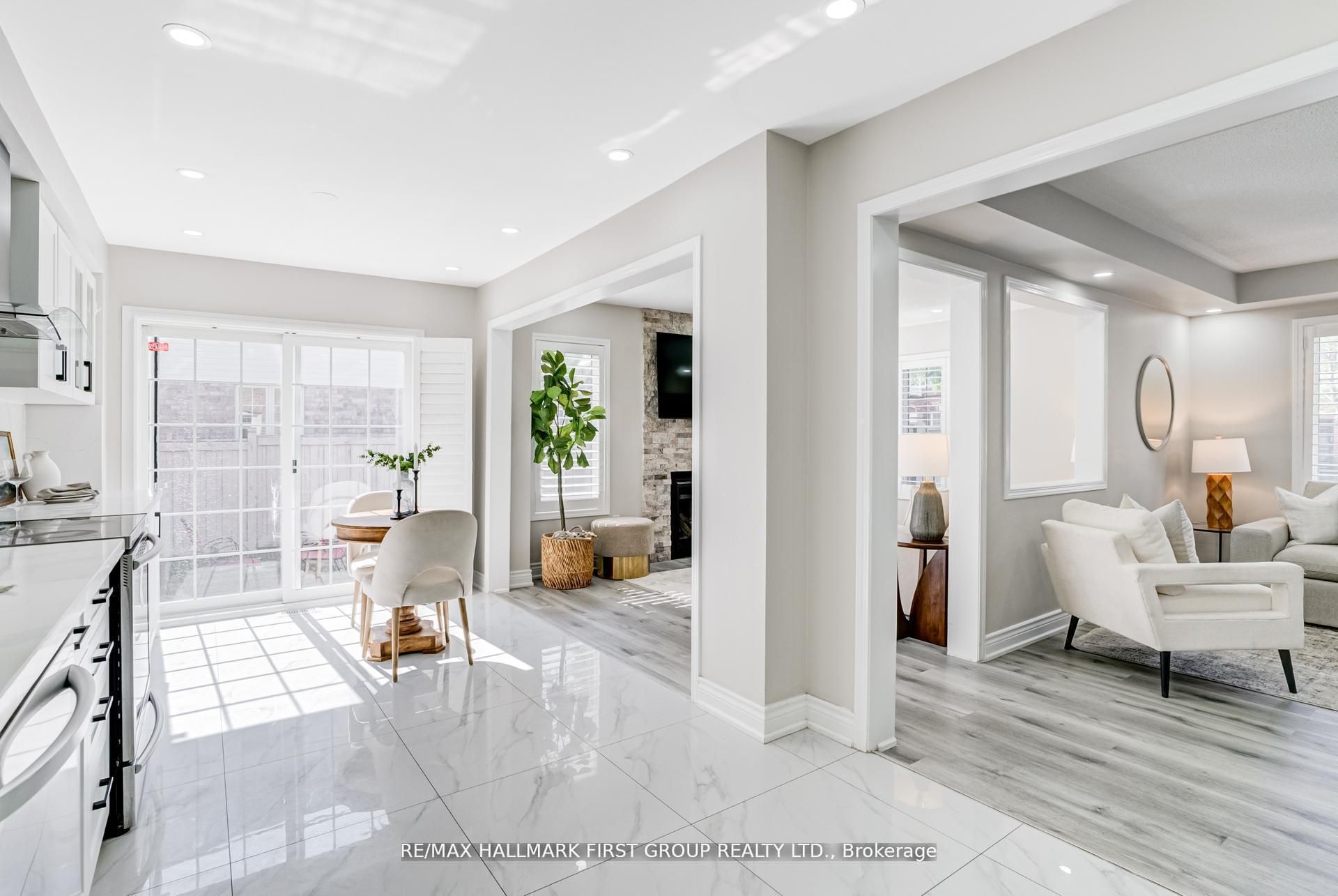 Stunning, light-filled all-brick 4+1 bedroom home situated on a premium corner lot in a highly desirable north ajax neighborhood. This beautifully renovated home offers a spacious (2075sq ft), open-concept layout with formal living and dining rooms, a custom feature wall in the family room w/ gas fireplace, luxury vinyl floors throughout, potlights, and california shutters. The large chefs kitchen is overlooking family room and completely upgraded w/custom soft closing cabinets, pantry, marble floors, quartz counter & backsplash w/ walk out to large yard. Oak staircase leads to 4 large bedrooms on second floor plus a den perfect for home office/study or media room. King size primary bedroom features huge walk in closet & 4 pc ensuite bath. Also convenient 2nd floor laundry makes for the perfect layout! The separate entrance from home to garage leads directly to the lower level which awaits your personalized touches. Fantastic family friendly location walking distance to top ranked schools, audley rec center, shops, bank, transit & deer creek golf. Extended interlocking allows 3 car parking. Furnace / ac - 2024