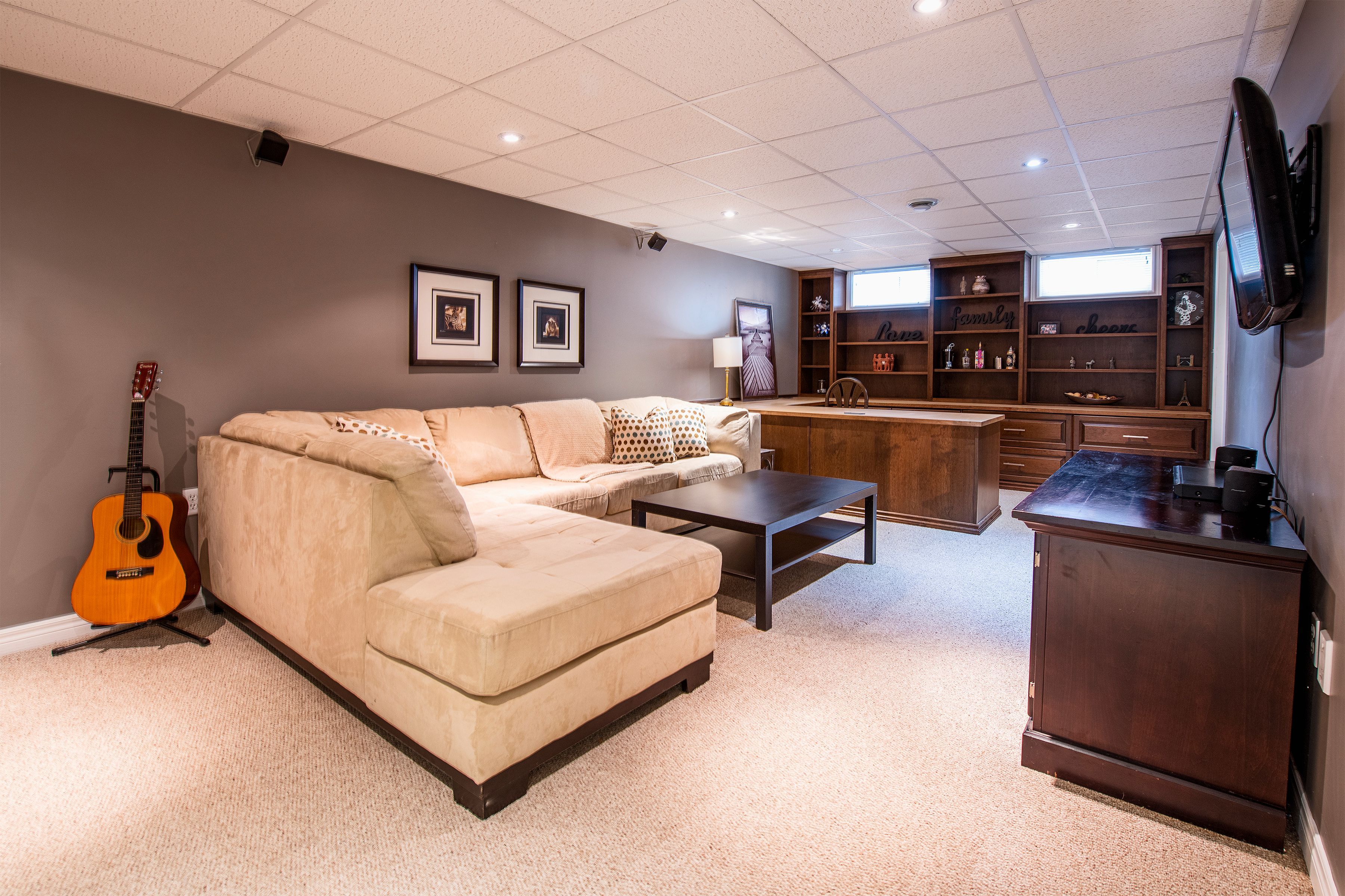 • Finished lower level with custom office and additional bedroom.