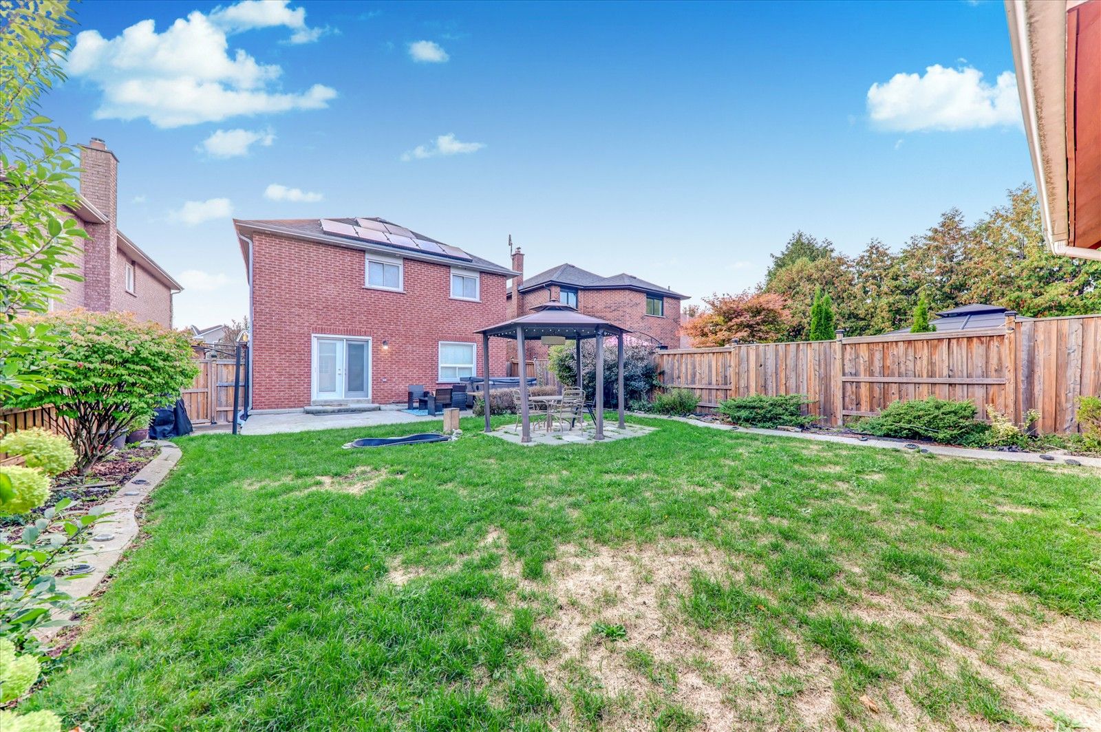 • Beautifully landscaped backyard with a stamped concrete patio and gazebo.