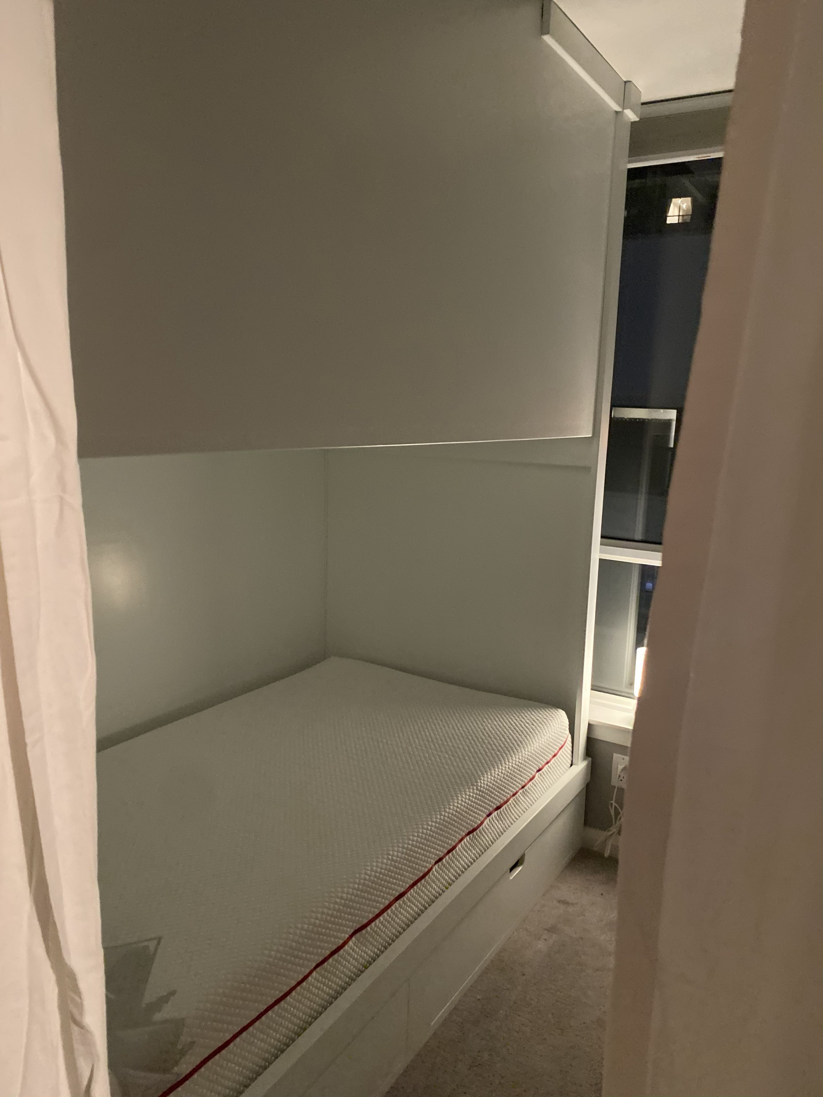 Modern and functional condo, perfectly suited for students. This smartly designed 1-bedroom unit features a versatile layout with a dividing wall that creates 2 built-in sleeping areas, offering privacy and flexibility. The open-concept kitchen includes a convenient breakfast area, ideal for casual dining or studying, and is complemented by ensuite laundry for added convenience. Located in a prime downtown setting, you'll enjoy easy access to transit, grocery stores, restaurants, and everyday essentials just steps from your door. A great opportunity for those seeking a practical and well-located space in the heart of the city.