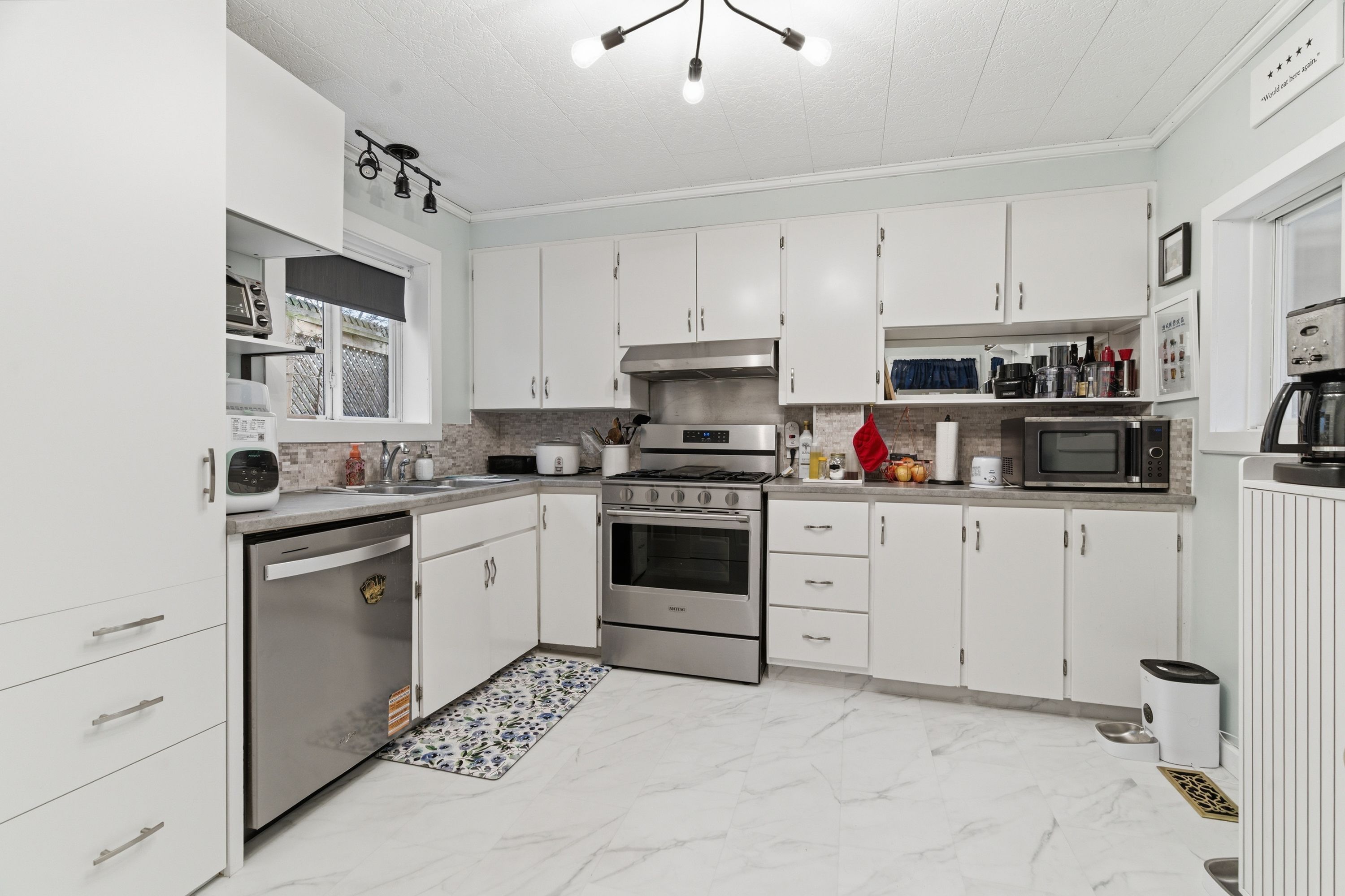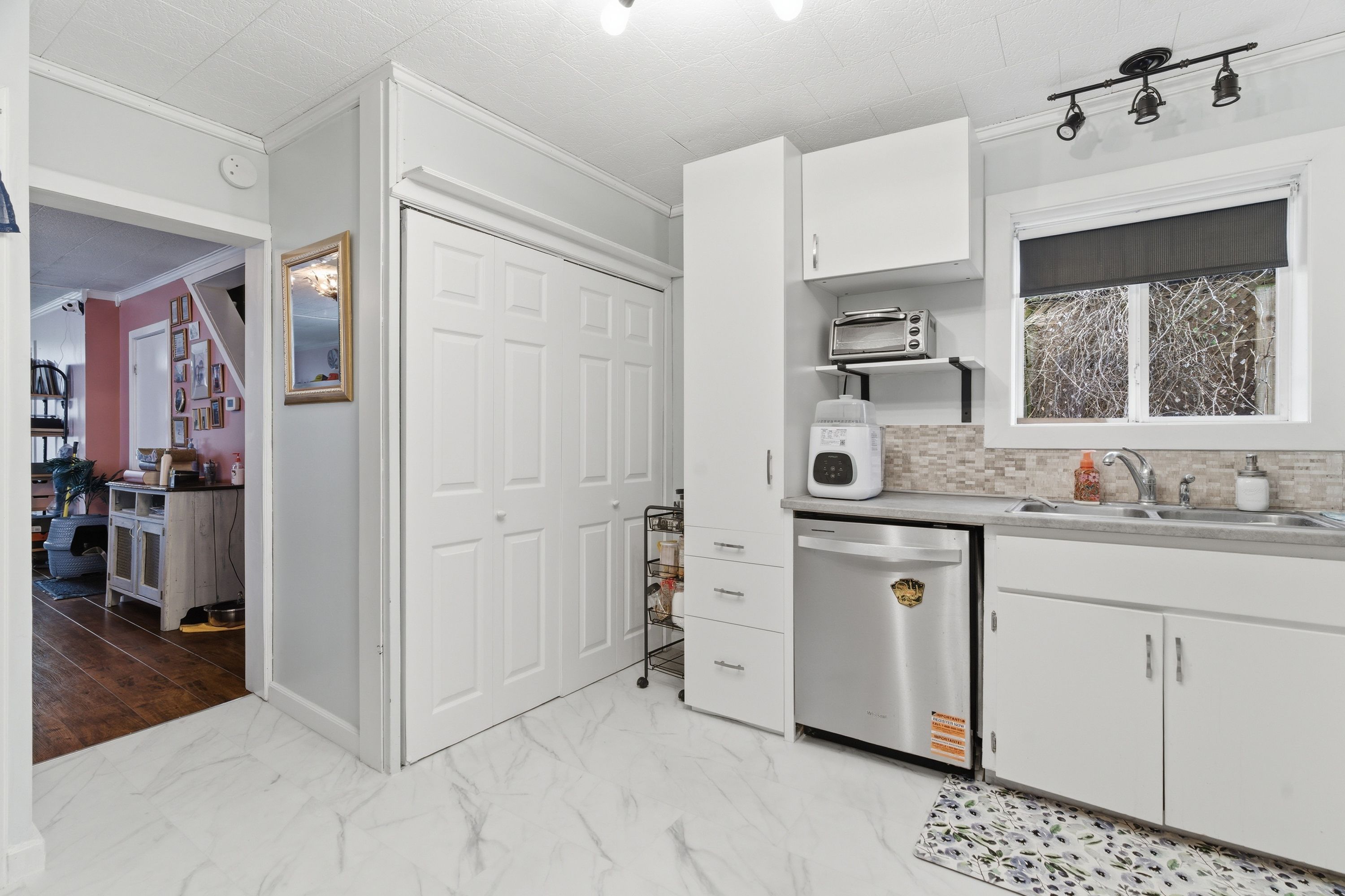 Welcome to this charming 2-bedroom, 2-bathroom home full of warmth and character, tucked away on a quiet street in the junction - a neighbourhood known for its strong sense of community and walkable access to local favourites. Inside, you'll find a bright open-concept living and dining space that blends classic charm with modern functionality. Perfect for entertaining, this inviting layout is ideal for everything from dinner parties, to game nights with friends, to cozy nights in. A recently added main floor full bathroom enhances the home's usability while respecting its original feel. The kitchen boasts some terrific new updates such as countertops, new dishwasher, fridge, gas stove, and range hood, as well as new flooring put down throughout almost the entirety of the home, all done between 2025 and 2026. The laundry is also conveniently located in the closet right off the kitchen. Upstairs offers two comfortable bedrooms and a spacious and bright 4-piece bathroom. The basement, albeit unfinished, adds to the home's character and provides excellent storage space, complete with updated mechanicals including a new furnace, water heater, and water softener. Outside, the property continues to impress with a detached single-car garage/shop, an attached carport, and a spacious driveway with parking for up to five vehicles - a great amount of parking spaces for homes in the area. Just a short walk to fixed gear brewing company, along with nearby parks, shops, and everyday amenities, this home offers a unique blend of charm, convenience, and lifestyle. A special opportunity to own a character-filled home in one of guelph's coolest neighbourhoods.