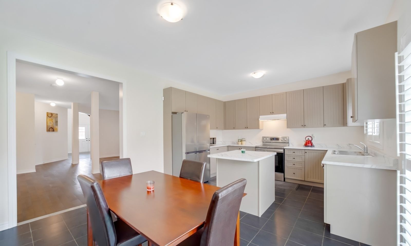 • Modern kitchen with stainless steel appliances and open concept design.