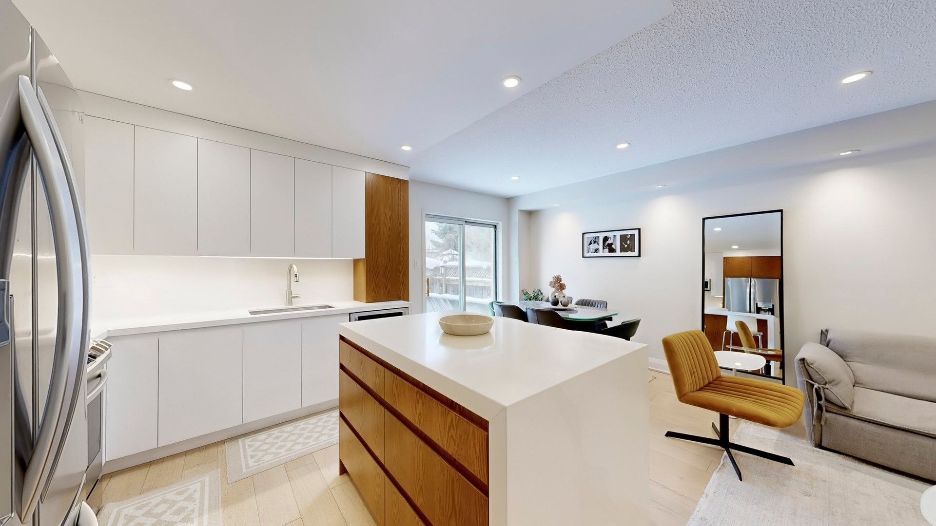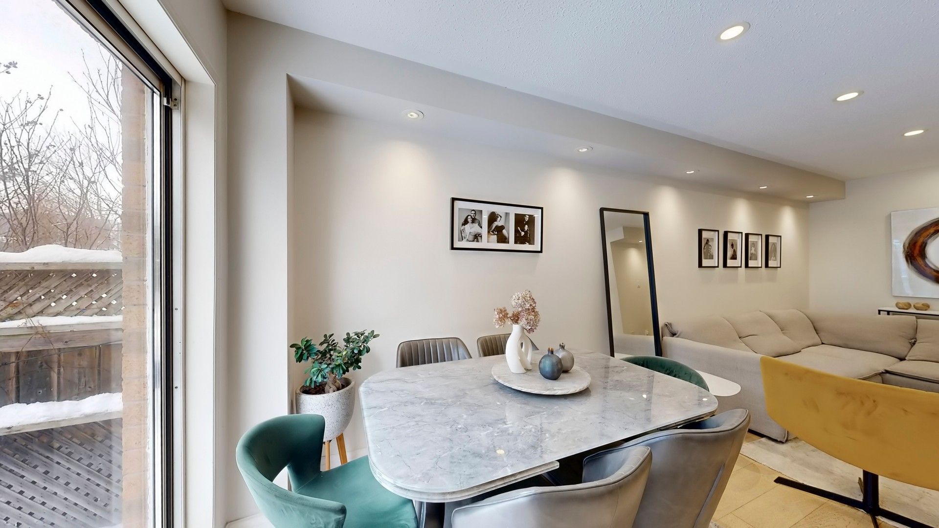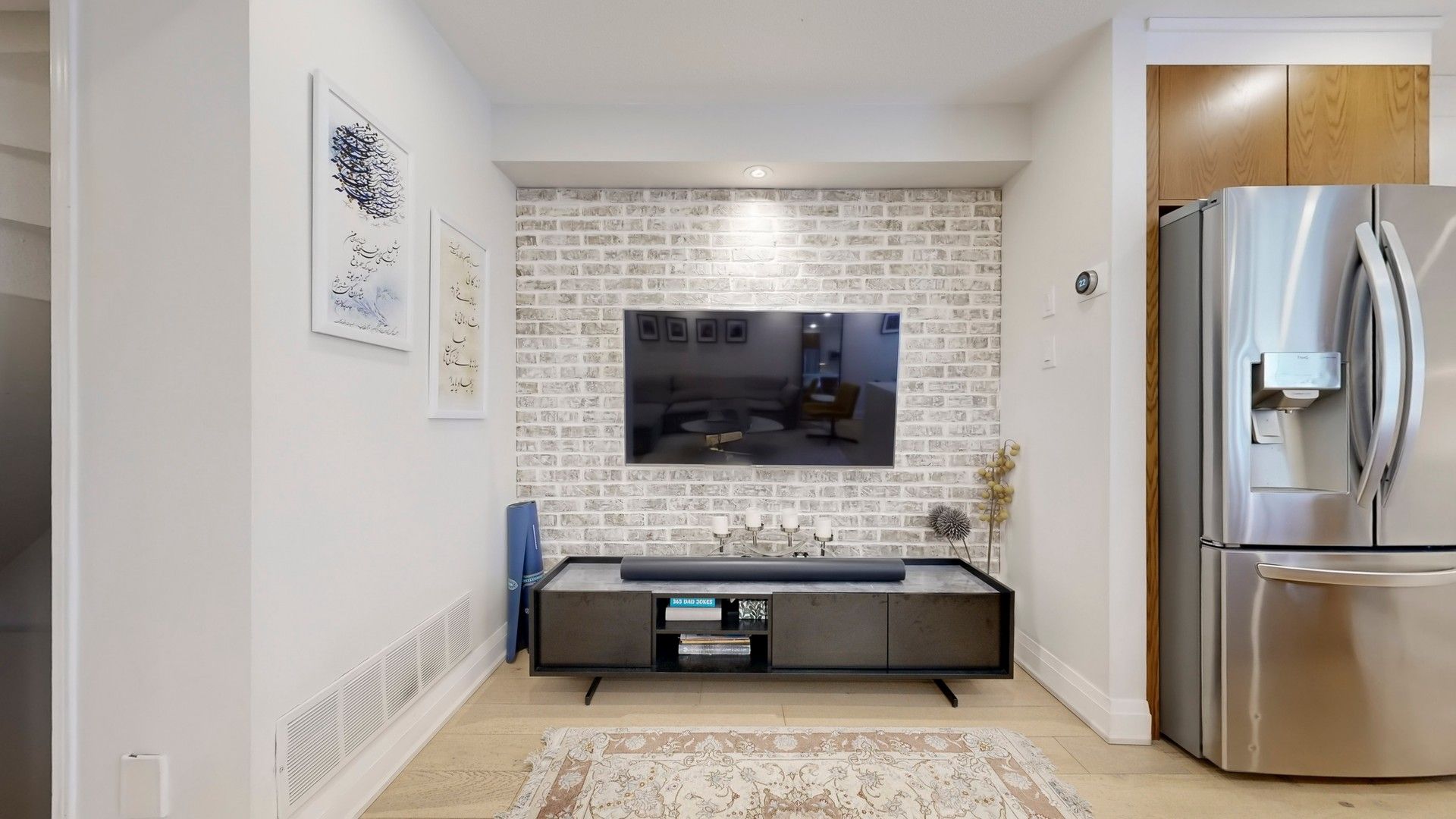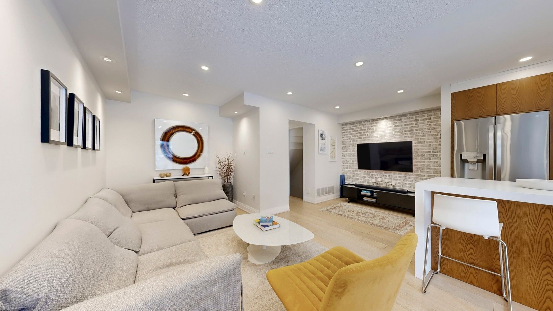 " la dolce vita" well-maintained and thoughtfully upgraded freehold townhouse in the heart of maple, offering exceptional value in a family-friendly community. This bright, south-facing home features a traditional two-story layout with a fully finished basement, 3 bedrooms, and 4 bathrooms. The open concept main floor includes a custom kitchen with extended-depth (16") cabinetry for added storage, a full-height quartz backsplash, and a double waterfall quartz island. Stainless steel appliances, integrated millwork, and spotlighting add both style and functionality. Wide-plank hardwood floors throughout, creating a clean, cohesive look. The living and dining area is highlighted by a handcrafted brick feature wall. The primary bedroom includes an in-unit closet and a private 3-piece en-suite. Enjoy a well-maintained backyard and mature landscaping. The finished basement provides additional flexible living space. Conventionally located near a park, high-ranking schools, shopping, community center, maple go station, and hwy 400. Dont miss it! Offers anytime.