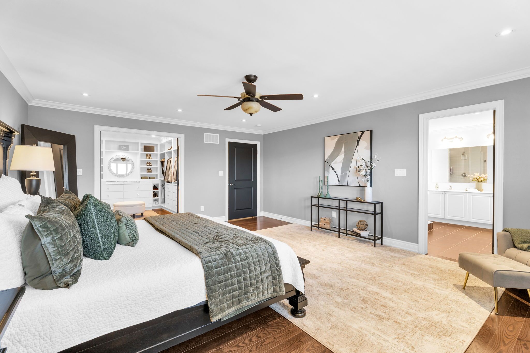• Spacious primary bedroom with luxurious walk-in closet and private ensuite.