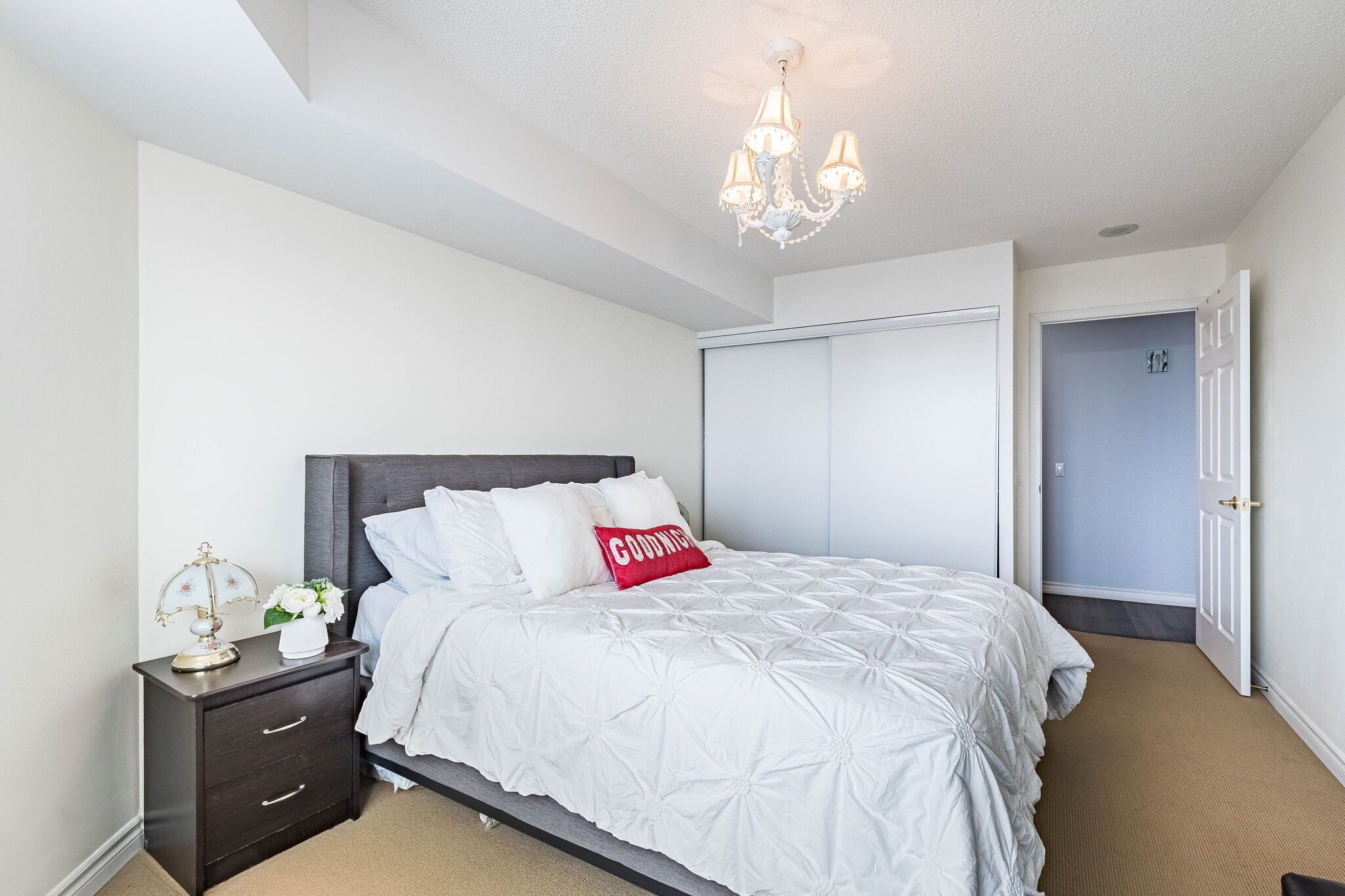 • Resort-style amenities include a pool, gym, and tennis courts.