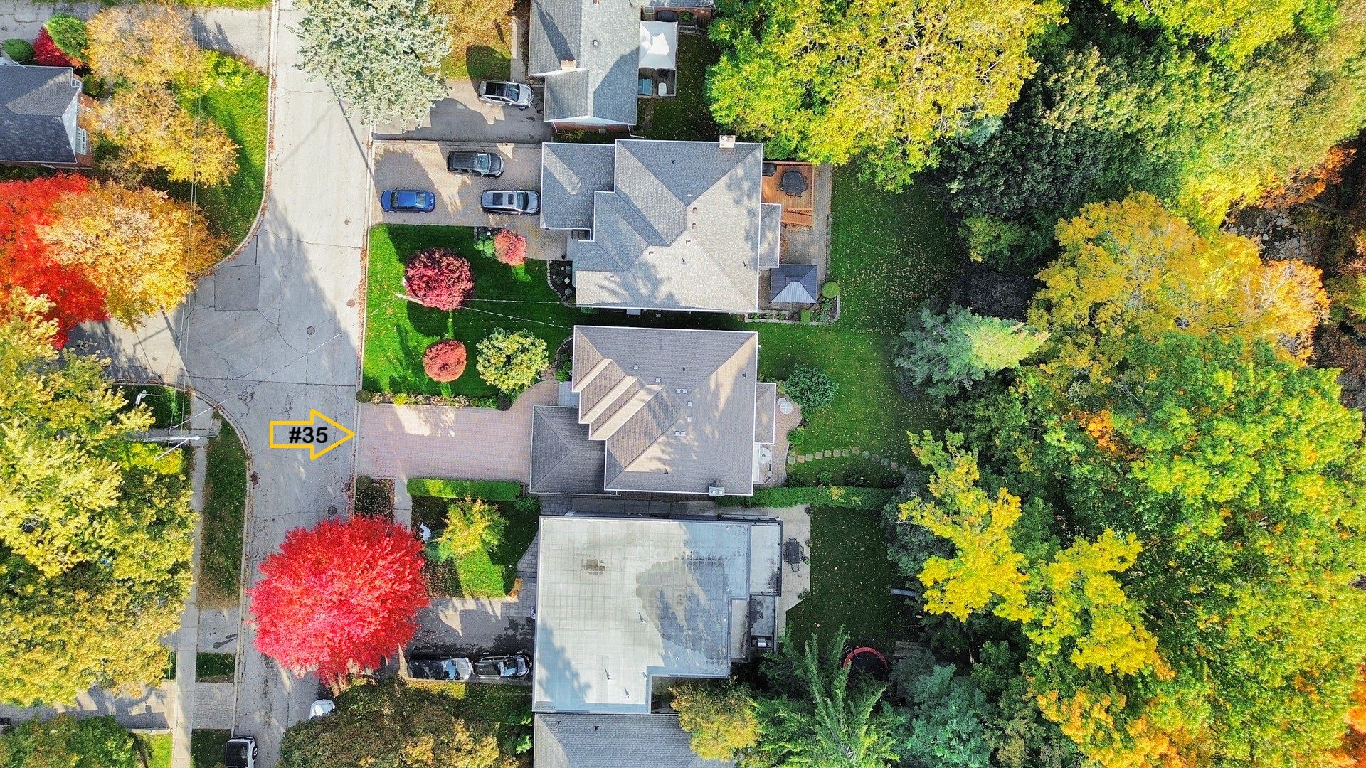 • Custom-built home on a ravine lot surrounded by trees and landscaping.