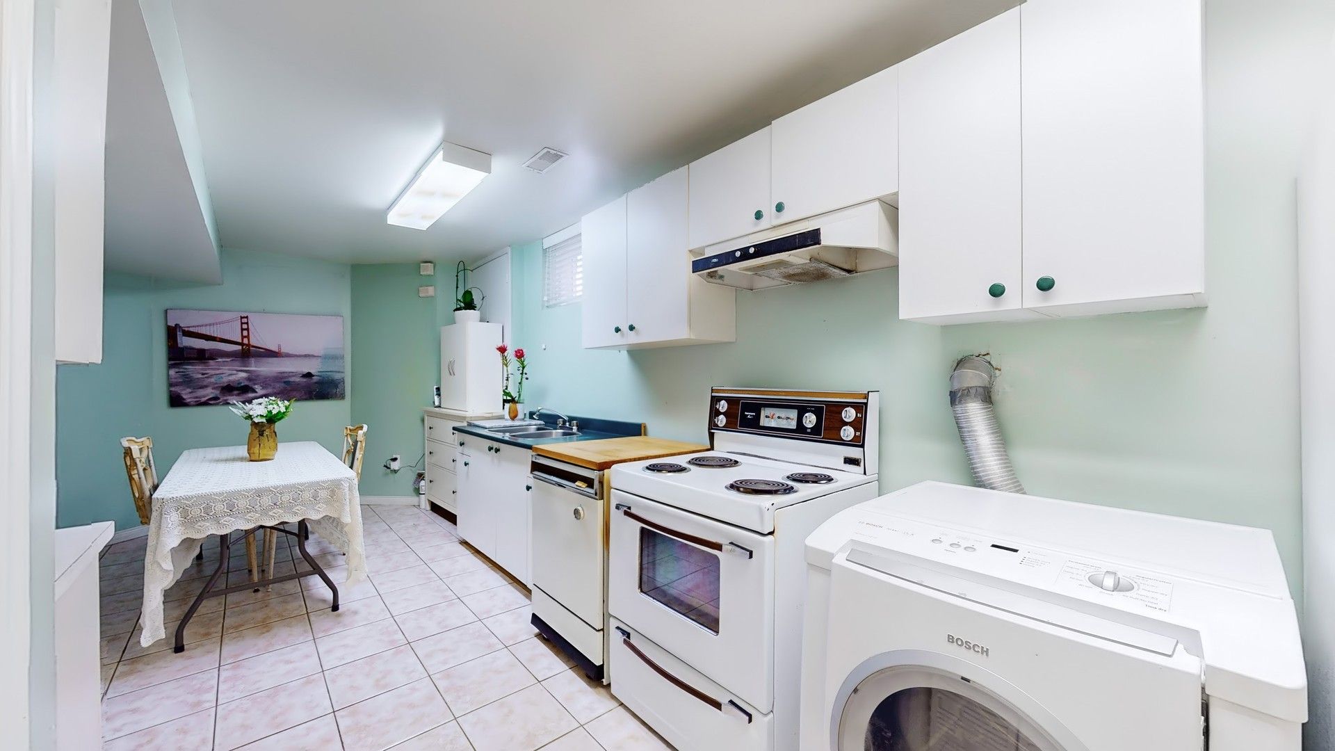 • Gourmet kitchen with granite countertops and oversized windows.