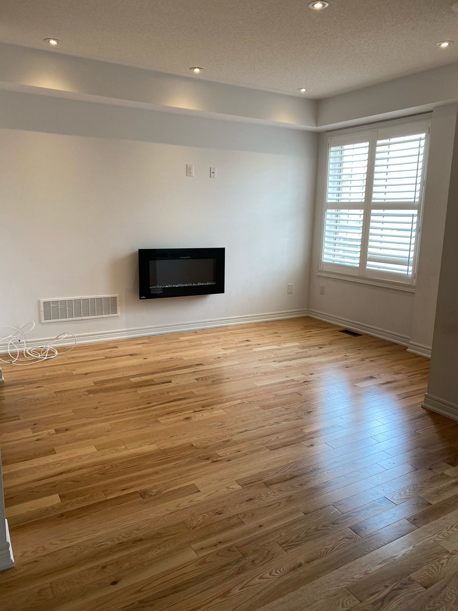 • Family room features an electric fireplace and pot lighting.