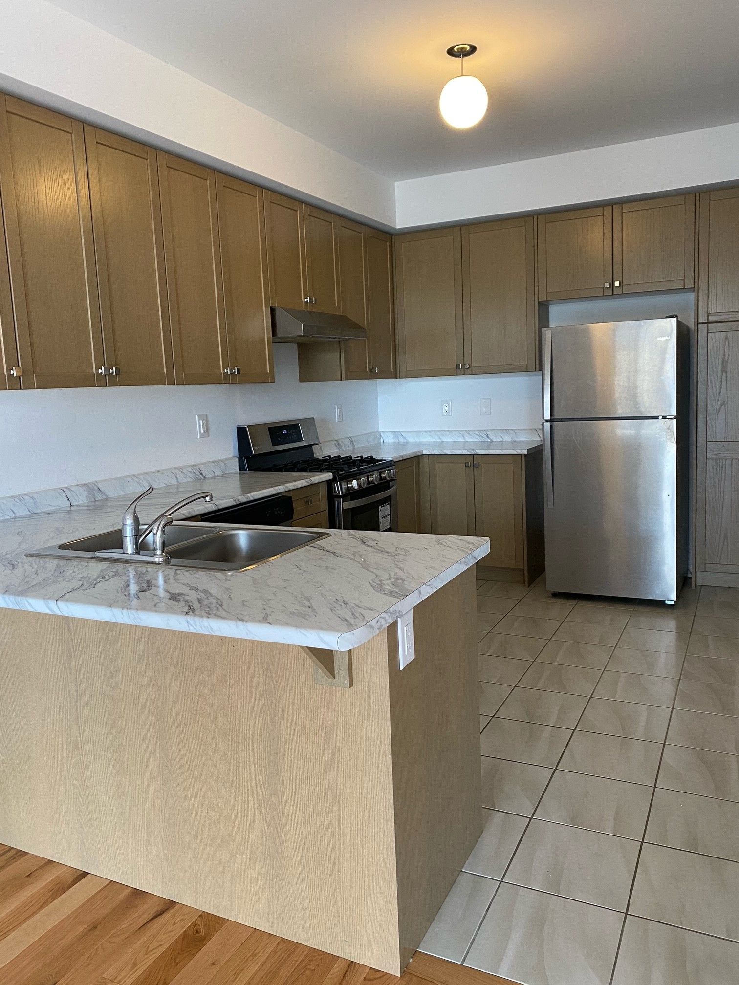 A lovely 3 bdrm home fully upgraded family home (1628 sqft as per mpac)"" impressive 9ft smooth ceiling on m/floor!! Fmly rm w/electric fireplace, pot lights!! Fully upgrd kitchen w/lot of storage space, st. Steel appliances!! Huge balcony from brkfst rm! Premium hrdwd flrs's thru out the home! Children's paradise carpet free home! Convenient 2nd flrhardwood staircase on all levels!