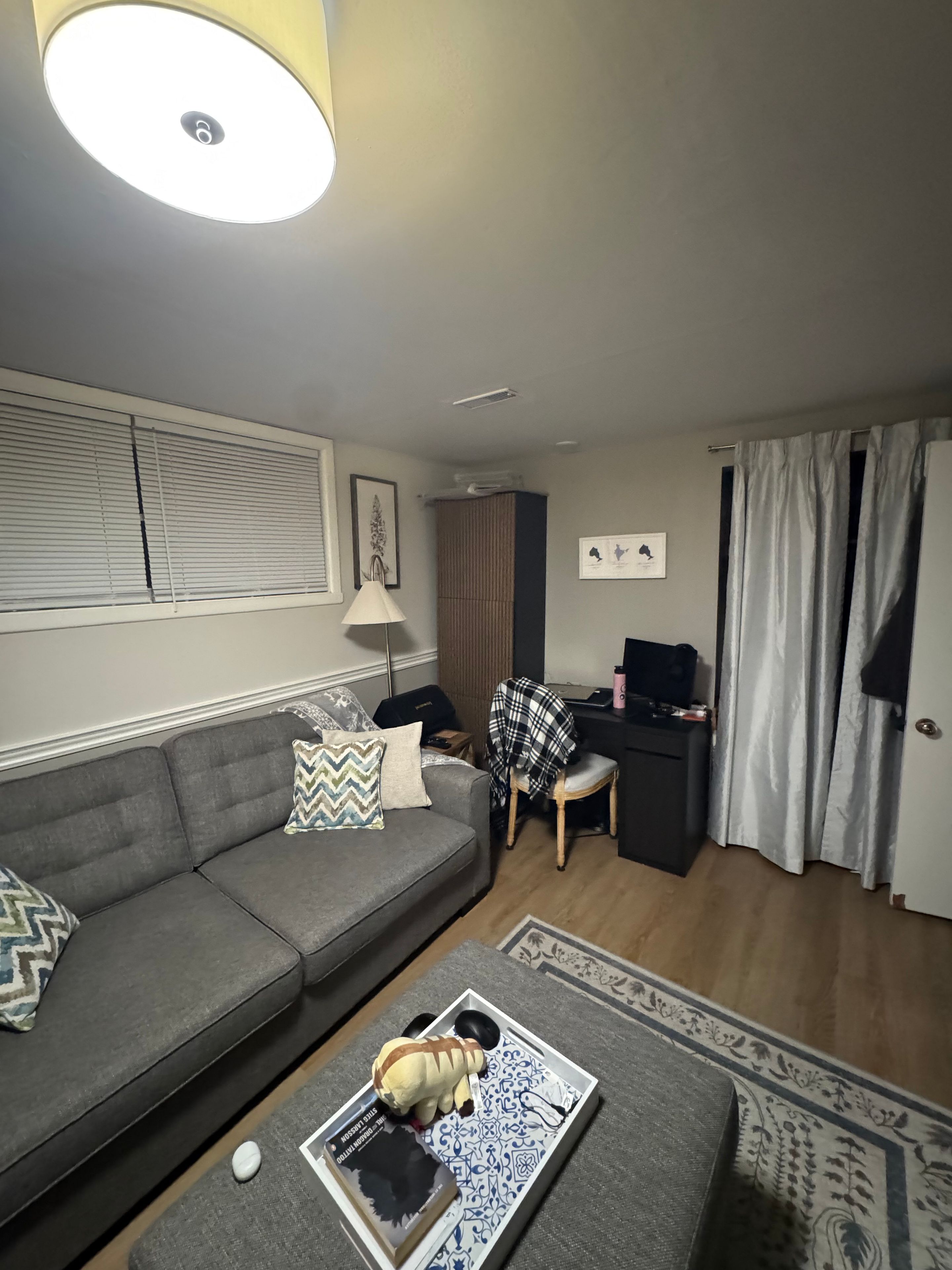 • Full kitchen with quartz countertops and essential appliances.