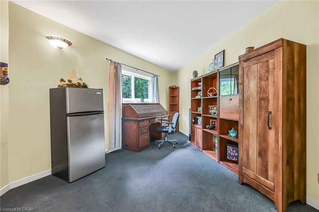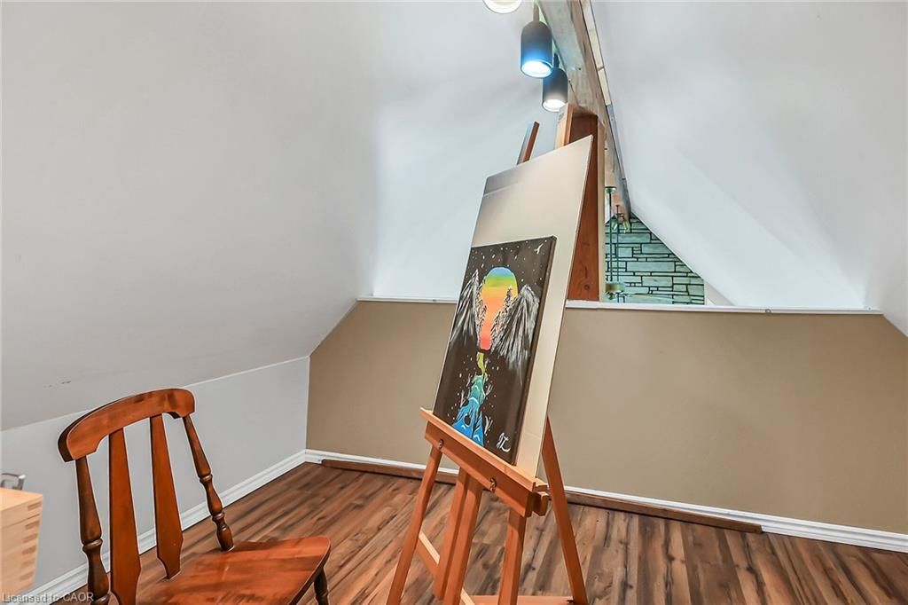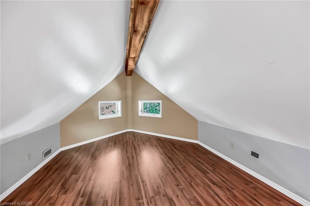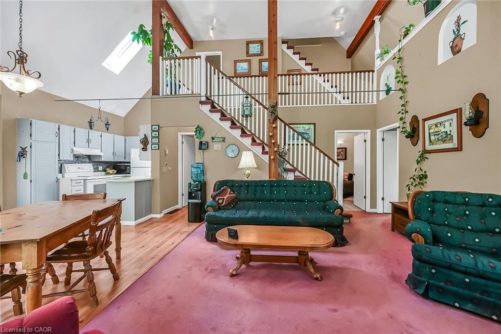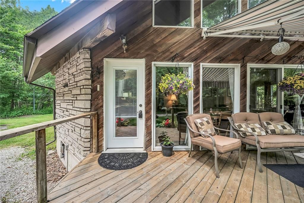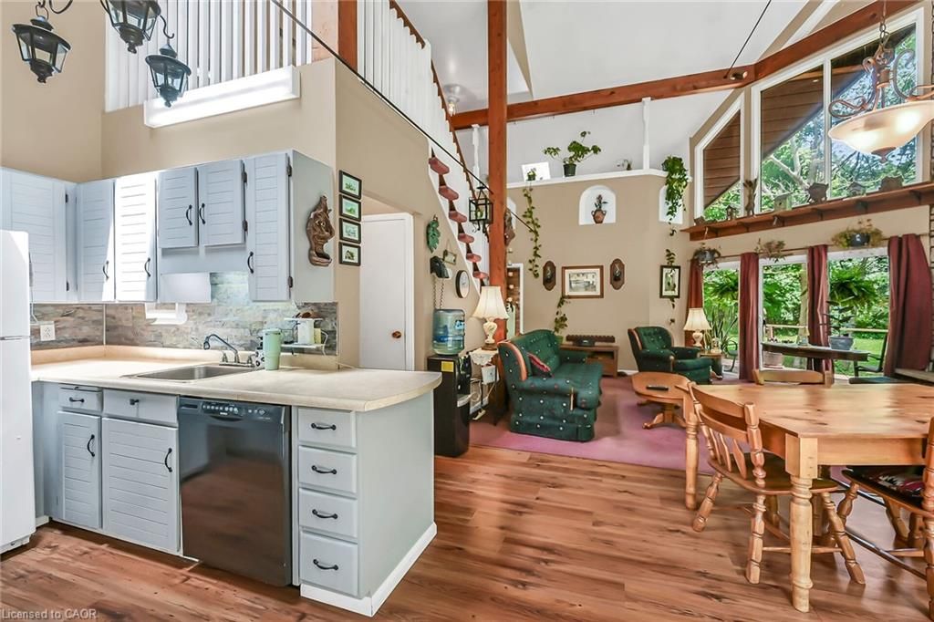 This picturesque property is a true retreat from city life. Experience natural privacy as you enter the winding driveway leading to a secluded 1-acre property that is frequented by deer, wild turkeys, rabbits, squirrels and various bird species. The sturdy chalet construction, with its harmonious blend of natural wood, angel-stone and expansive windows, invites the outdoors inside, creating an atmosphere that is both elegant and inviting. For hobbyists and mechanics, the property features a 24'x36' heated 3-car garage/workshop and a 10'x15' storage shed. The open concept main floor is highlighted by a soaring cathedral ceiling, a kitchen w/skylight and ample cabinetry, a dining area with garden door access to a wrap-around deck with awning, a sun-filled great rm w/sliding patio doors, and a 2-sided wood fireplace for both indoor and outdoor enjoyment. There are 2 spacious main floor bedrooms and a 4pc bath with cedar accent wall and an exterior door for bathroom access from the deck. The 2nd floor contains a primary 3rd bedroom, plus a home office area. The upper floor includes a potential 4th bedrm. The partially finished basement houses the laundry/utility rm and provides ample storage space. Notable amenities include a propane furnace, c/air, 15,000-gal cistern, septic system, and 200-amp hydro. Situated on a paved year- round road in a tranquil setting surrounded by a serene forest, vibrant perennial gardens, landscaped grounds, and a large driveway ideal for parking multiple vehicles and a boat/rv. This property appeals to outdoor enthusiasts and offers a cottage-like ambiance. You will be delighted by the 4-season beauty this property offers. Conveniently located near cayuga & dunnville, 30-60 min commutes to hamilton and niagara. With all the benefits of rural living and the convenience of nearby towns, 35 little rd, cayuga, truly stands apart as a sanctuary where cherished memories are just waiting to be made.