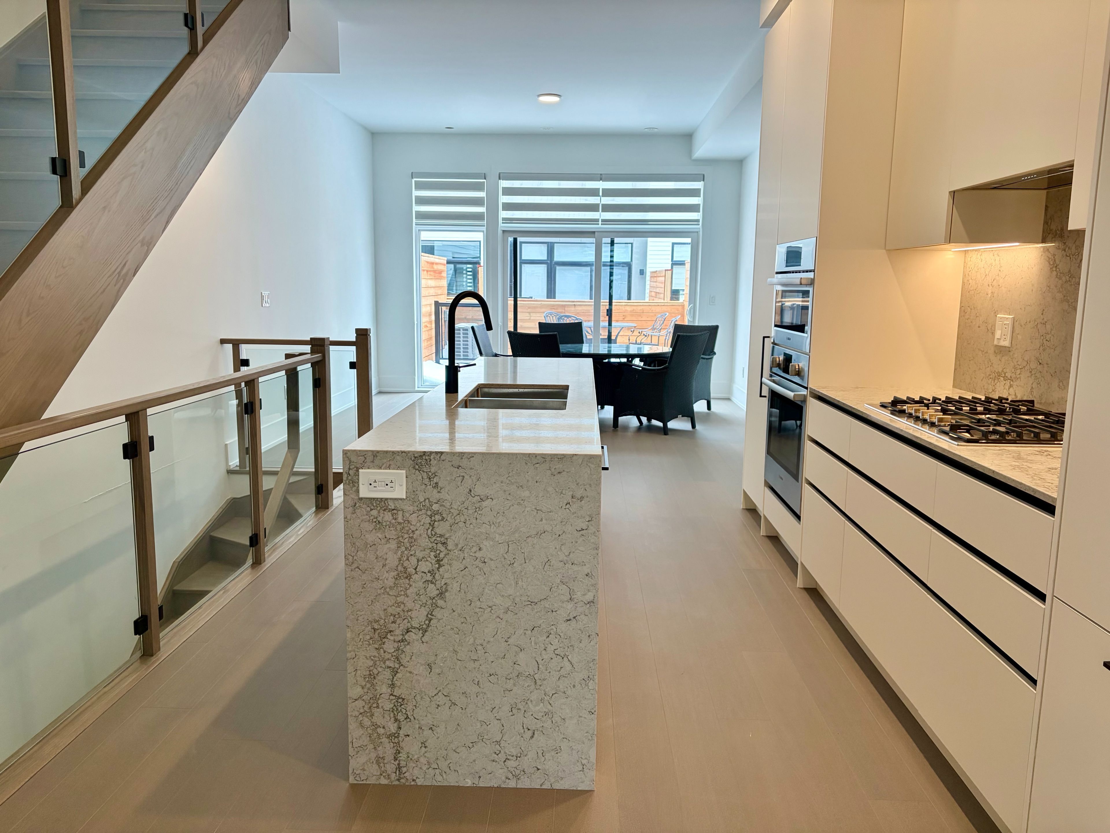 Lakeside luxury in this brand-new, never-lived-in 3-bedroom + den townhome in the heart of port credit. Step into a welcoming foyer with a convenient closet and powder room. The bright dining area flows seamlessly into a sleek, modern kitchen with quartz countertops, a waterfall-edge island, and high-end bosch appliances, including a 5-burner gas cooktop, built-in oven and microwave, integrated fridge, and dishwasher. The kitchen is further enhanced with a stainless-steel double sink with a matte black faucet, soft-close cabinetry, and many storages. The spacious living room opens onto a private terrace-perfect for entertaining. Upstairs, two generously sized bedrooms each offer their own ensuite bathrooms and large closets, while the primary suite bathroom with a freestanding tub, glass-enclosed tiled shower, and dual-sink vanity. The third floor offers a open space ideal for a home office or fitness area, leading to a private rooftop deck. This level also includes a third bedroom and a full bathroom, providing additional comfort and flexibility. It comes with a tandem garage and an extra outside covered pad to accommodate 3 cars total. This exceptional home is finished with premium features and thoughtful upgrades, including wide-plank hardwood floors, 10-foot ceilings, and oversized windows that fill the space with natural light. This home offers convenience and easy access to local shopping, including farm boy, lcbo, rexall, loblaws and more. Seize the opportunity and move in today!
