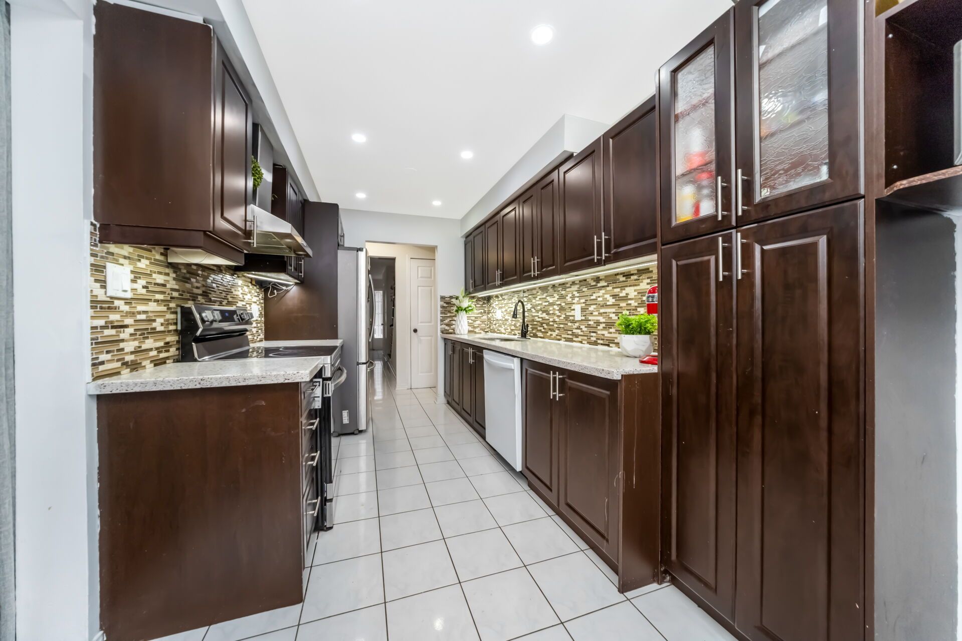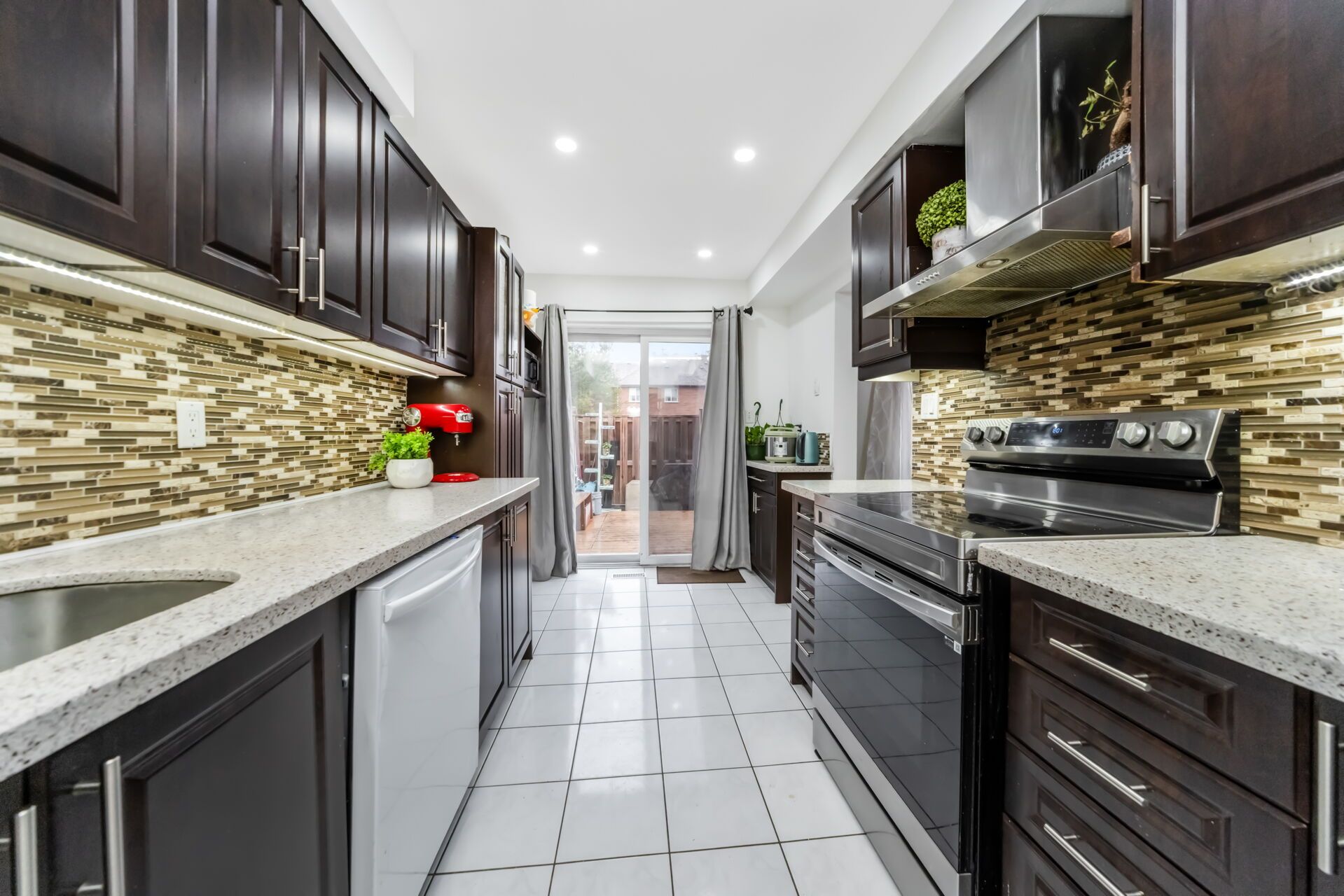 Beautiful, well-maintained townhouse located in the heart of the sought-after south fletcher's community. This upgraded home offers 3 spacious bedrooms and 4 modern bathrooms, perfect for families or investors alike, and features a finished basement ideal for entertainment. Step inside to a bright and inviting living room, complemented by a thoughtfully designed kitchen that opens onto a private backyard retreat-perfect for relaxing or entertaining while enjoying sunshine and nature. Renovations throughout the home provide a truly move-in-ready experience with stylish finishes in every corner. Upstairs, you'll find a generously sized primary bedroom complete with an ensuite bathroom, along with ample natural light flowing throughout the home. Well-maintained hardwood flooring and elegant stairs add warmth and character. Nestled within a quiet community away from main road noise, this home offers exceptional convenience-walk directly to one of the largest plazas in the area without crossing a single road. Located less than 5 minutes from the highway and within walking distance to multiple transit stops. Close to sheridan college and the upcoming hurontario lrt. Walking access to all essential amenities and more.