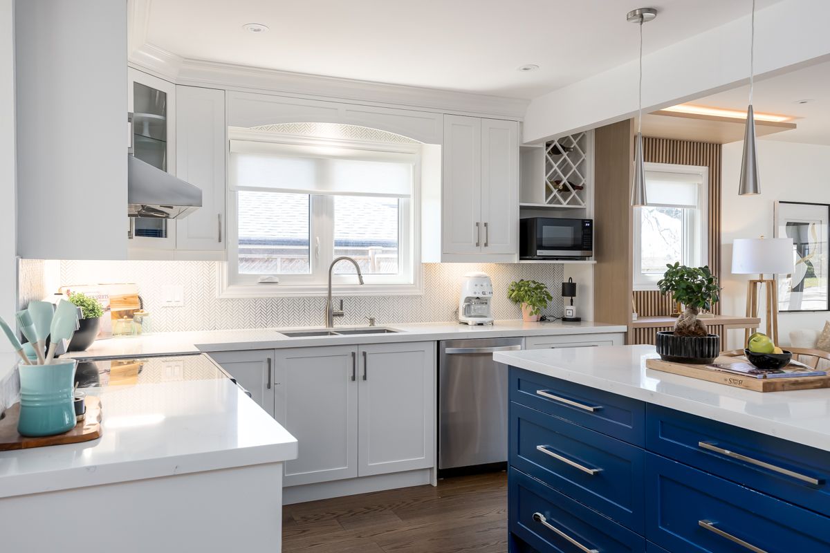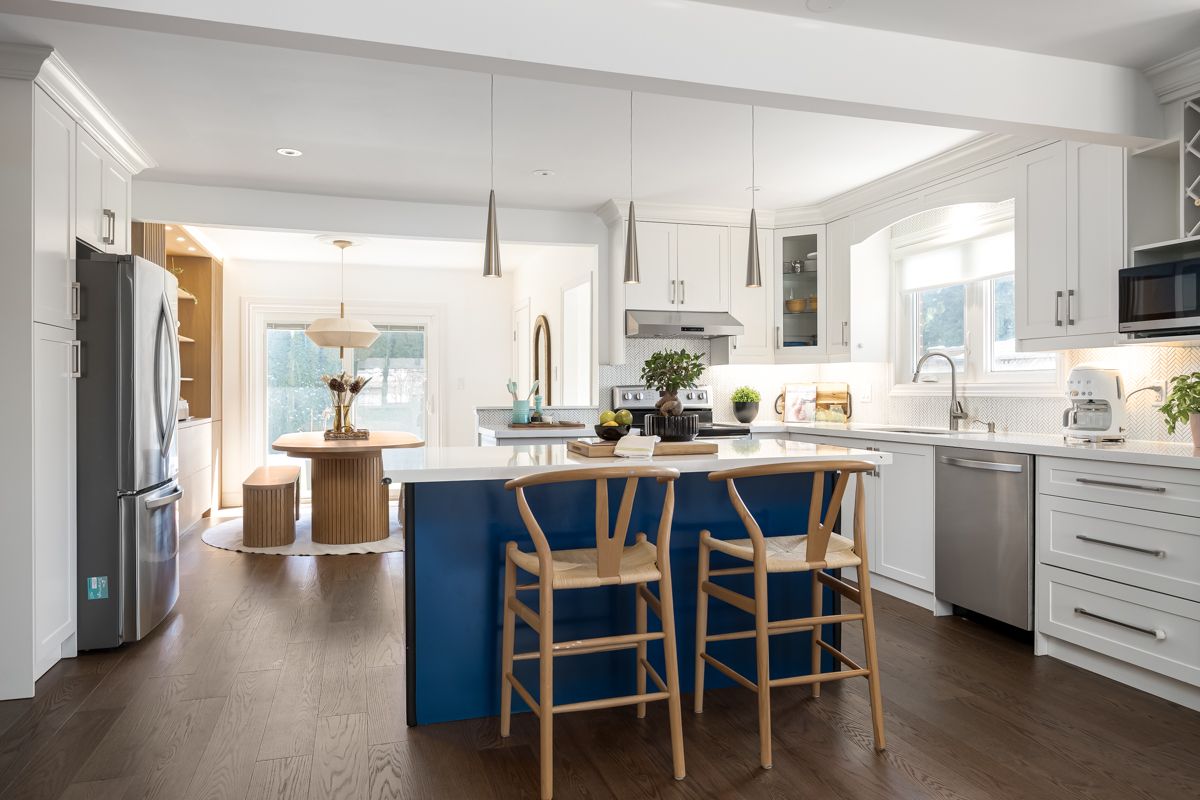 • Redesigned kitchen with modern appliances and a breakfast bar.