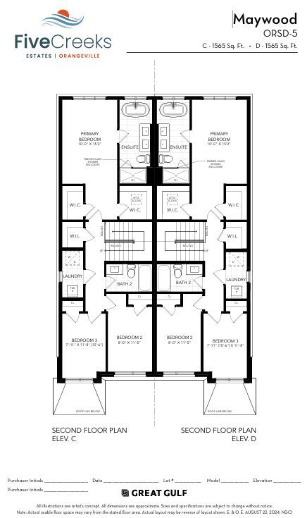 Offered by the builder. Welcome to five creeks by great gulf - orangeville's most exciting new master-planned community surrounded by parks, trails, and schools. This brand-new maywood semi(elevation d) blends style, comfort, and energy efficiency across 1,565 sq ft of bright, open-concept living. Enjoy 9-ft ceilings on main, triple-pane energy star windows, and a chef-inspired kitchen with quartz counters, designer cabinetry, and breakfast area perfect for entertaining. Upstairs, unwind in your private primary suite with his and hers walk-in closet and glass shower ensuite, alongside two spacious bedrooms and second-floor laundry. Thoughtfully upgraded with engineered hardwood, quartz vanities, freestanding tub, finished drywall garage, and rough-ins for ev charger, solar conduit, and basement bathroom. Built by one of canada's most trusted builders, this home includes 200 amp service, hrv system, and full tarion warranty for peace of mind. Nestled within the five creeks community - minutes to shops, schools, and major routes(highways 9 & 10) - this home delivers modern design, lasting quality, and the lifestyle your family deserves. All offers on builder forms. Please contact agent for for details and builder forms. Finished basement available.