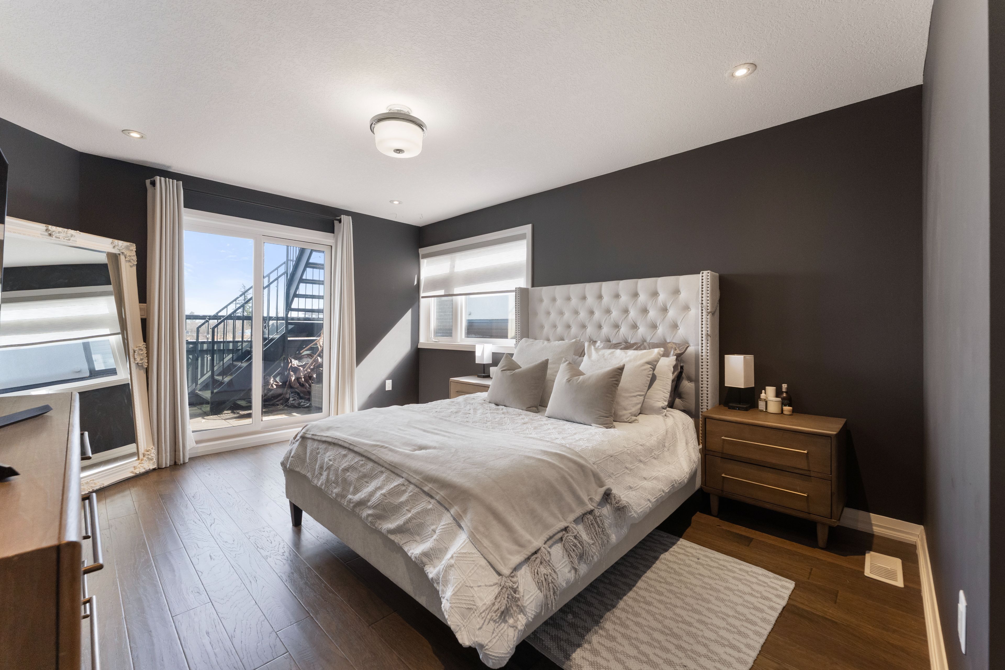 Welcome to this beautifully maintained end-unit 3+1 bedroom, 4 bathroom townhome with a private rooftop terrace in the highly desirable stoney creek mountain community. The main floor offers a bright open-concept living and dining area filled with natural light, ideal for everyday living and entertaining. Upstairs features three generously sized bedrooms and a versatile loft space currently styled as a cozy library, easily adaptable as a home office or lounge area. The primary bedroom includes a custom closet installed in 2021 and direct walk-out access to a private patio that leads to the rooftop terrace above. The finished basement adds valuable living space with a fourth bedroom and full bathroom, currently set up as a home gym and easily adaptable as a guest suite, playroom, or media room. Enjoy the private rooftop terrace - a perfect space for relaxing or entertaining. Additional updates include custom window coverings, a privacy fence, and a remote garage opener installed in 2021. Parking for two vehicles with a private garage and driveway. Ideally located minutes from the new confederation go station with quick access to the qew, red hill valley parkway, and lincoln alexander parkway. Move-in ready and offering exceptional value in today's market.