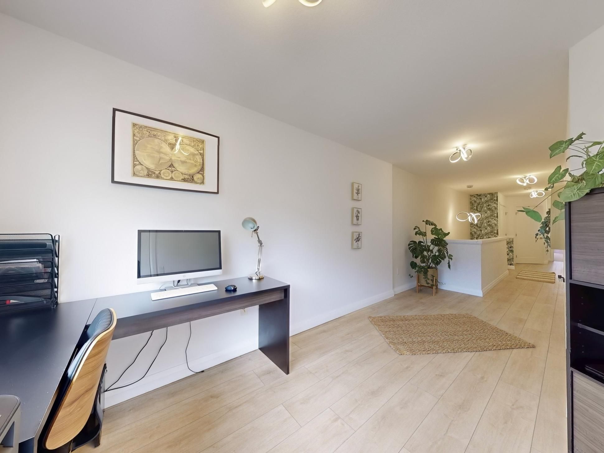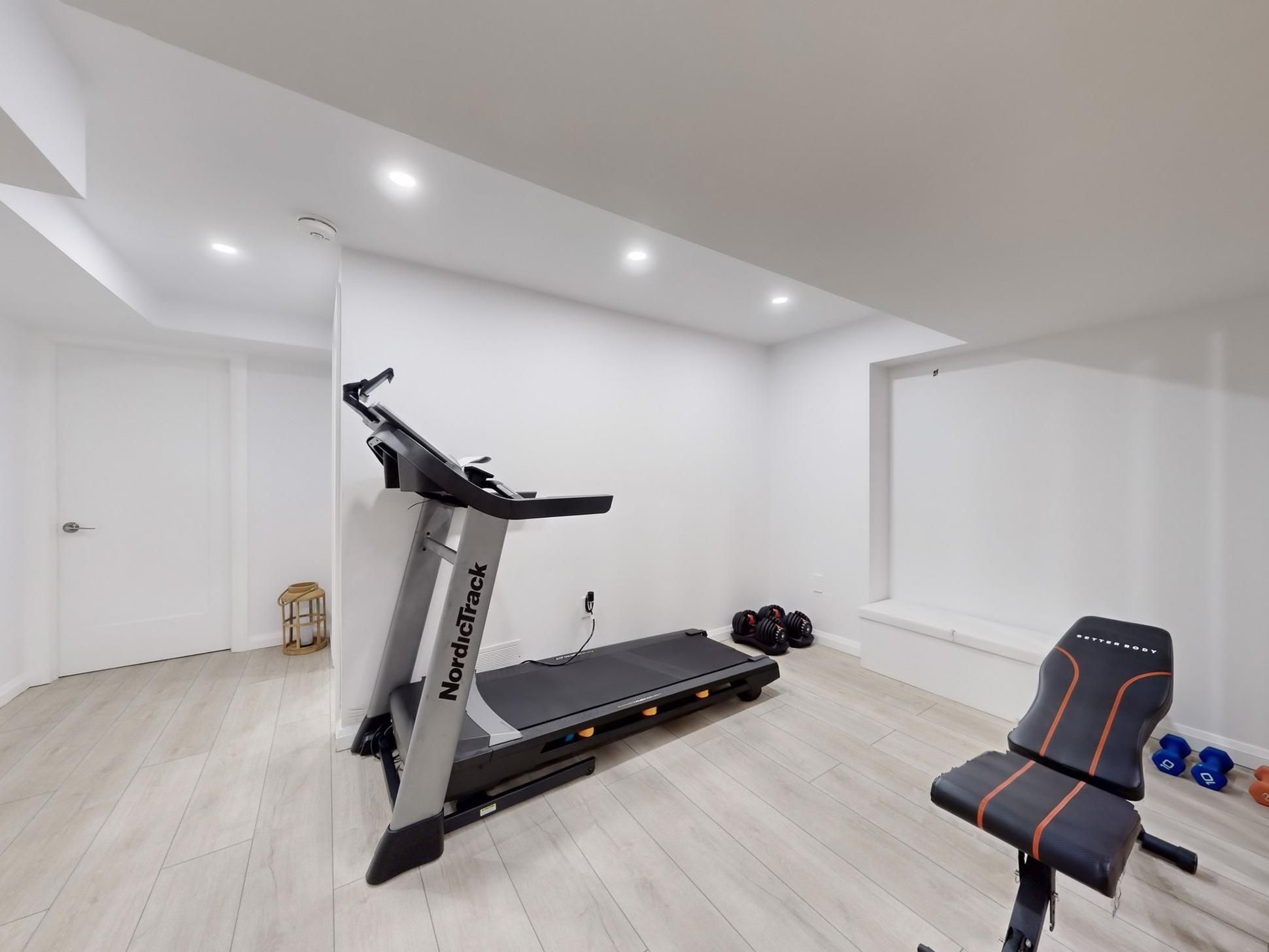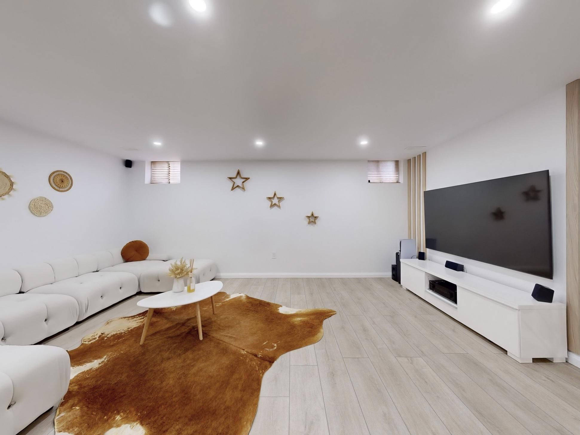 This exquisite executive townhome features 3 bedrooms and 4 bathrooms, combining modern luxury with functionality. The main floor offers an open-concept living area bathed in natural light. Elegant finishes throughout include a tv custom-built stone wall with an electric fireplace, 9-foot ceilings, pot lights, modern light fixtures, heavy duty vinyl flooring on all three levels, expansive wall-to-wall windows on main floor and a floating staircase that adds a dramatic touch. The gourmet kitchen is a chef's dream, boasting a large island with quartz countertops, newer high-end appliances, double oven/air fryer, and plenty of storage. A mudroom provides easy access from the garage. On the second floor, the spacious office can easily be converted into an additional bedroom if needed. The master suite is a true retreat, complete with a spa-like ensuite featuring a walk-in shower, a generous walk-in closet, and direct access to the 240 sq. Ft. Rooftop terrace, offering breathtaking views. A conveniently located second-floor laundry room completes this level. The fully finished basement adds even more living space, with a rec room, gym, full bathroom and a large storage room. The private backyard, overlooking a serene ravine, is perfect for relaxation and entertaining, with a large patio, a hot tub and green space. With countless upgrades throughout, this home is truly a must-see!