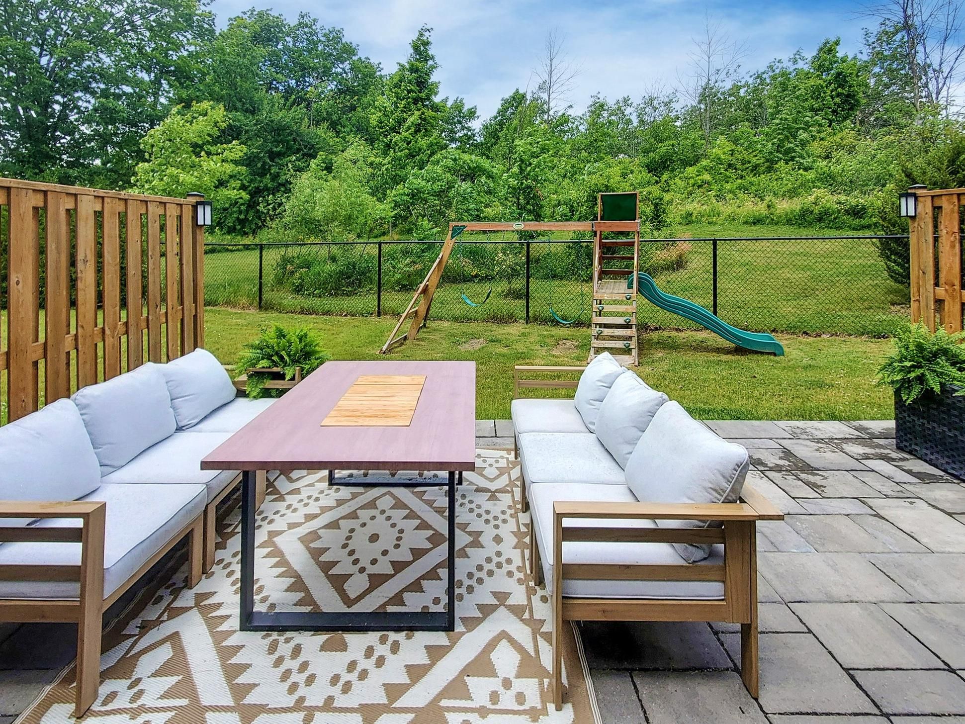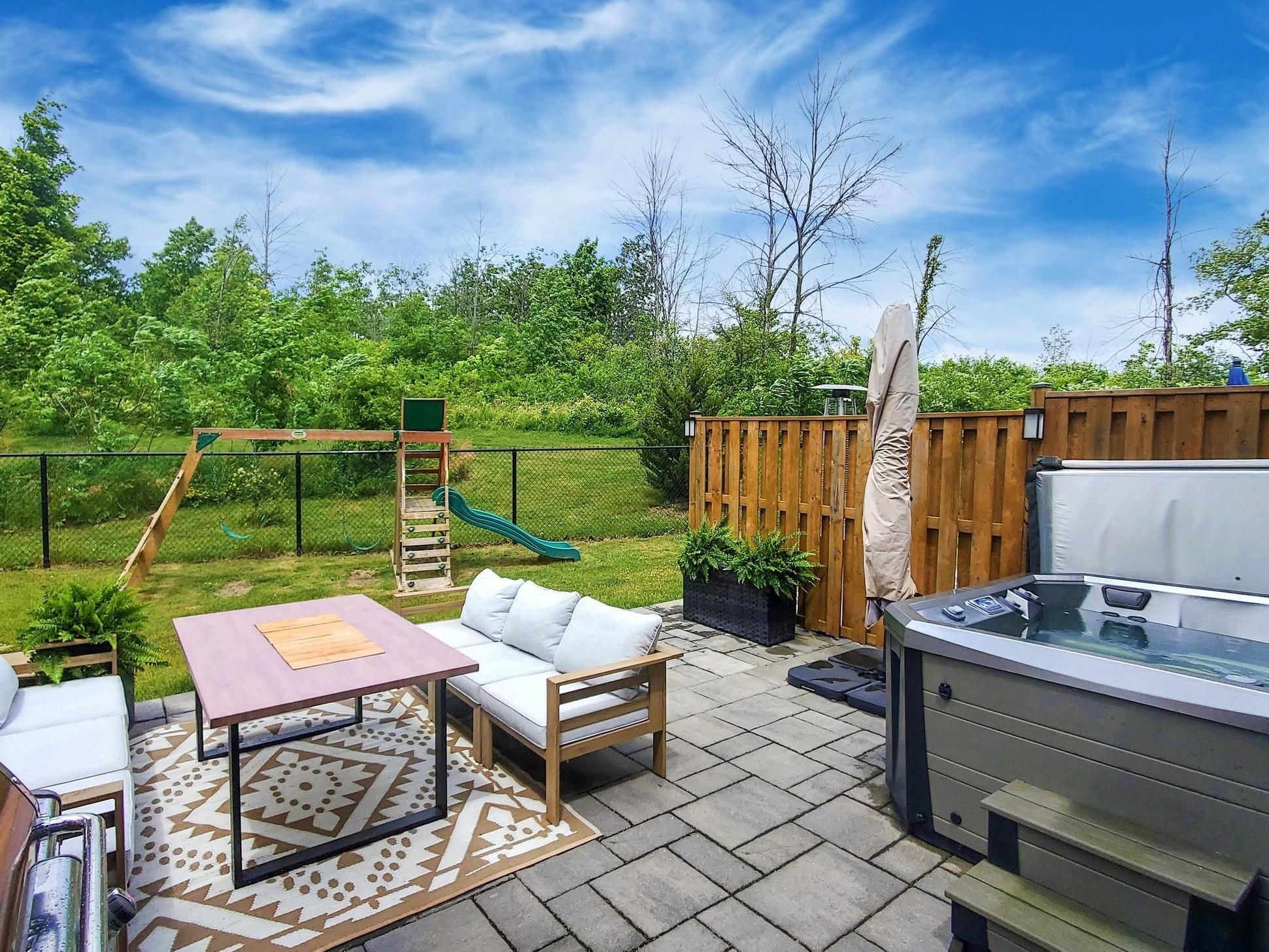• Private backyard with patio, hot tub, and views of a quiet ravine.