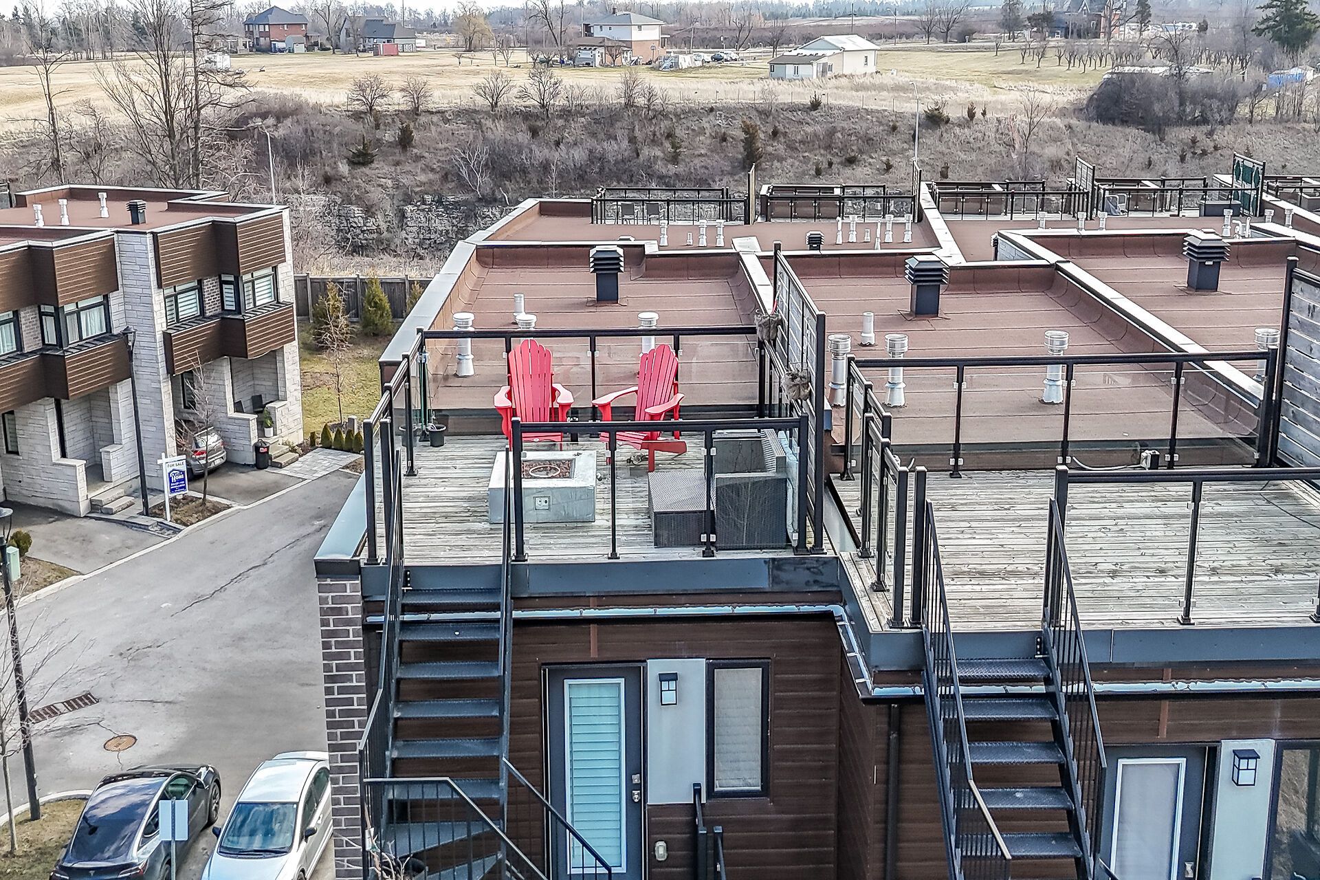 Stunning luxury end unit townhome in the exclusive "fallingwaters" community masterfully designed by losani homes. This exquisitely finished home featuresd 2 bedrooms, 3 bathrooms, walk out basement with patio area, & 4 private balconies including impressive rooftop terrace showcasing beautiful views overlooking the escarpment. Great curb appeal with stone, brick, & complimenting sided exterior, paved driveway, attached garage, & private back & side yards. The modern interior is highlighted by designer eat in kitchen with quartz countertops & eat at island, dining area, 9 ft mf ceilings, & bright living room. The upper level includes bedroom level laundry, primary 4 pc bathroom, & 2 bedrooms featuring primary suite with walk in closet, 3 pc ensuite, & private balcony. The walk out basement provides rec room & garage access. Conveniently located close to amenities, schools, parks, & easy access to qew, red hill, & gta. Ideal for the first time buyer, professional, or investment!