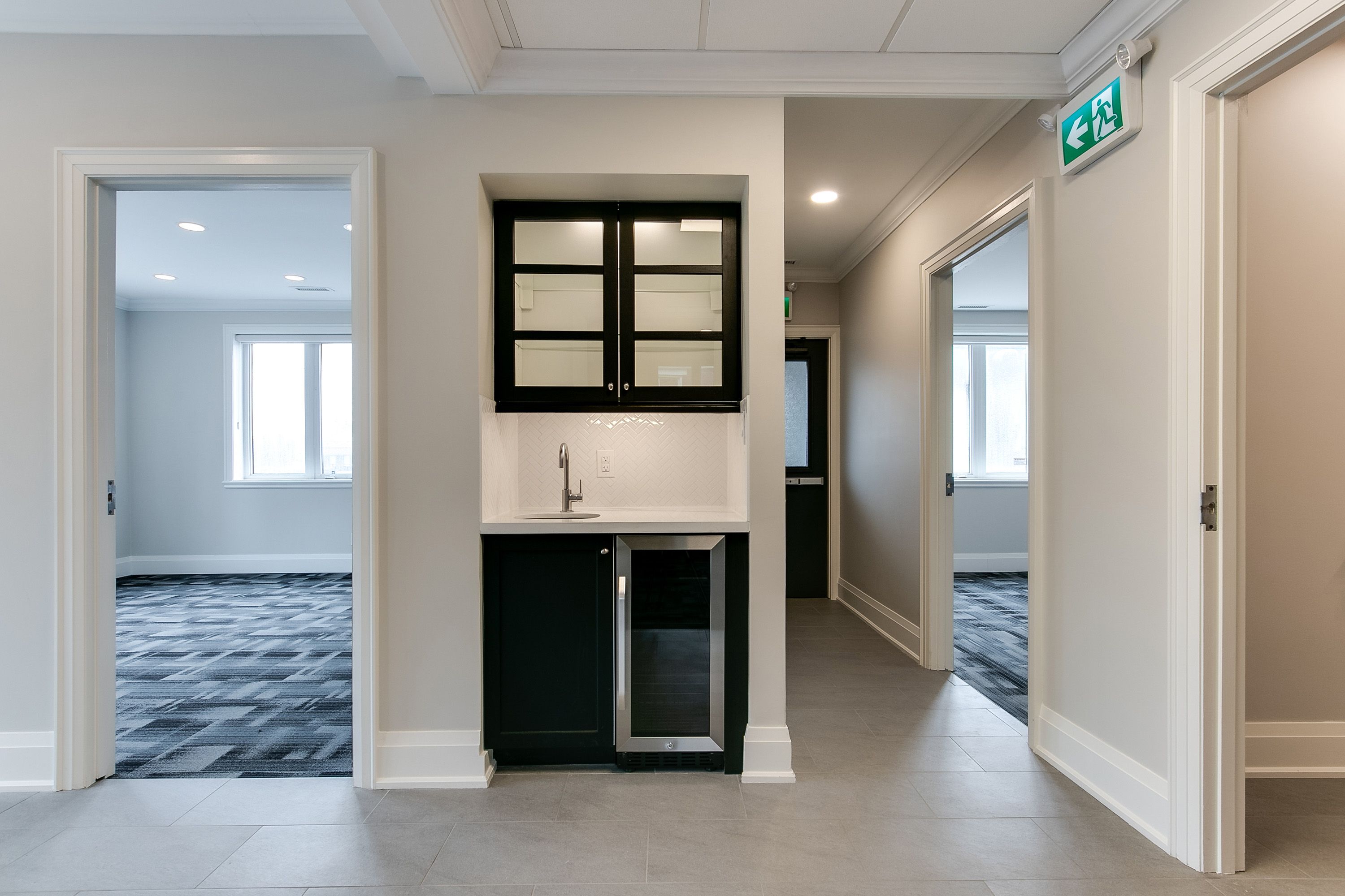 • Four luxury offices along with a convenient bathroom and beverage bar.
