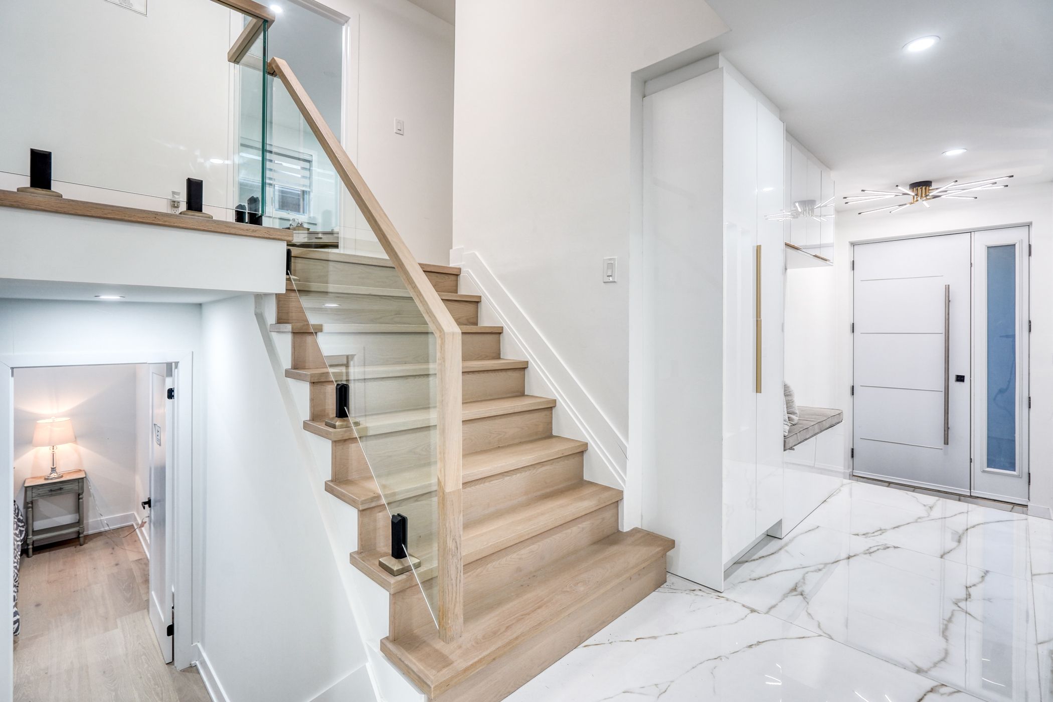 Welcome to this luxurious 4 bedrooms home with a legal basement apartment, and a potential versatile studio in one of east york's top neighborhoods. Total living space 2,500-3,000 sq ft. This property is ideal for both families and investors. Whether you're looking for a multi-family investment or a spacious family home, this property offers incredible flexibility. The home has been newly renovated, featuring new roof, insulation, a new garage door, and a refinished fence. Inside, enjoy new electrical and plumbing systems, new energy-efficient windows and doors, and new custom kitchens with built-in organizers and high-end materials. New appliances complete the space, making it both stylish and functional. The home is beautifully finished with new hardwood flooring and large tiles throughout, creating a modern, seamless feel. Glass railings on the porch and staircase add a contemporary touch. With a new furnace, new hot water heater, and new air conditioner, you'll experience year-round comfort and efficiency. Sleek pot lights and modern lighting fixtures brighten the interior, while the home's flexible layout allows for use as a single-family residence or separate units. The new and legal basement apartment offers rental income potential, and the studio can either be part of the main home or rented separately for additional revenue or personal workspace. Outside, the new yard includes new aggregate concrete, professional landscaping, a built-in fire pit, and a new sprinkler system to maintain a lush, green space. The exterior features new high-end lighting, enhancing the homes curb appeal day and night. This exceptional detached, side-split property combines modern luxury with flexible living arrangements in a prime east york location. Perfect for families or investors, this home is a must-see!