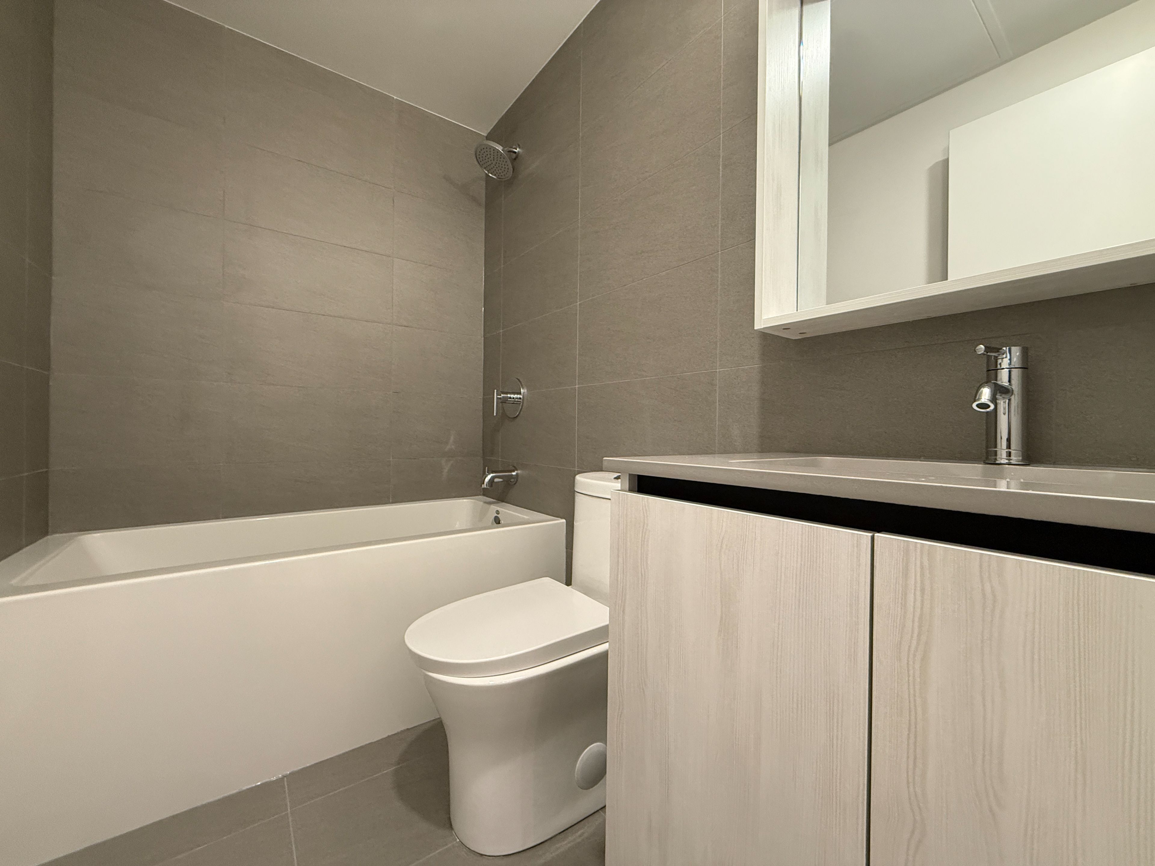 This brand new 1 bed + den unit has a bright and modern suite in the heart of the distillery district. Functional layout with quality finishes and steps to shops, dining, and transit.