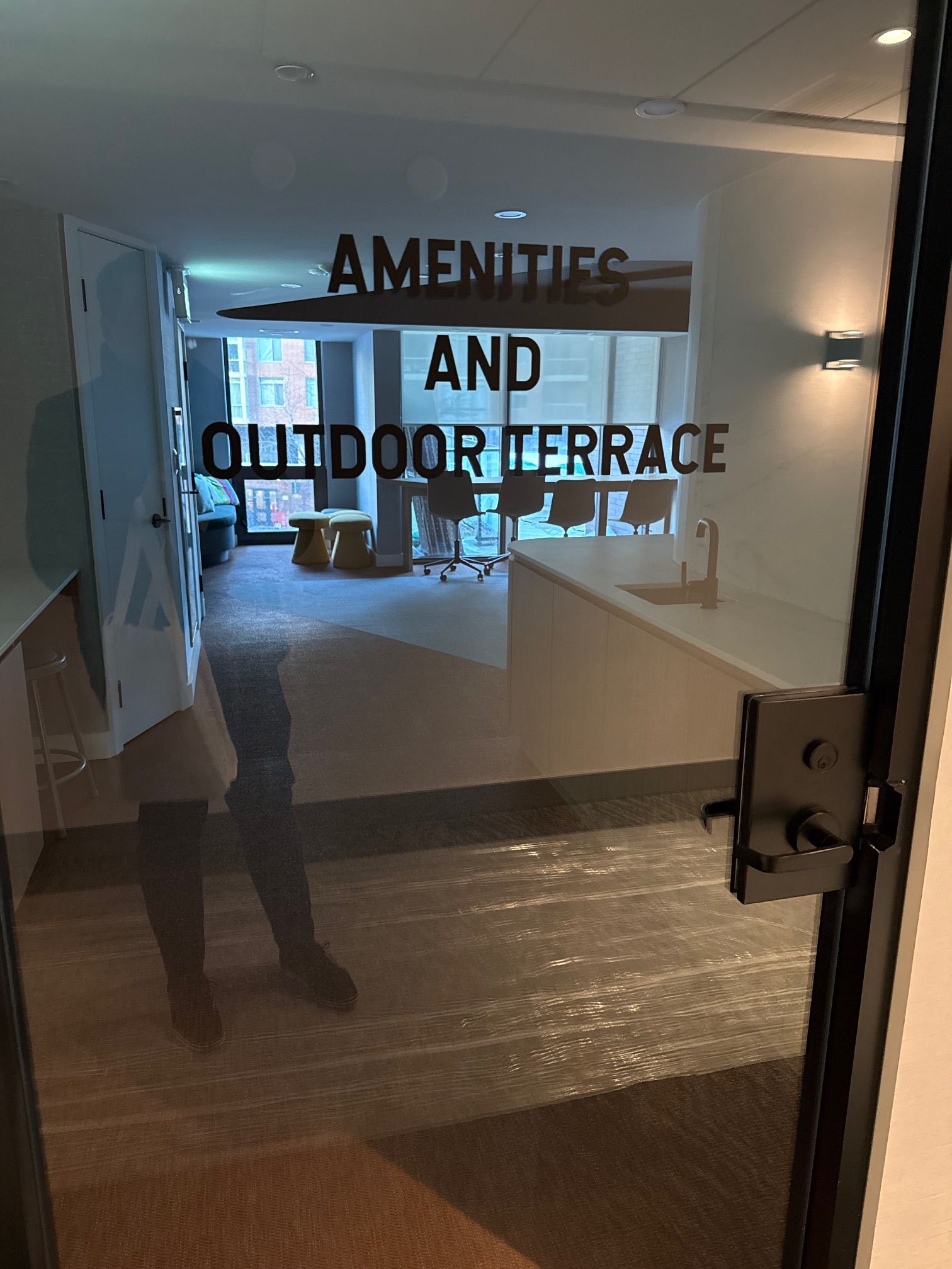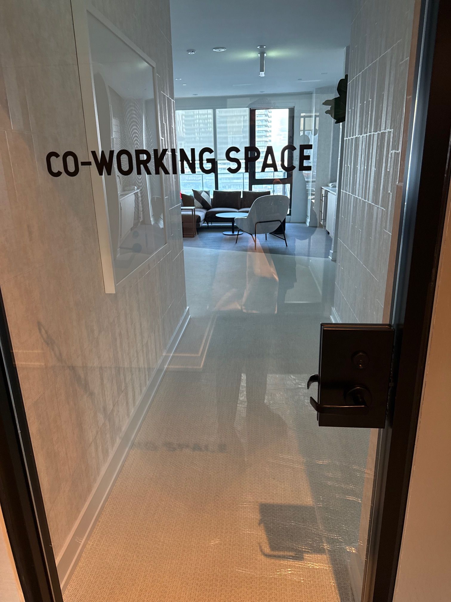• Amenities include a pool, gym, and co-working space.