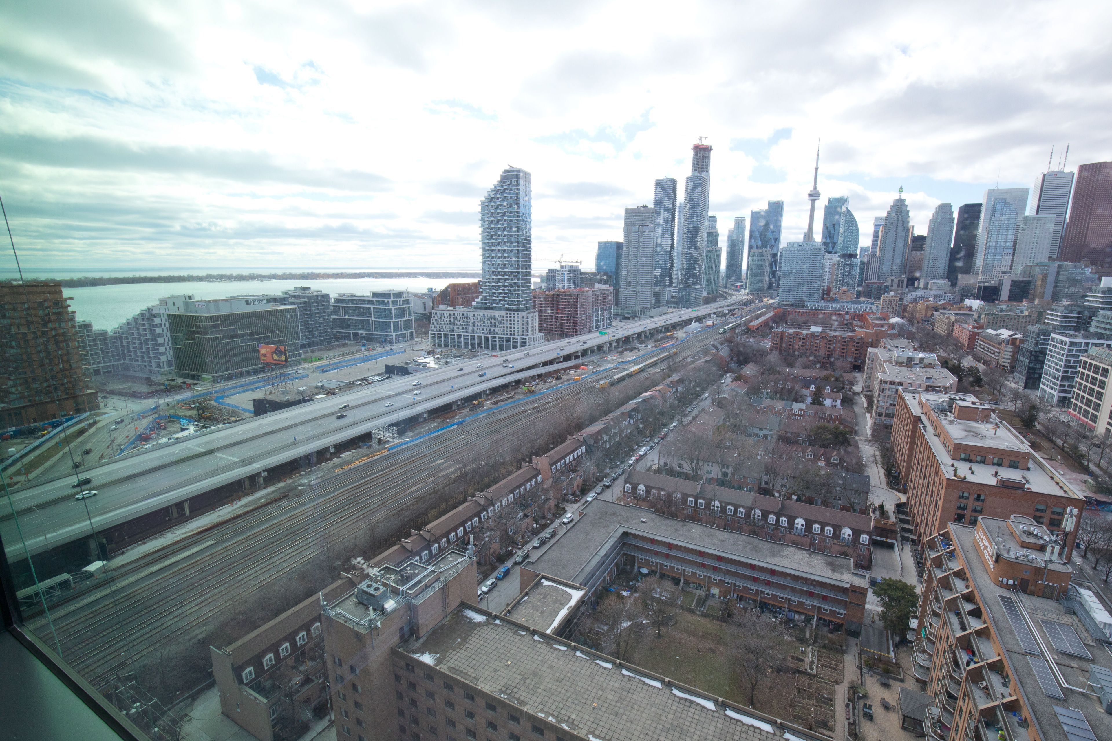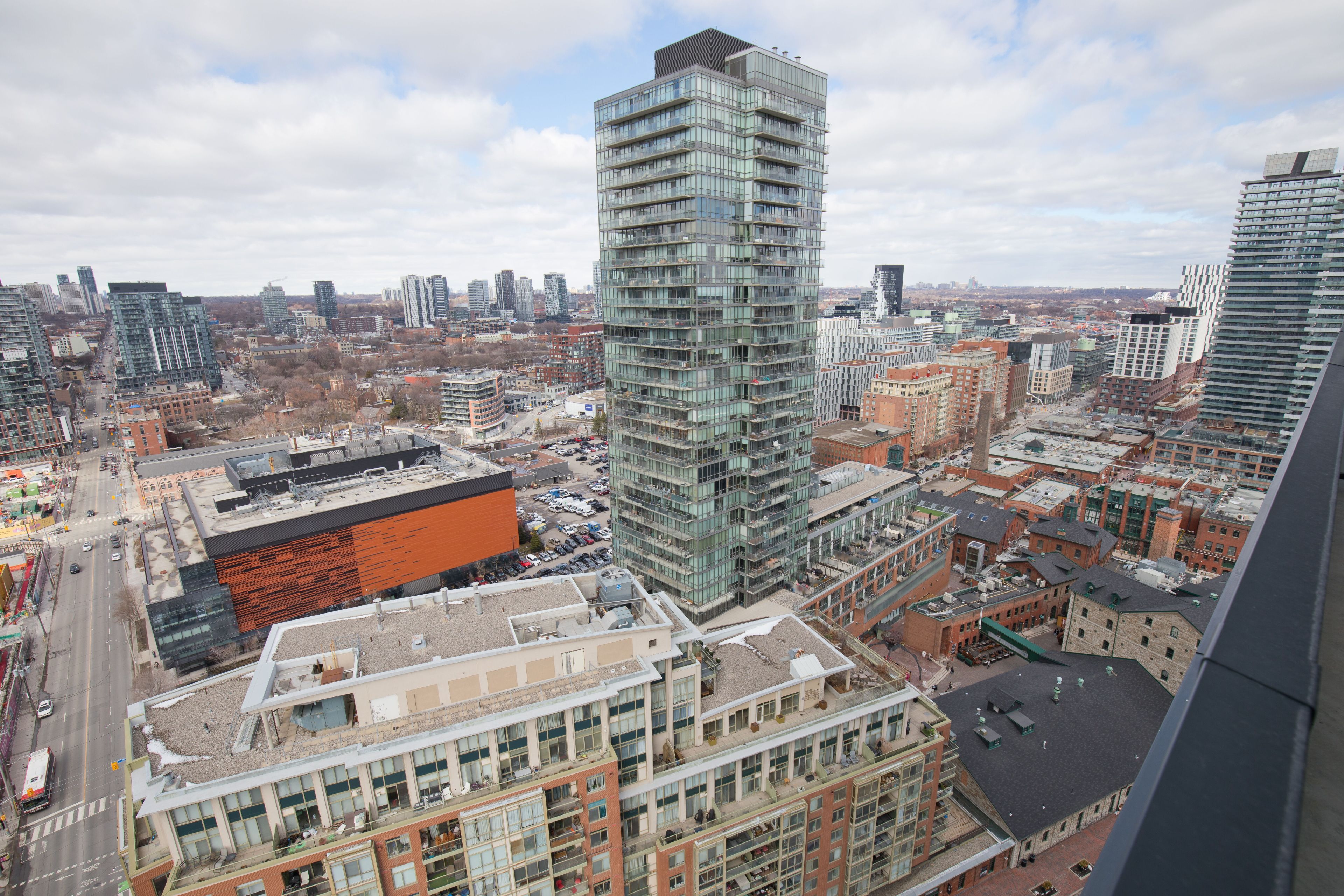 Stunning brand-new corner suite in the heart of the distillery district offering 756 sq. Ft. Of beautifully designed living space with breathtaking sunrise and sunset views of the lake, glittering city skyline, and iconic cn tower. Floor-to-ceiling windows fill the home with natural light, creating a bright and airy atmosphere throughout. This suite features two bedrooms, two bathrooms, and a spacious private balcony-perfect for relaxing or entertaining while enjoying panoramic views. Includes parking. Residents enjoy exceptional building amenities including a state-of-the-art fitness centre, outdoor pool, co-working and study lounges, party room, games room, pet spa, bbq terrace, and 24-hour concierge service. Ideally located just steps from transit, acclaimed restaurants, cafés, boutiques, and vibrant entertainment in toronto's historic distillery district.