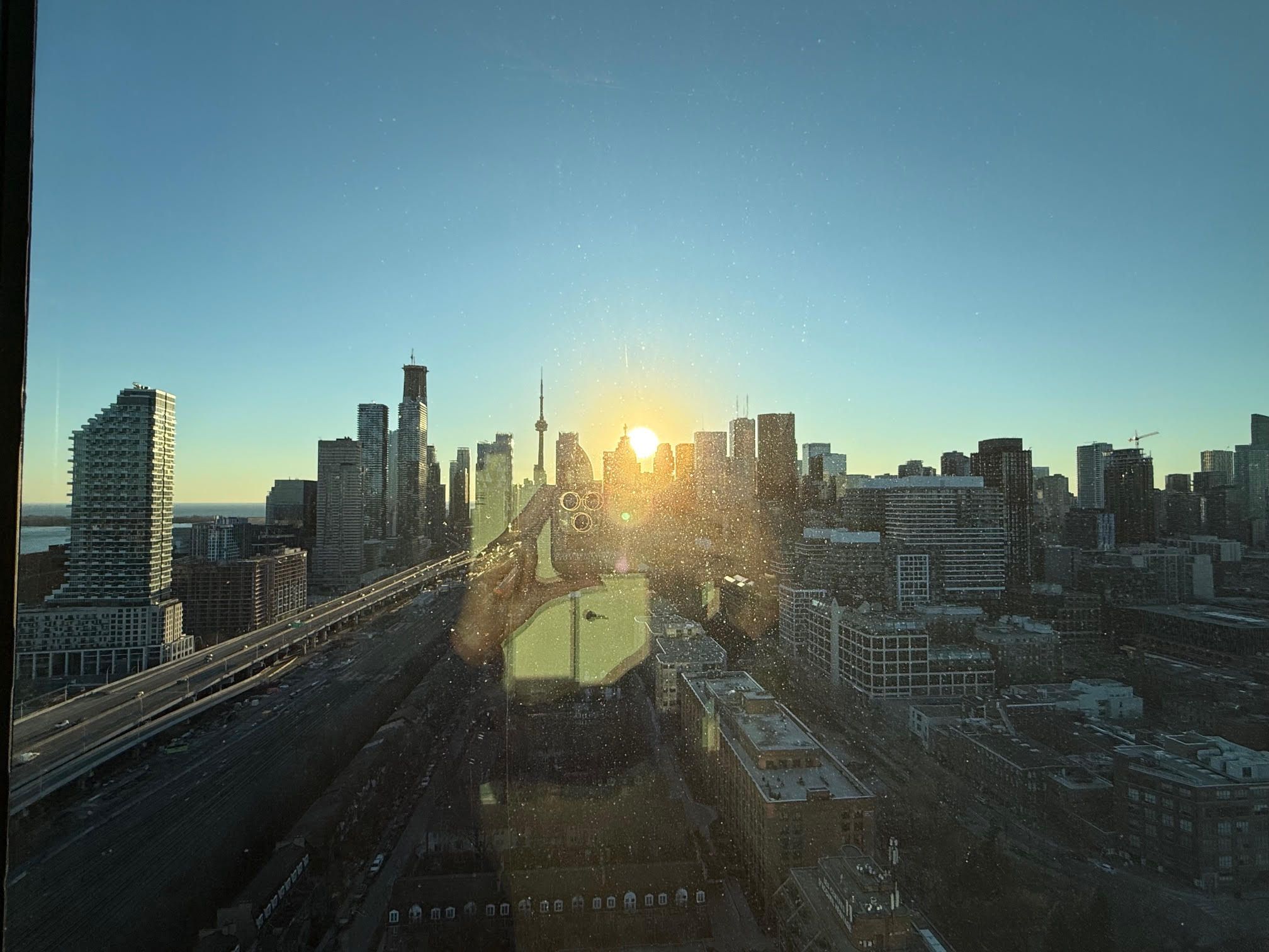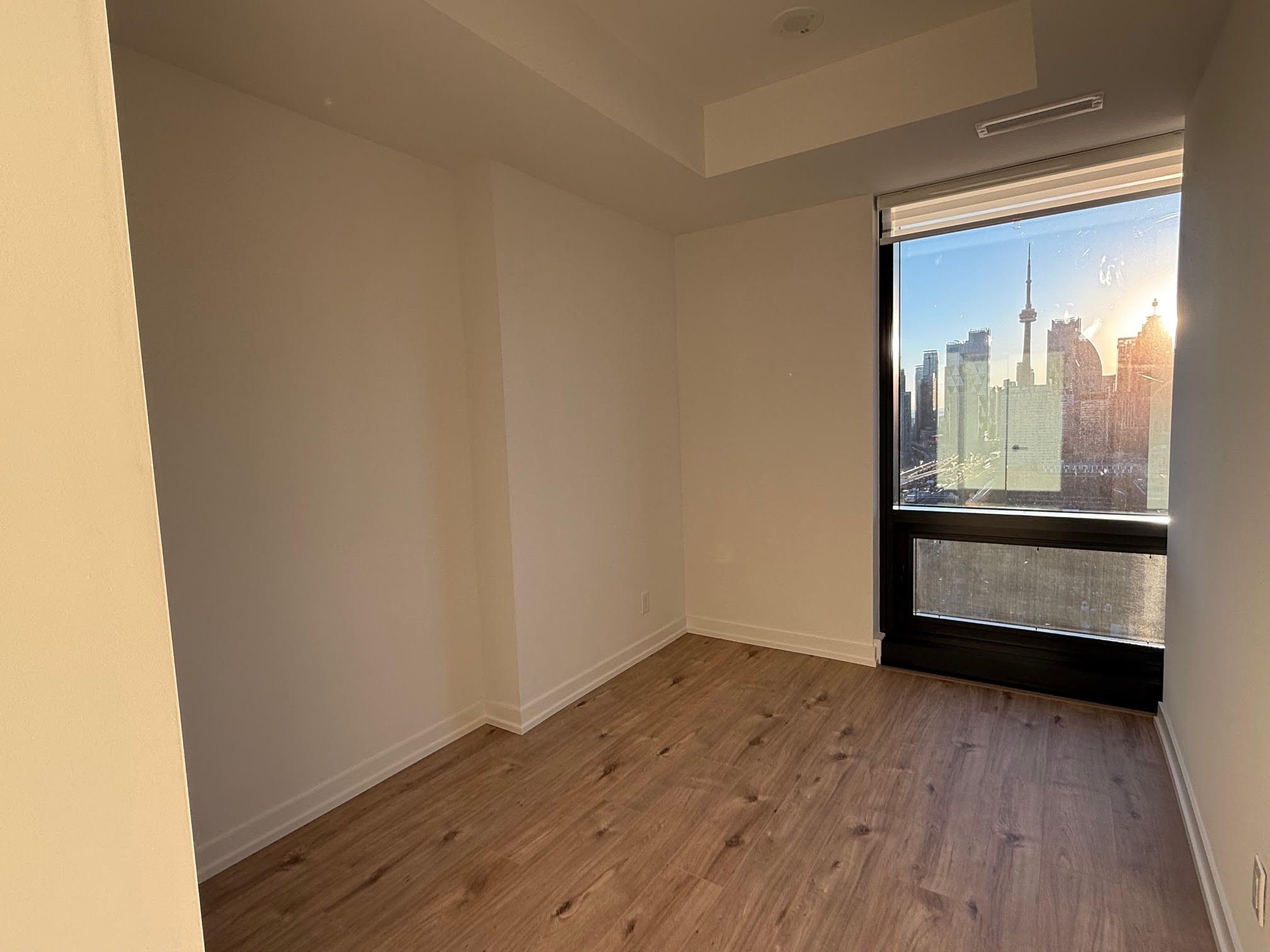 Welcome to the goode by graywood, where modern design meets the vibrant energy of toronto's historic distillery district. Positioned on one of the last developable parcels adjacent to this iconic heritage neighbourhoud, the goode offers a rare blend of contemporary living and timeless character. This stunning 29th-floor 1-bedroom + den suite features a clear, west-facing view of the city skyline including a direct sightline to the cn tower, filling the space with beautiful natural light and breathtaking sunset vistas. The versatile den is ideal for a home office, study, or guest space. Inside, enjoy 9' ceilings, floor-to-ceiling windows, and a sleek modern kitchen with quartz countertops, backsplash, and integrated appliances. The open-concept layout maximizes space, light, and flow, creating an inviting setting to live, work, and unwind. Residents enjoy a full suite of premium amenities including a state-of-the-art fitness centre, yoga studio, co-working lounge, outdoor pool, bbq terrace, party and games rooms, and more. Just steps from the cobblestone charm of the distillery district, st. Lawrence market, waterfront trails, and corktown common park. Excellent transit access with streetcar service and the future ontario line, plus easy connections to the dvp, gardiner expressway, and union station.